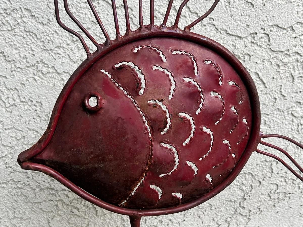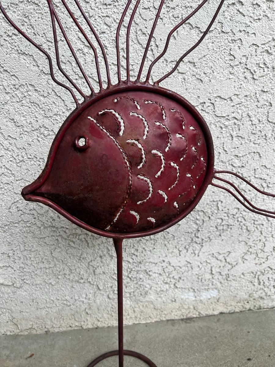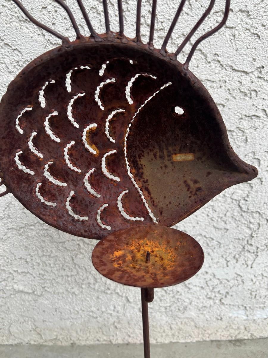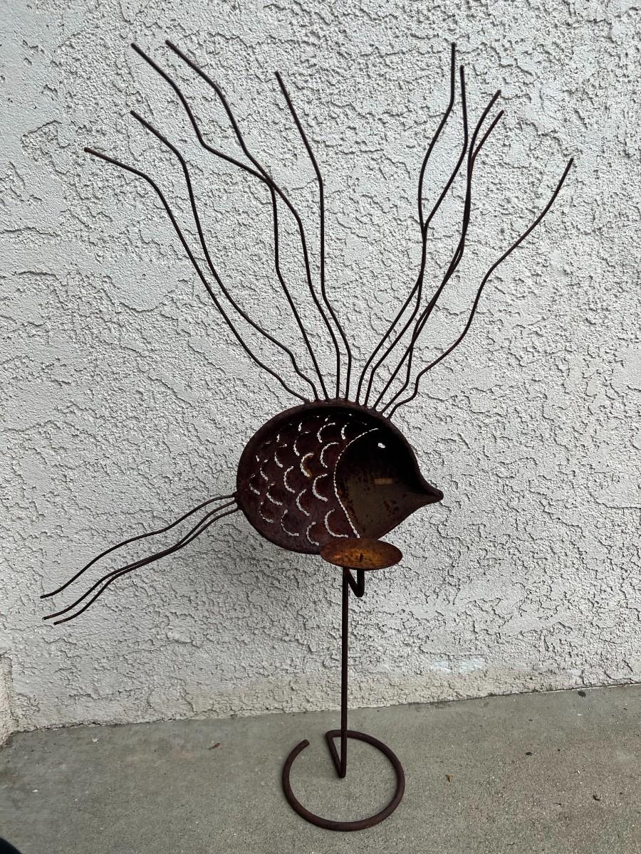 Funky Abstract Metal Fish Garden Art Candle Holder Yard Patio Decor. In good weathered condition.