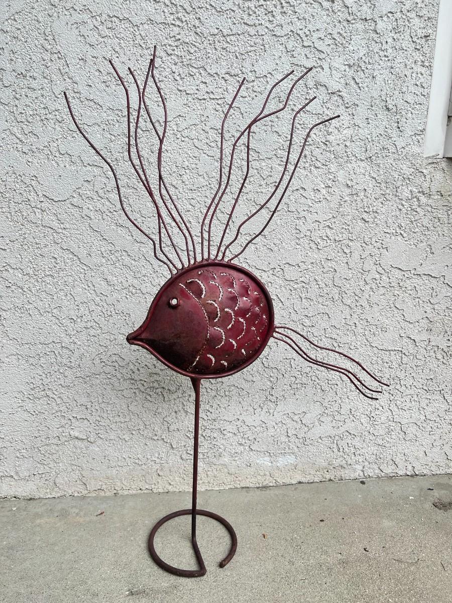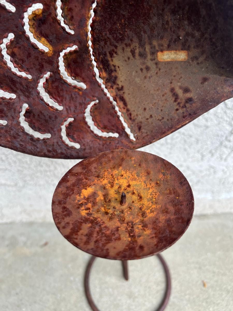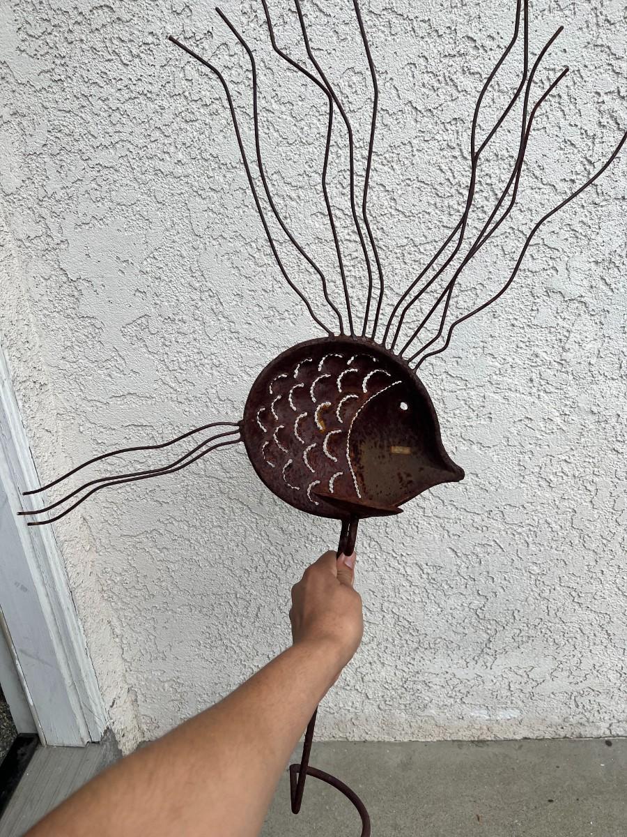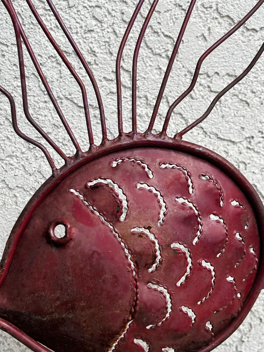 Funky Abstract Metal Fish Garden Art Candle Holder Yard Patio Decor. In good weathered condition.