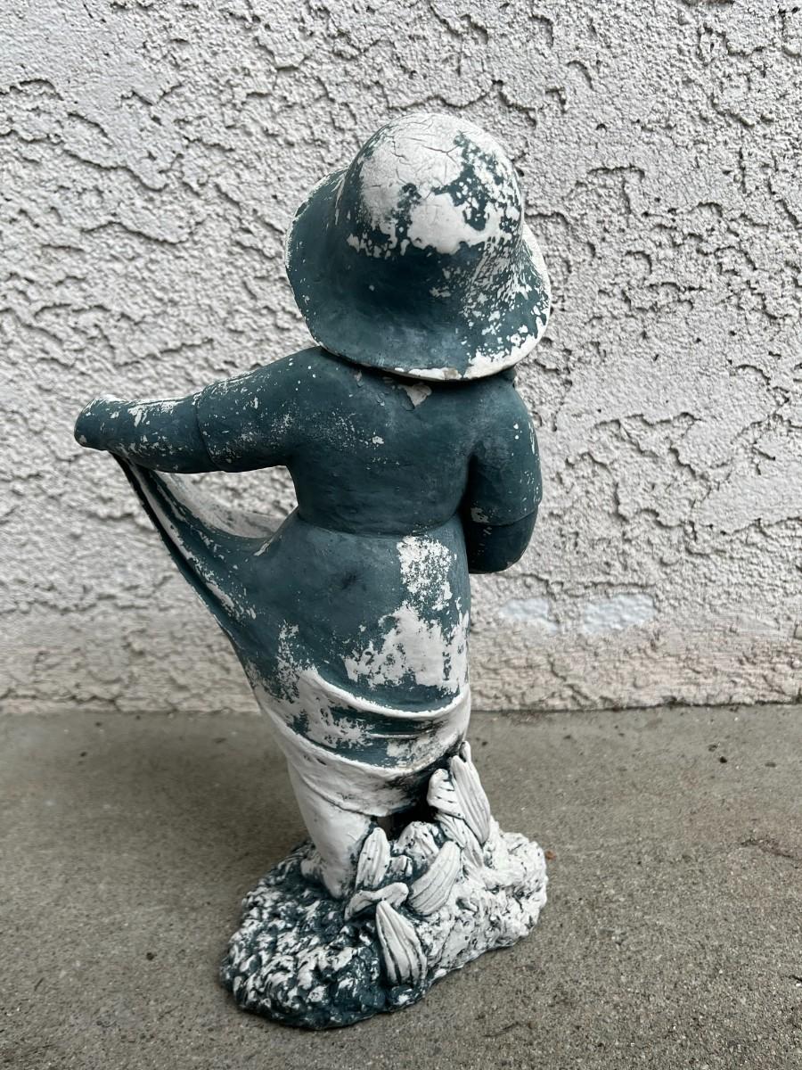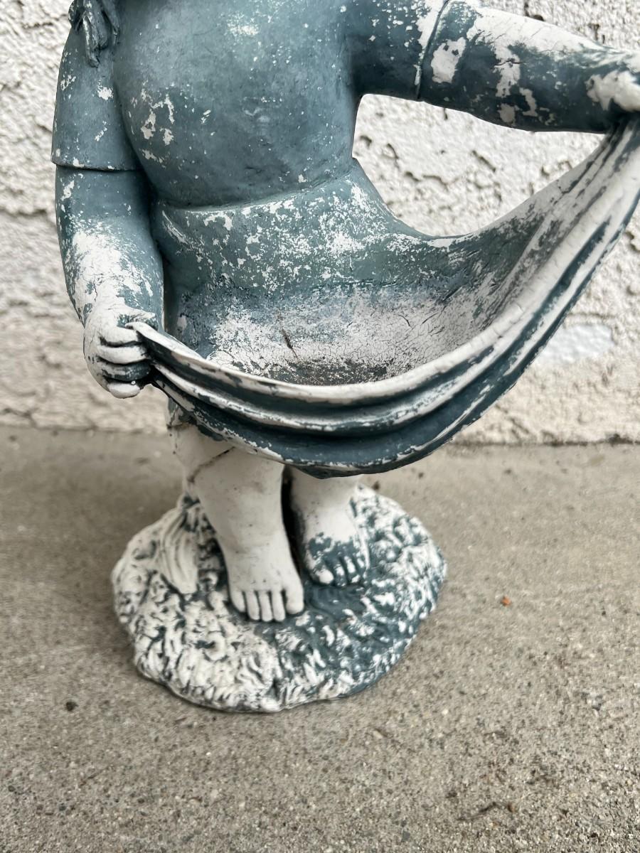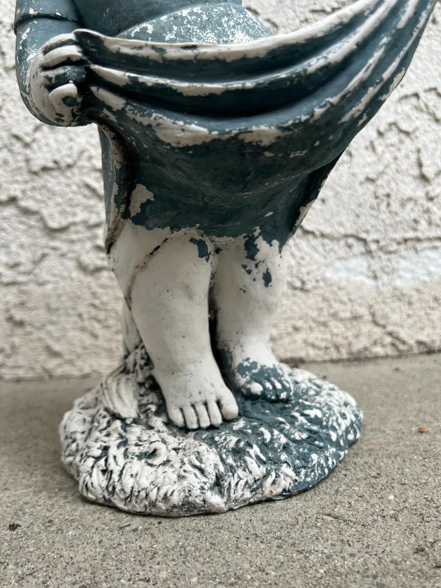 There is some cracking to the figurine, but no significant damage. In good condition to be used in a home garden.