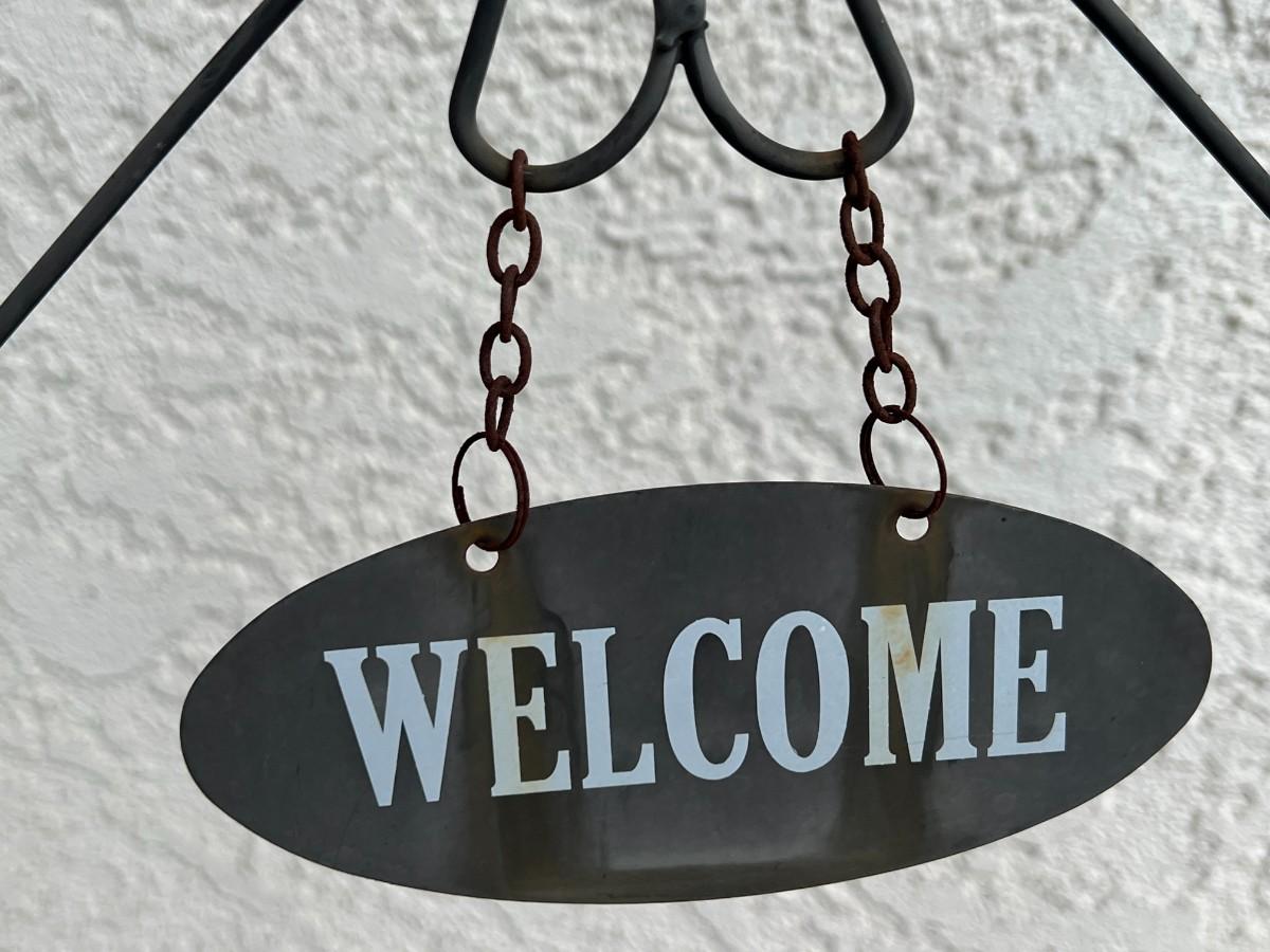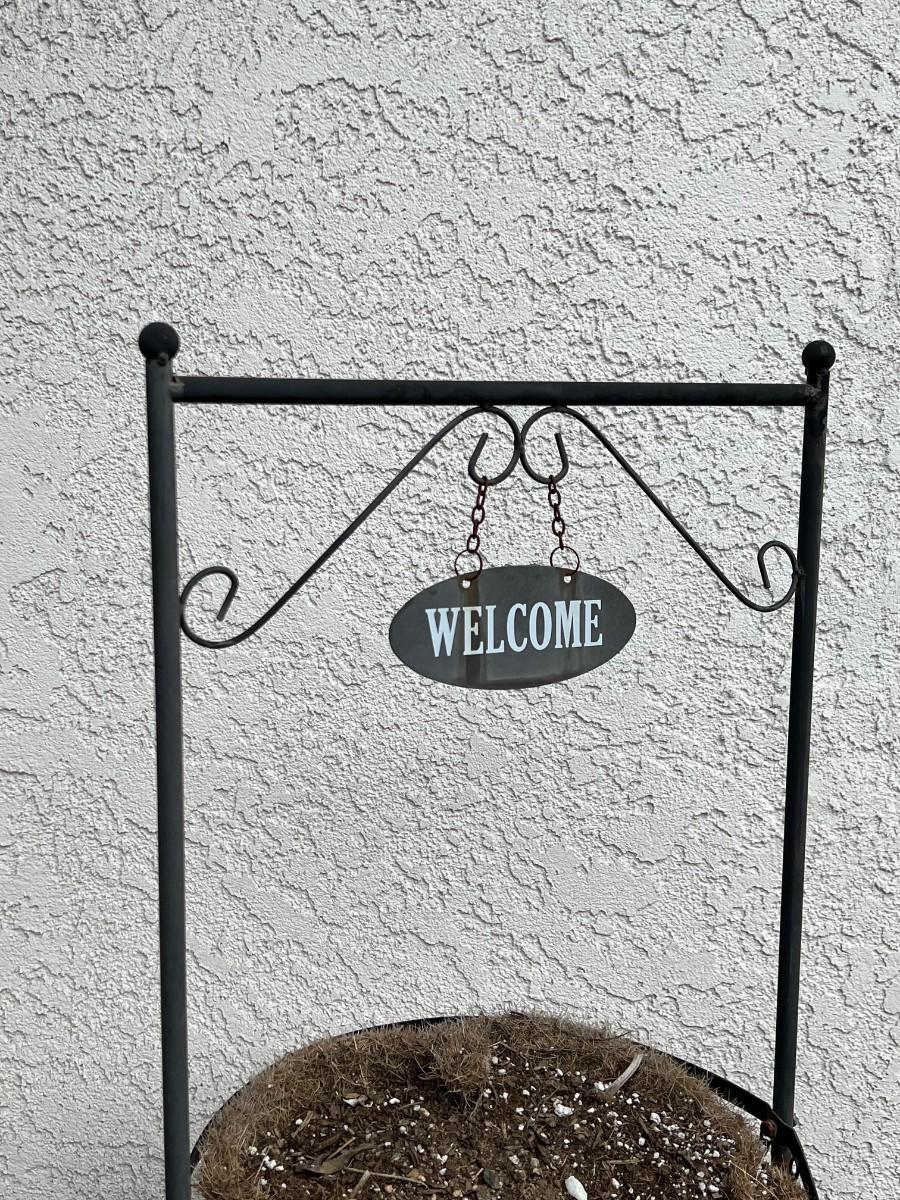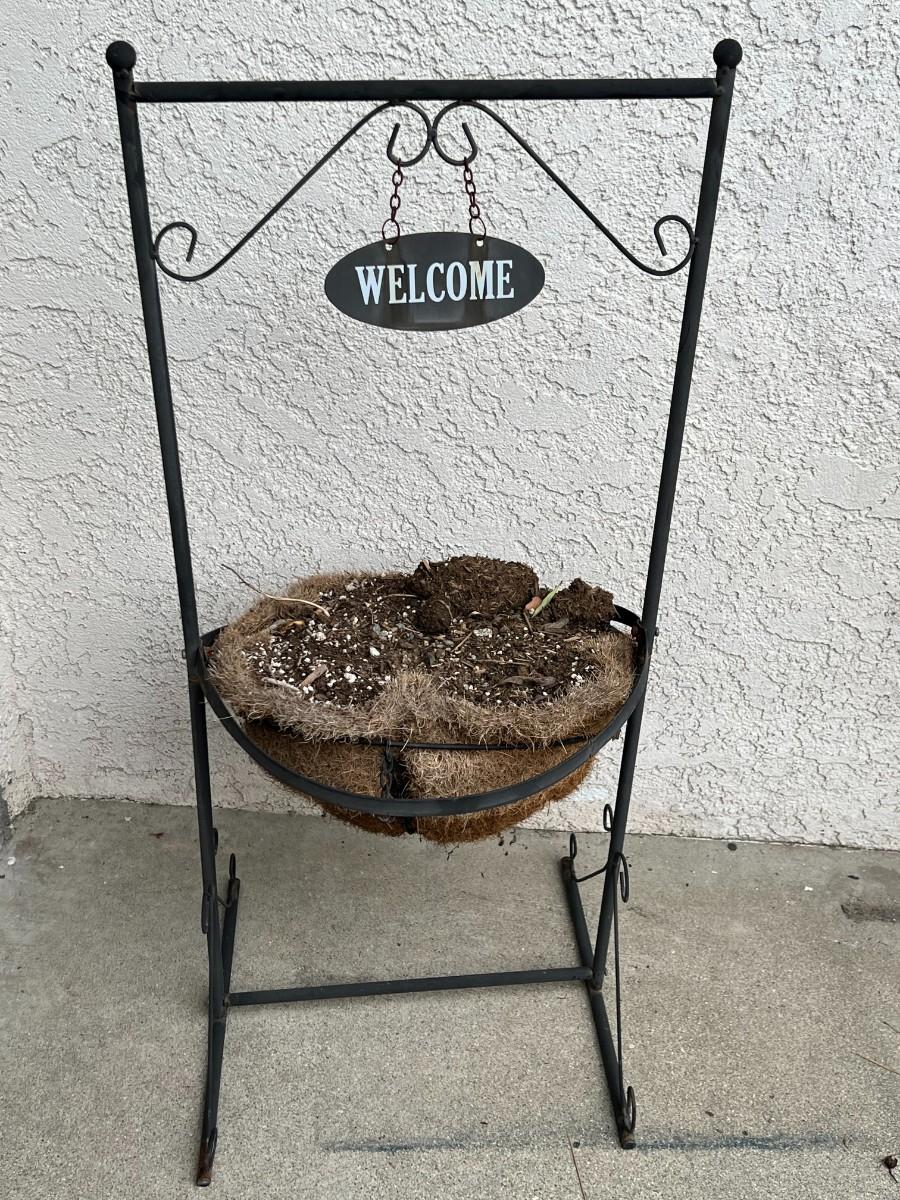 Welcome Metal Garden Planter Basket Stand