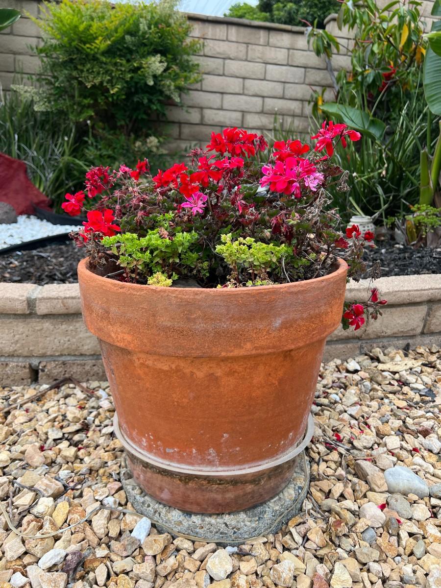 Garden Flowers Bright Red Flower Planter Ceramic Pottery