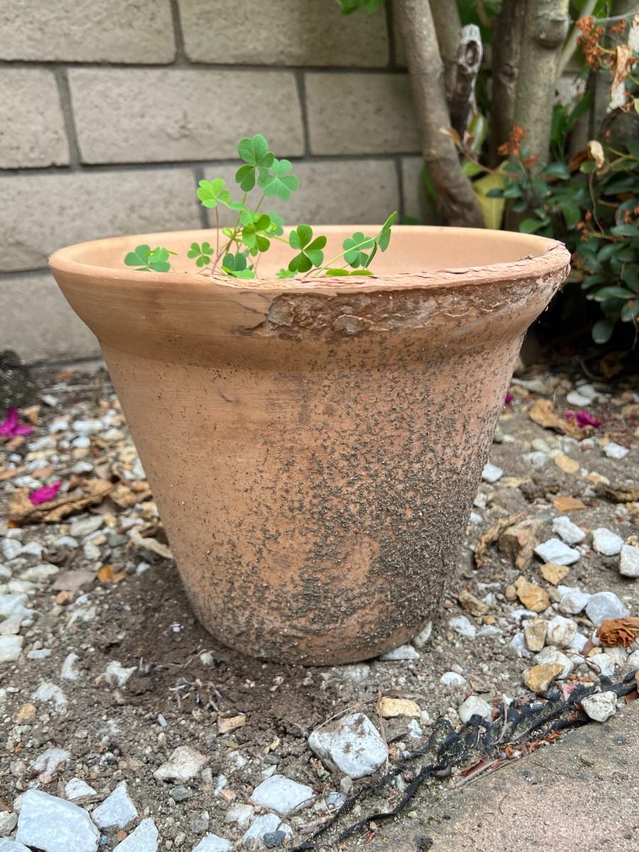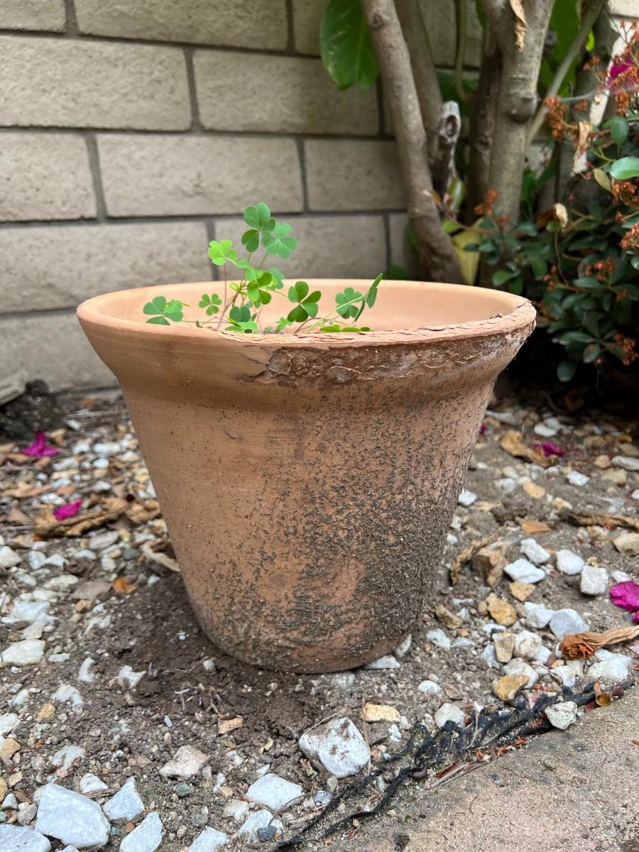 Around 12 inches tall. There is chipping to the lip of the planter and is in overall good useable condition.