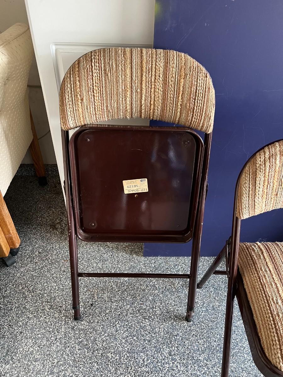 There is no ripping or tears to the cushioned pads and is in overall good useable condition. All chairs fold up perfectly.