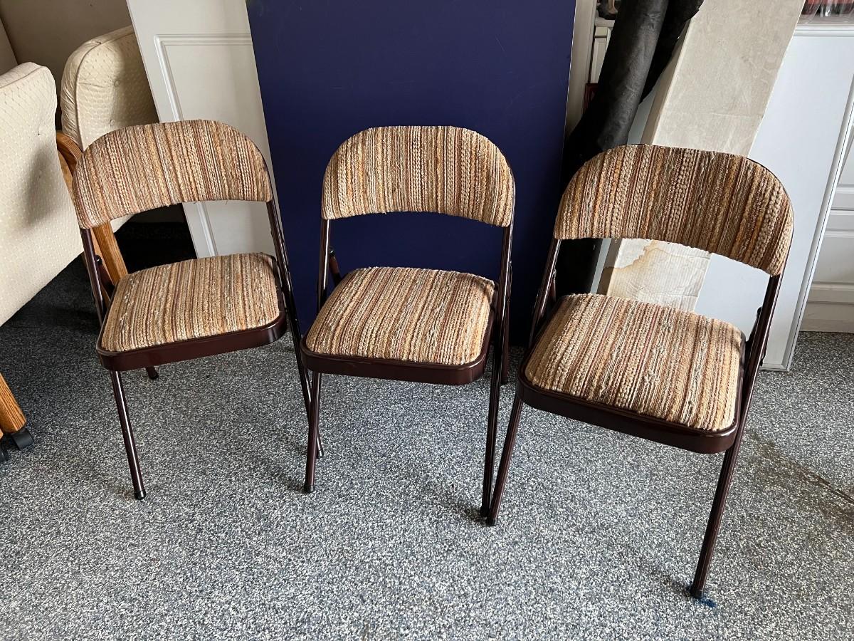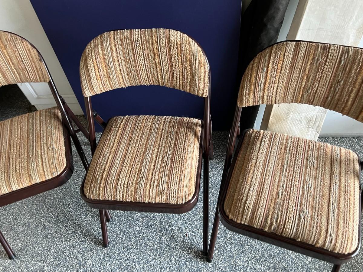 Vintage Samsonite Beige Brown Striped Tweed Padded Folding Chairs