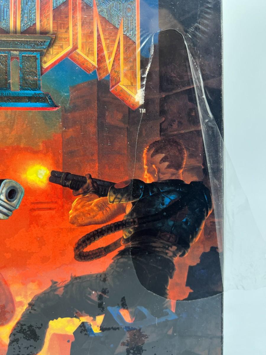 The box is a little bent on the back cover toward the bottom, there is also a tear on the cellophane wrapping. This is an unopened copy of Doom II and is in good playable or collectible condition.
