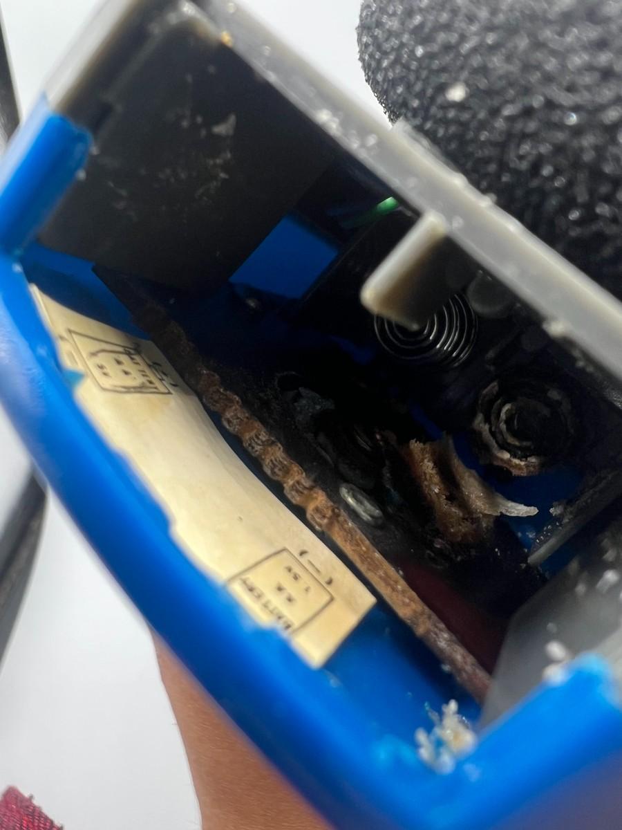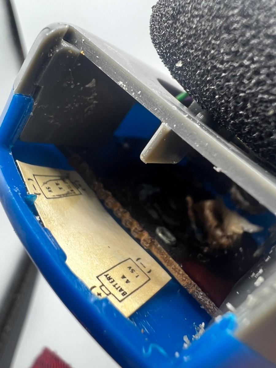There is corrosion from batteries that were left in the headset, but there is no other damage and in overall good collectible condition. Has NOT been tested with new batteries.