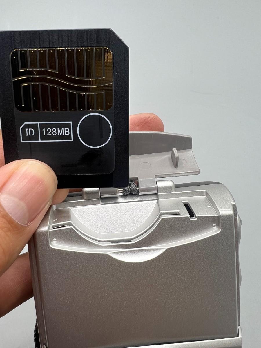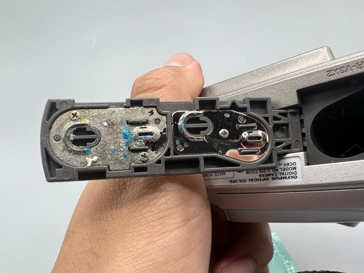 There are signs of corrosion from batteries that were left inside the camera and the preview screen is worn. The memory card in the green bag has not been opened. Has NOT been tested with new batteries.