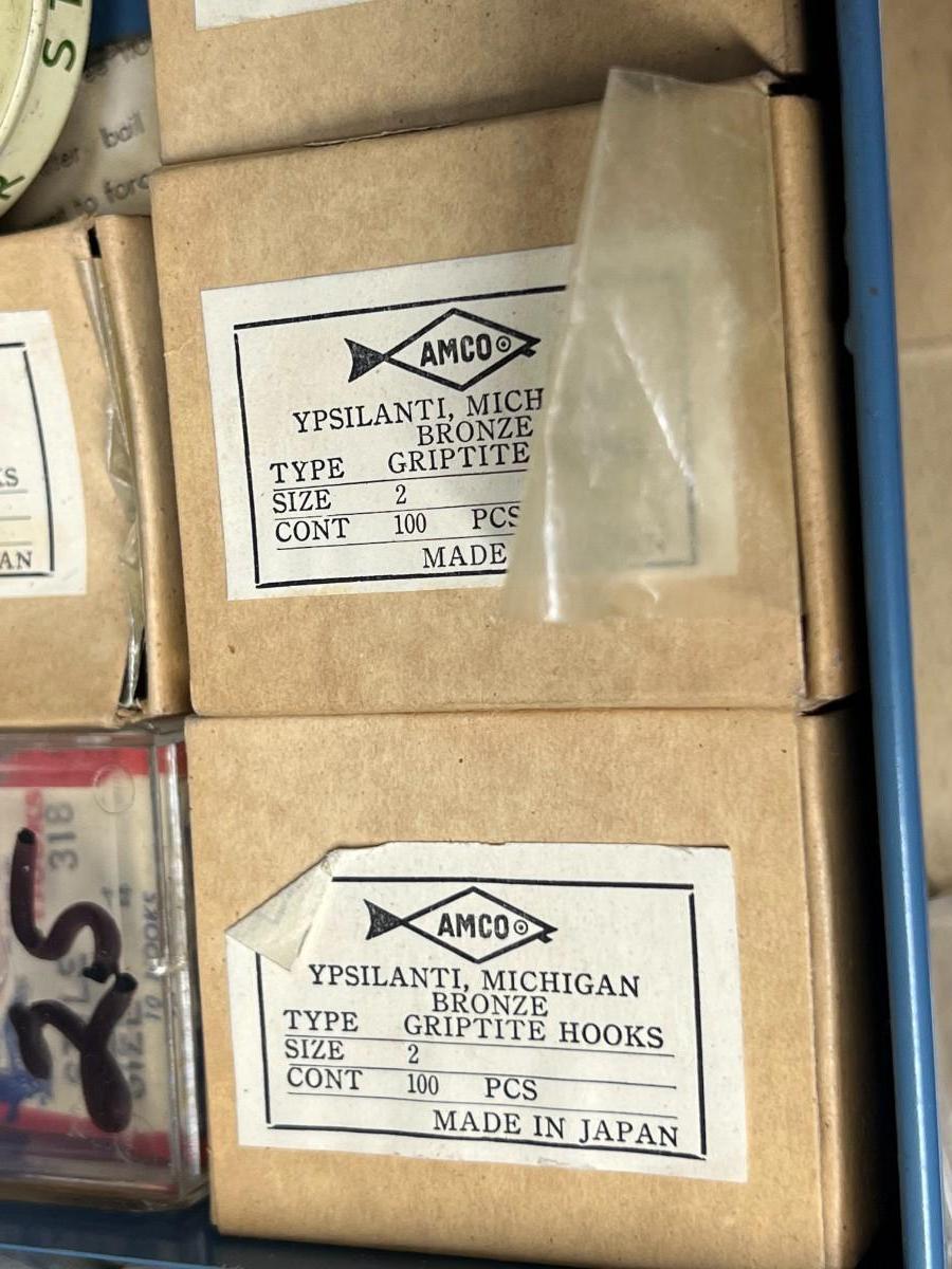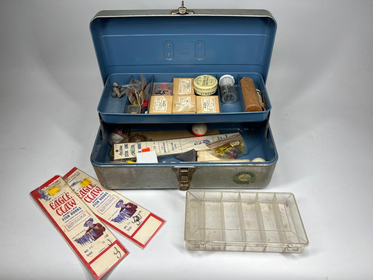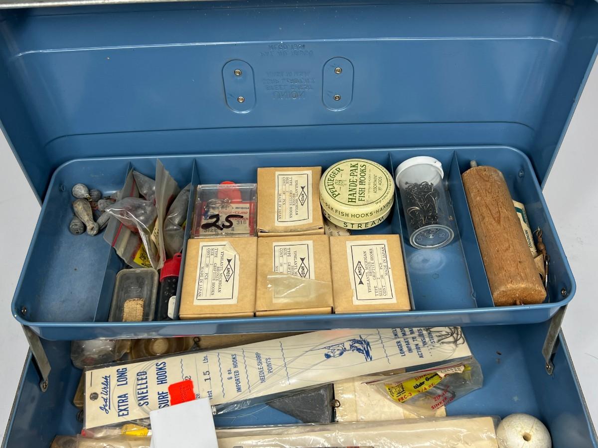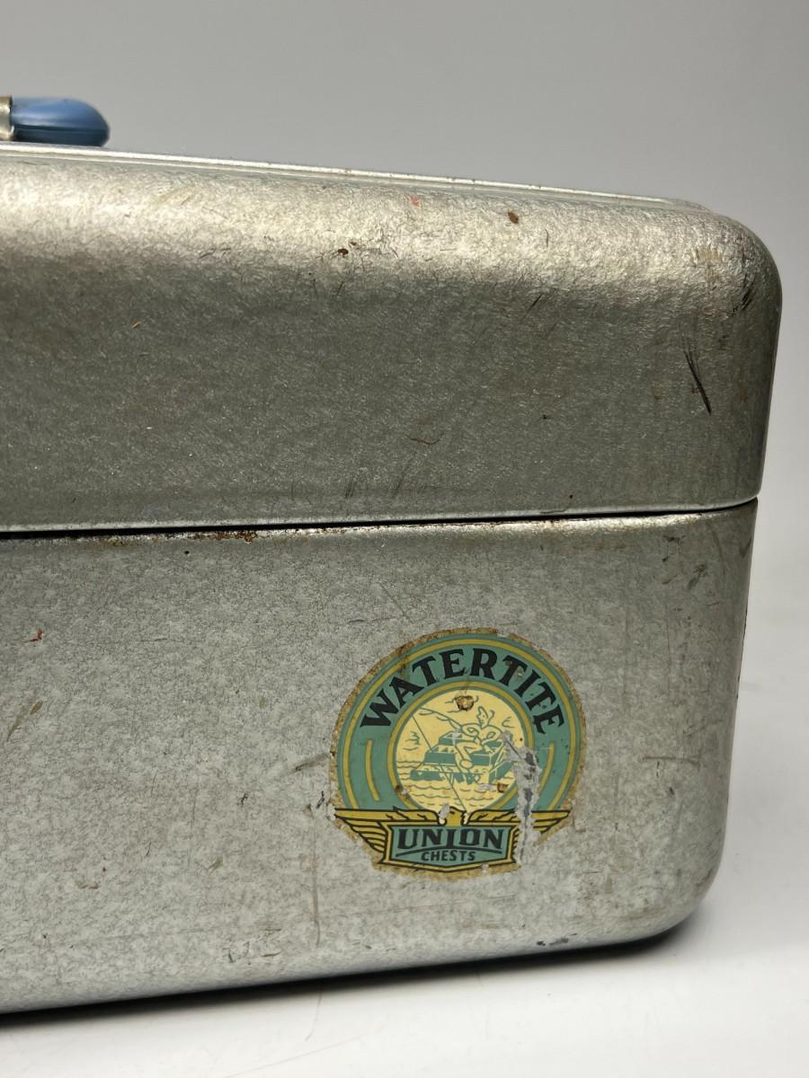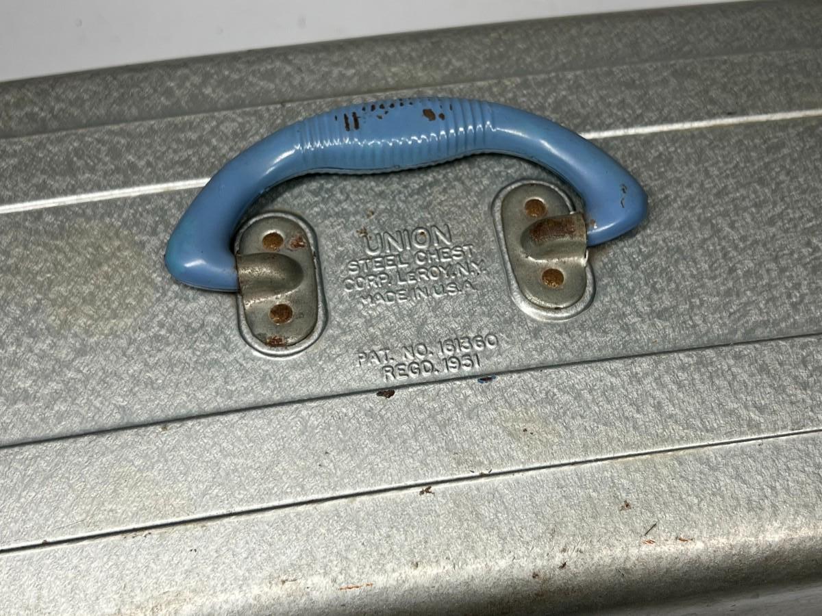Union Steel Chest Tackle Box Gray Latch Handle with Fishing Supplies Hooks & More