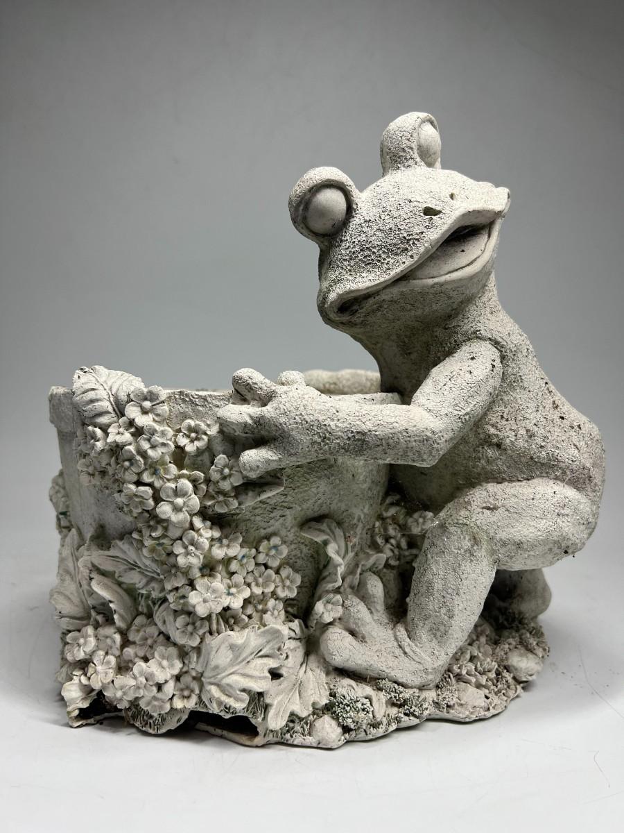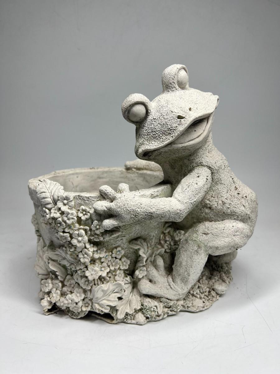 Garden Art Cement Toad Lawn Flower Planter Figurine