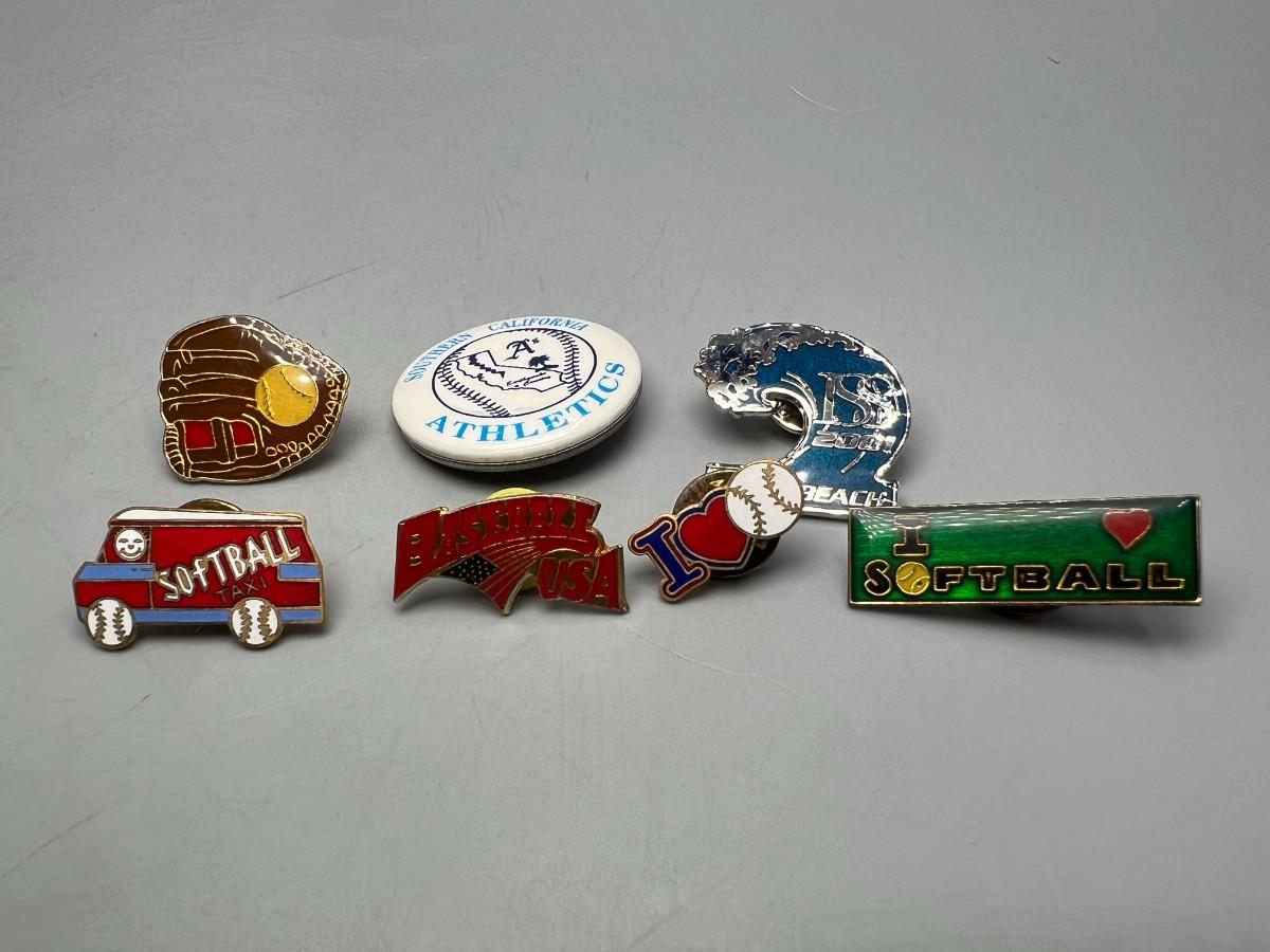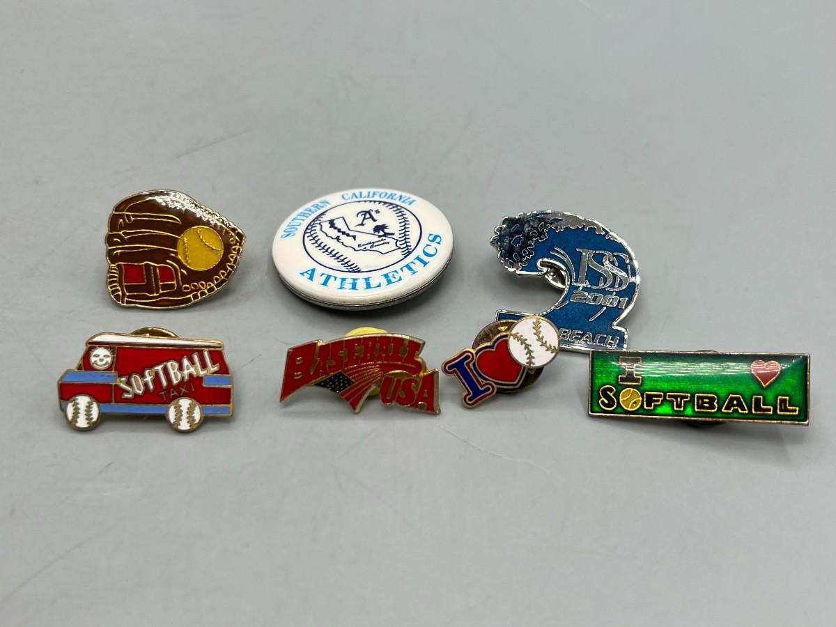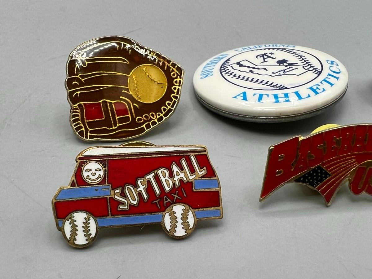 Vintage Baseball Softball Collectible Metal Pins Baseball USA Softball Taxi & More