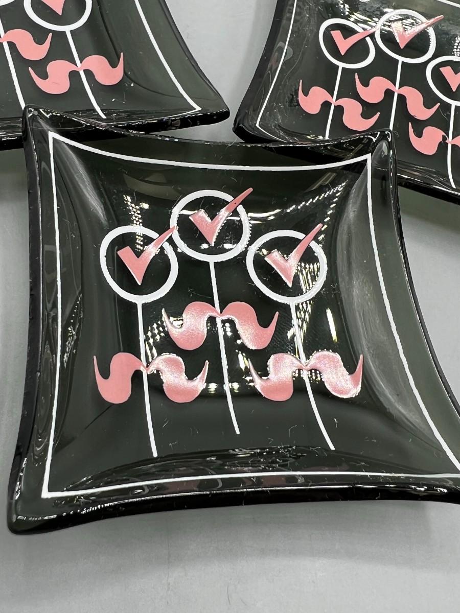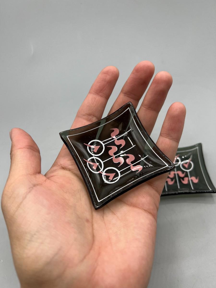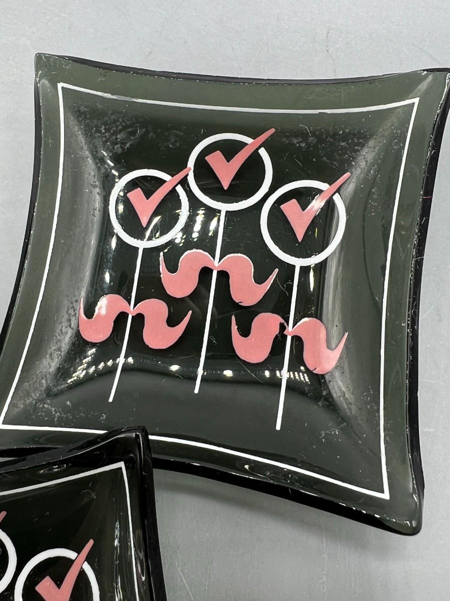 Small Vintage Glass Pink Atomic Age Graphic Personal Ashtray Trinket Dishes