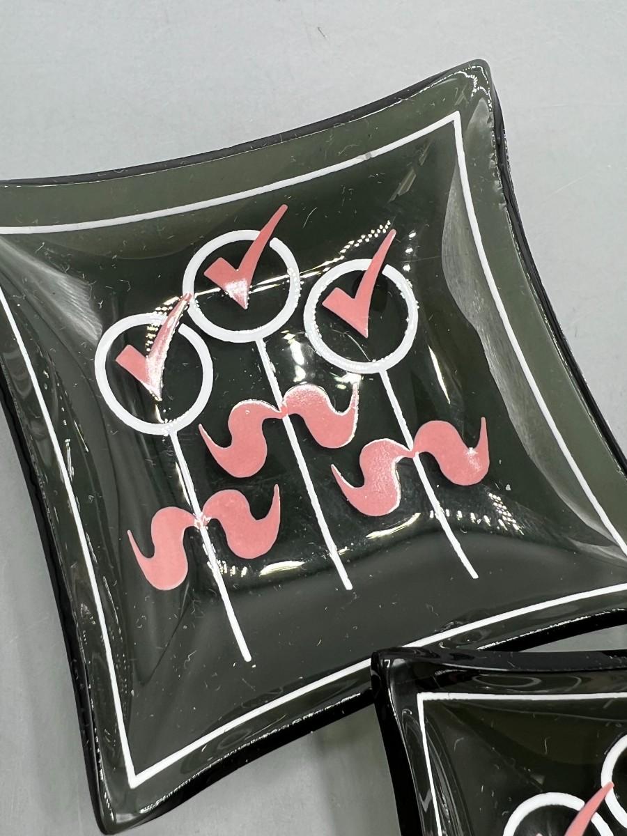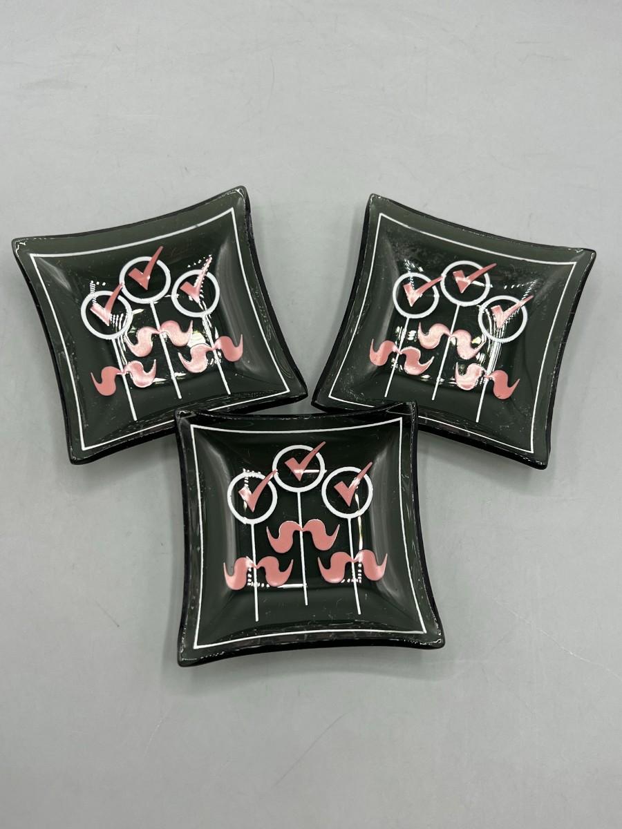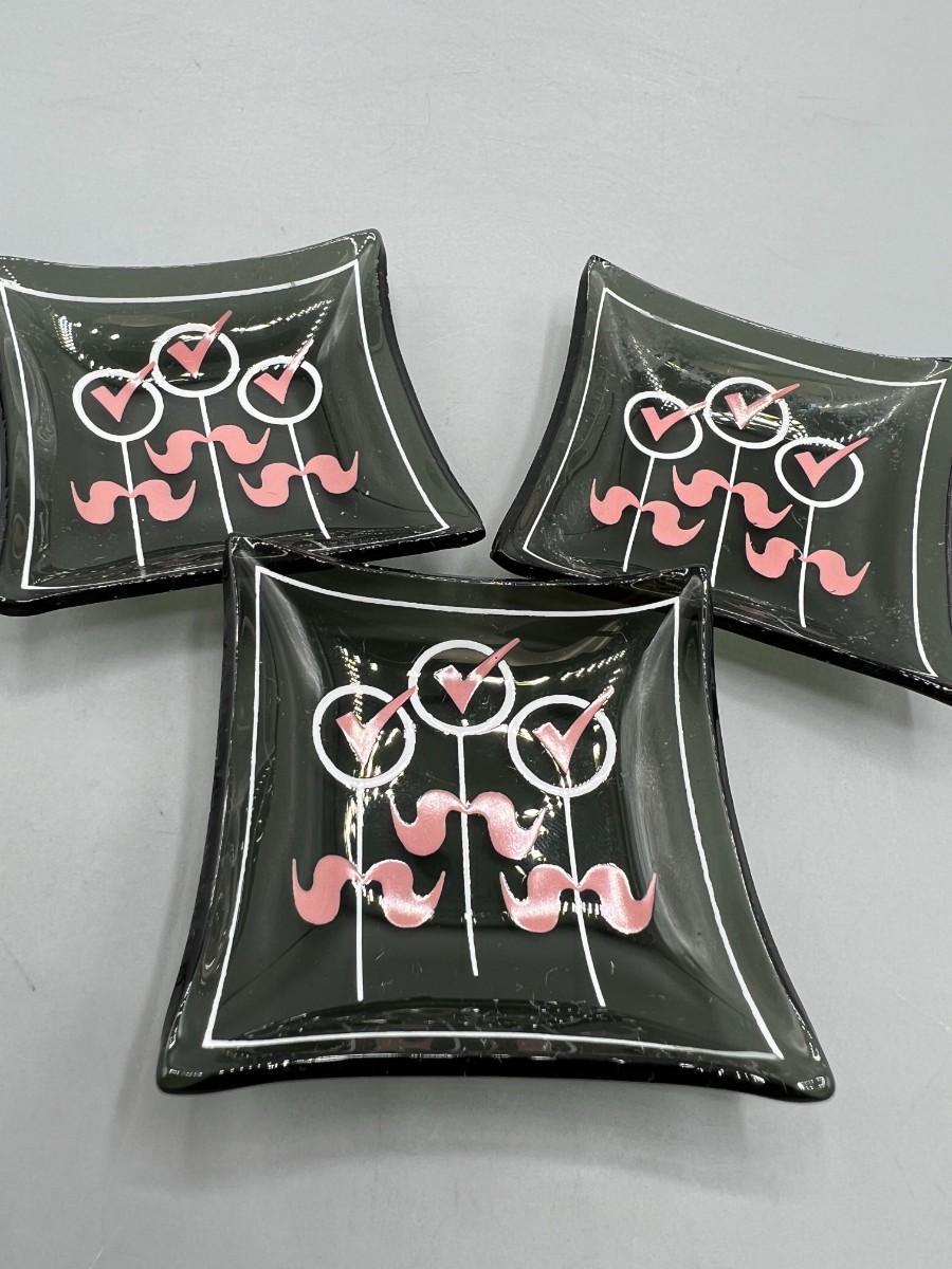 Small Vintage Glass Pink Atomic Age Graphic Personal Ashtray Trinket Dishes