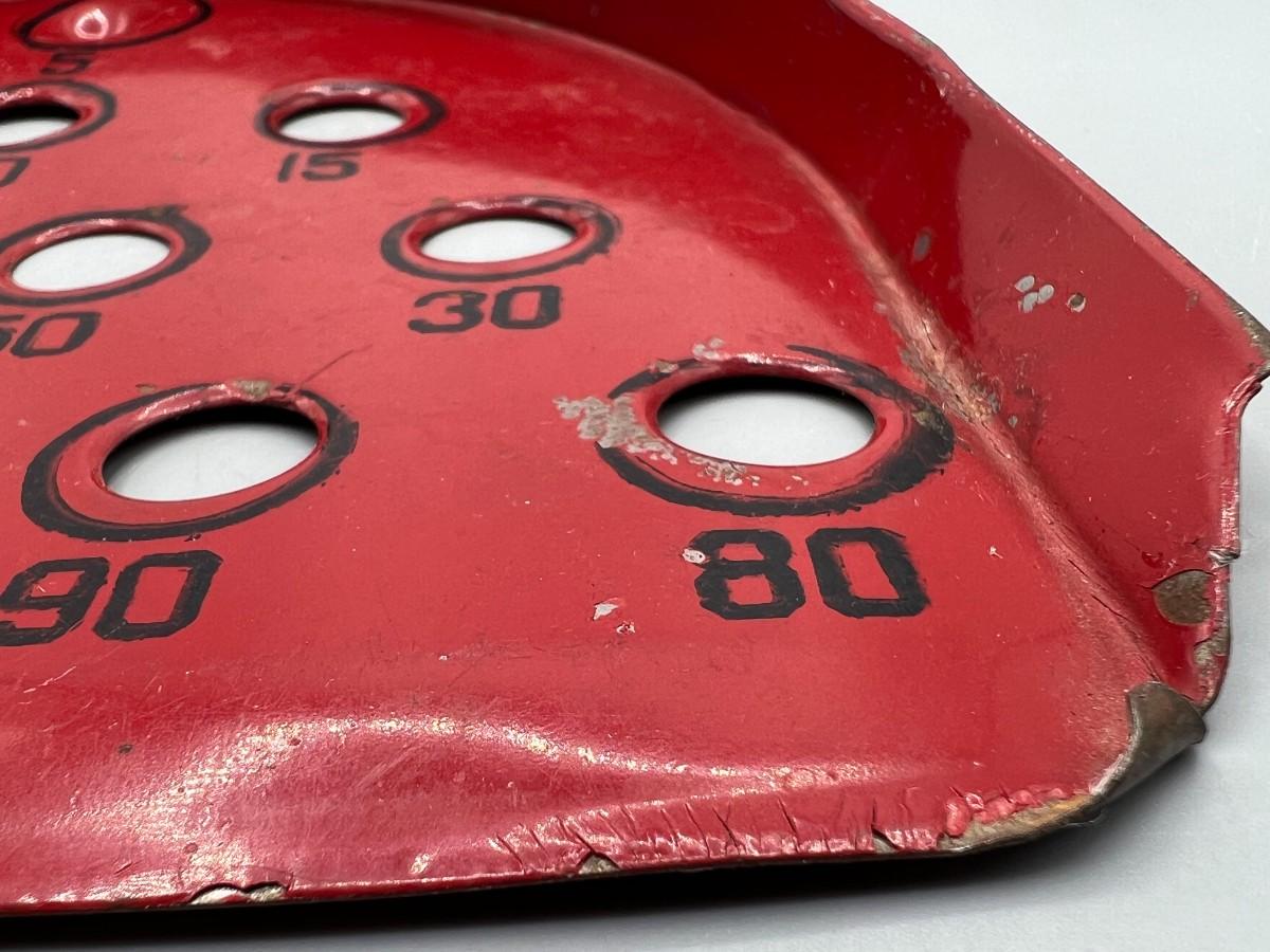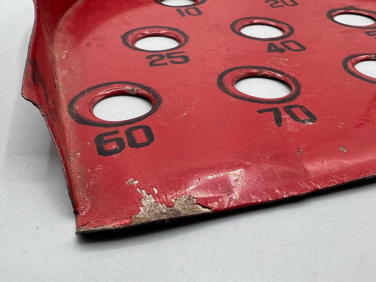 There is noticeable wear and dents to the metal game piece. Check pictures for more details.