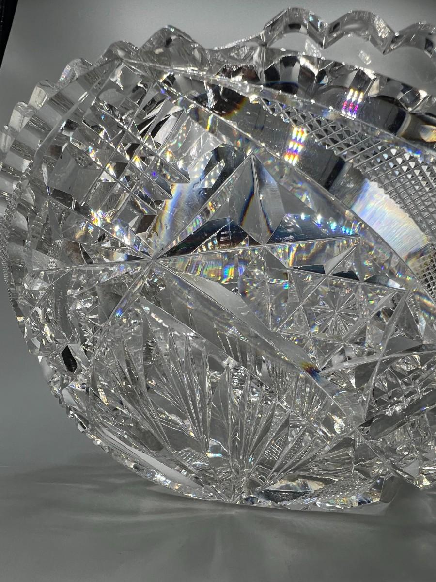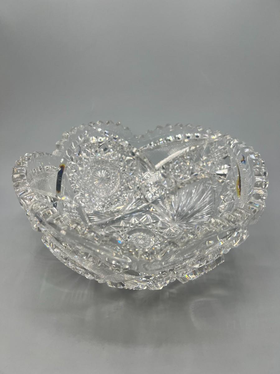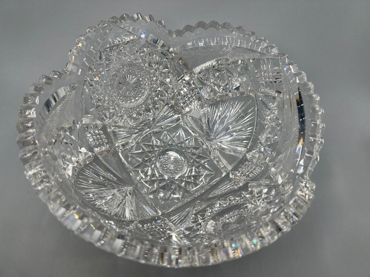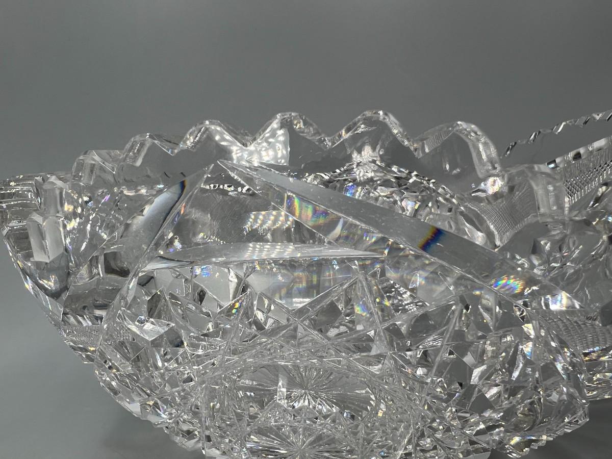 Vintage Cut Crystal Glass Heavily Textured MCM Detailed Fruit Bowl Decor
