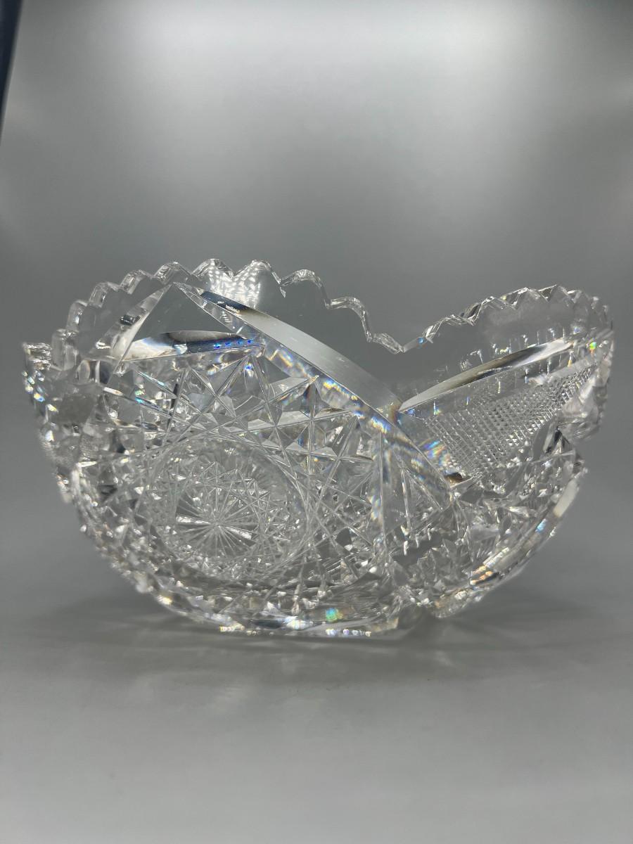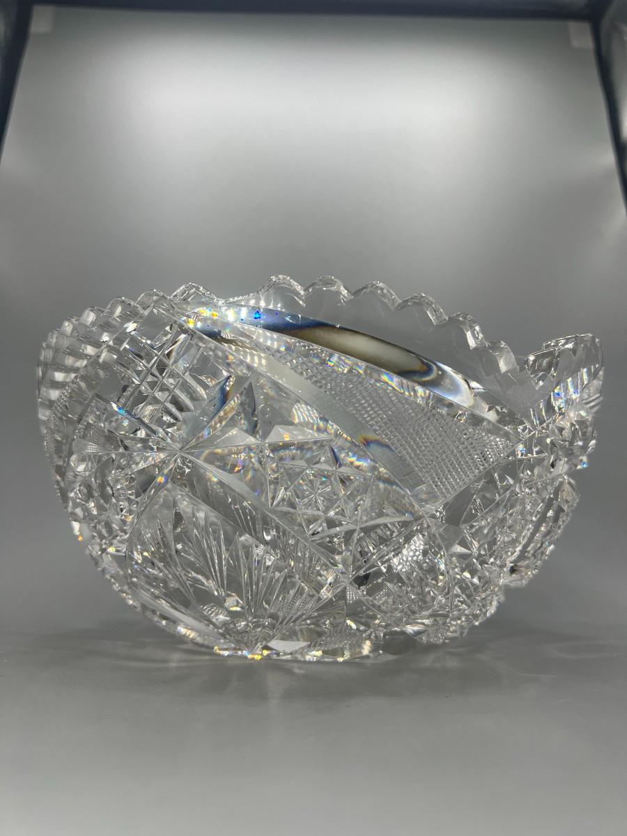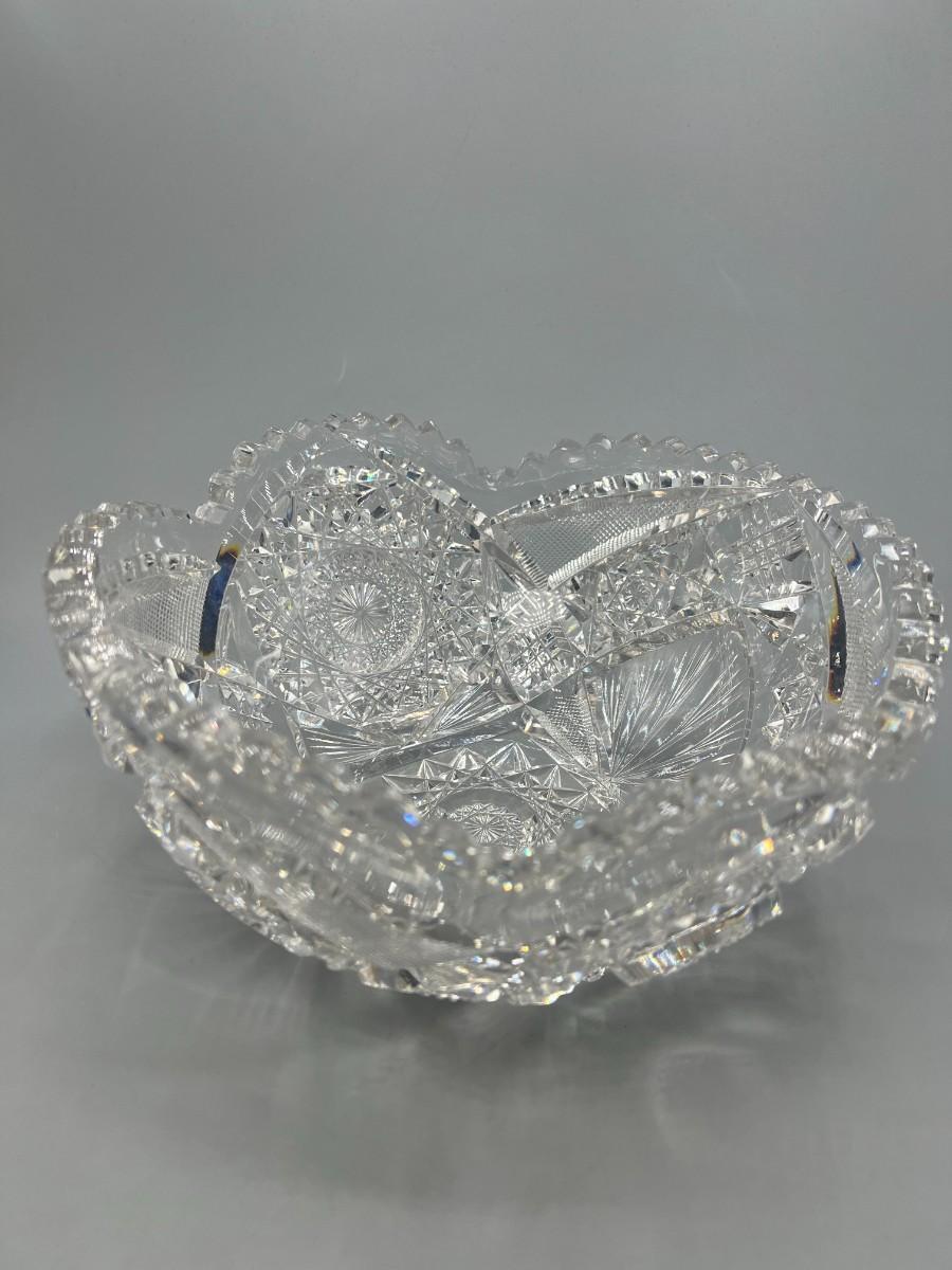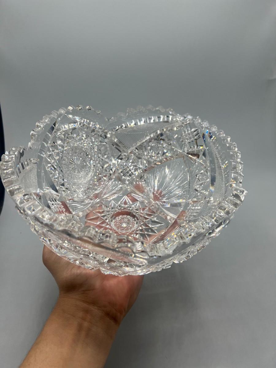 Vintage Cut Crystal Glass Heavily Textured MCM Detailed Fruit Bowl Decor