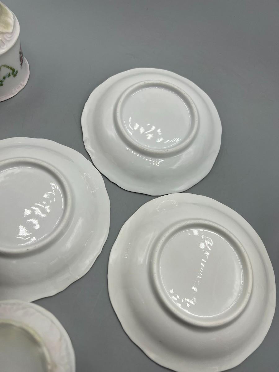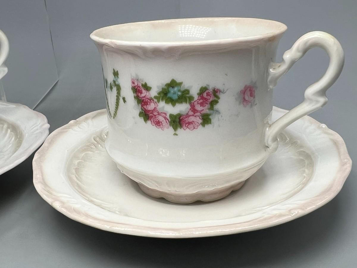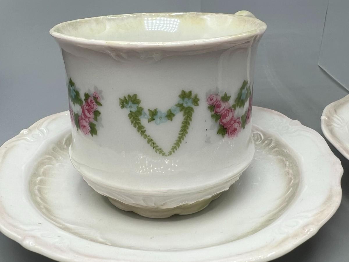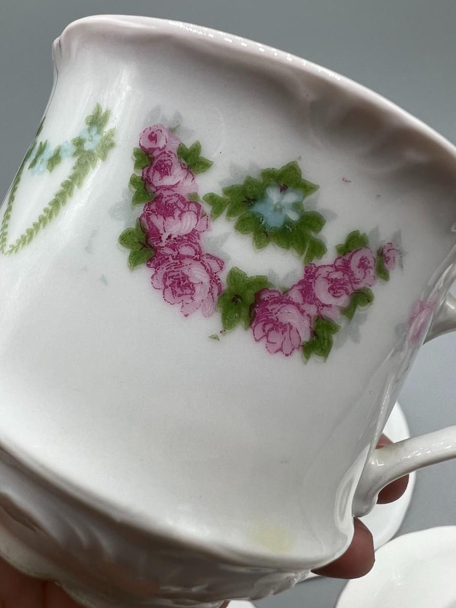 Set of Vintage Unmarked Pink Rose Teacups & Dishes