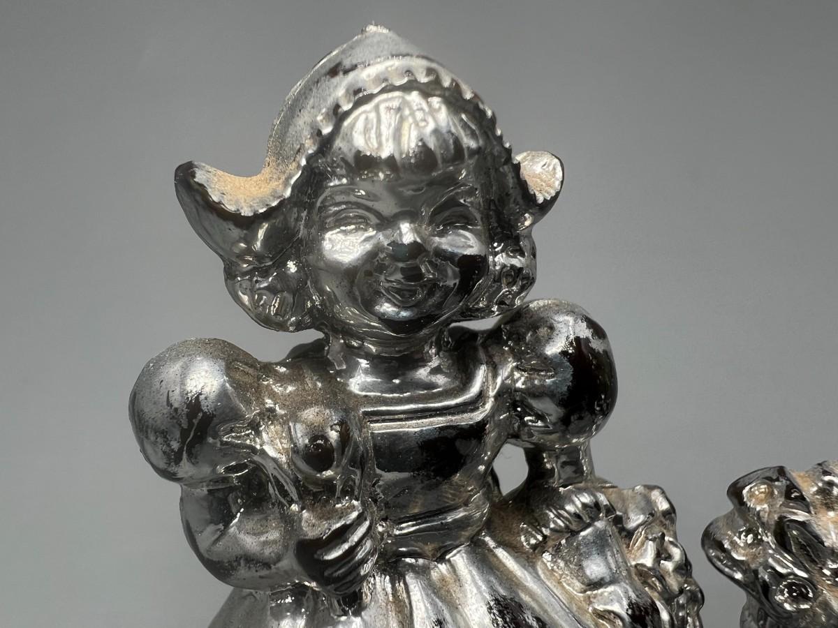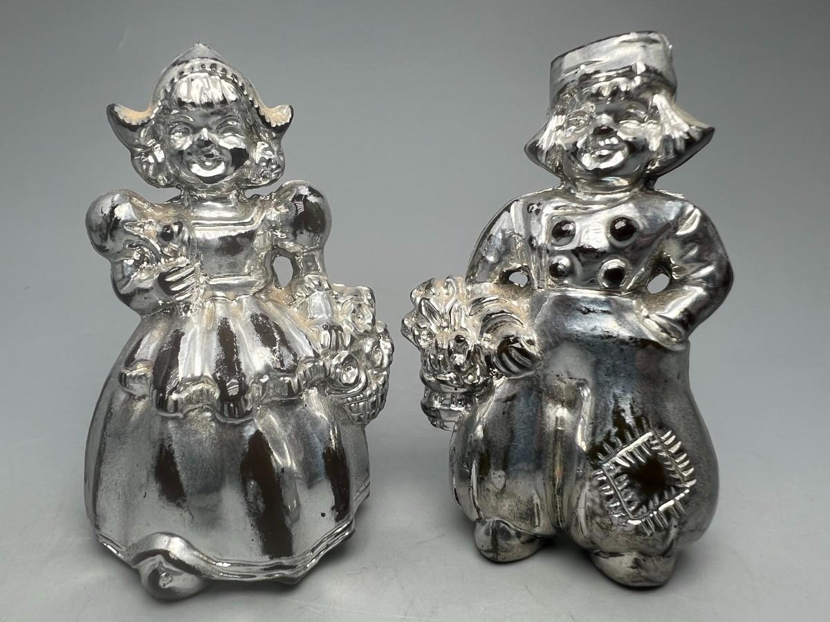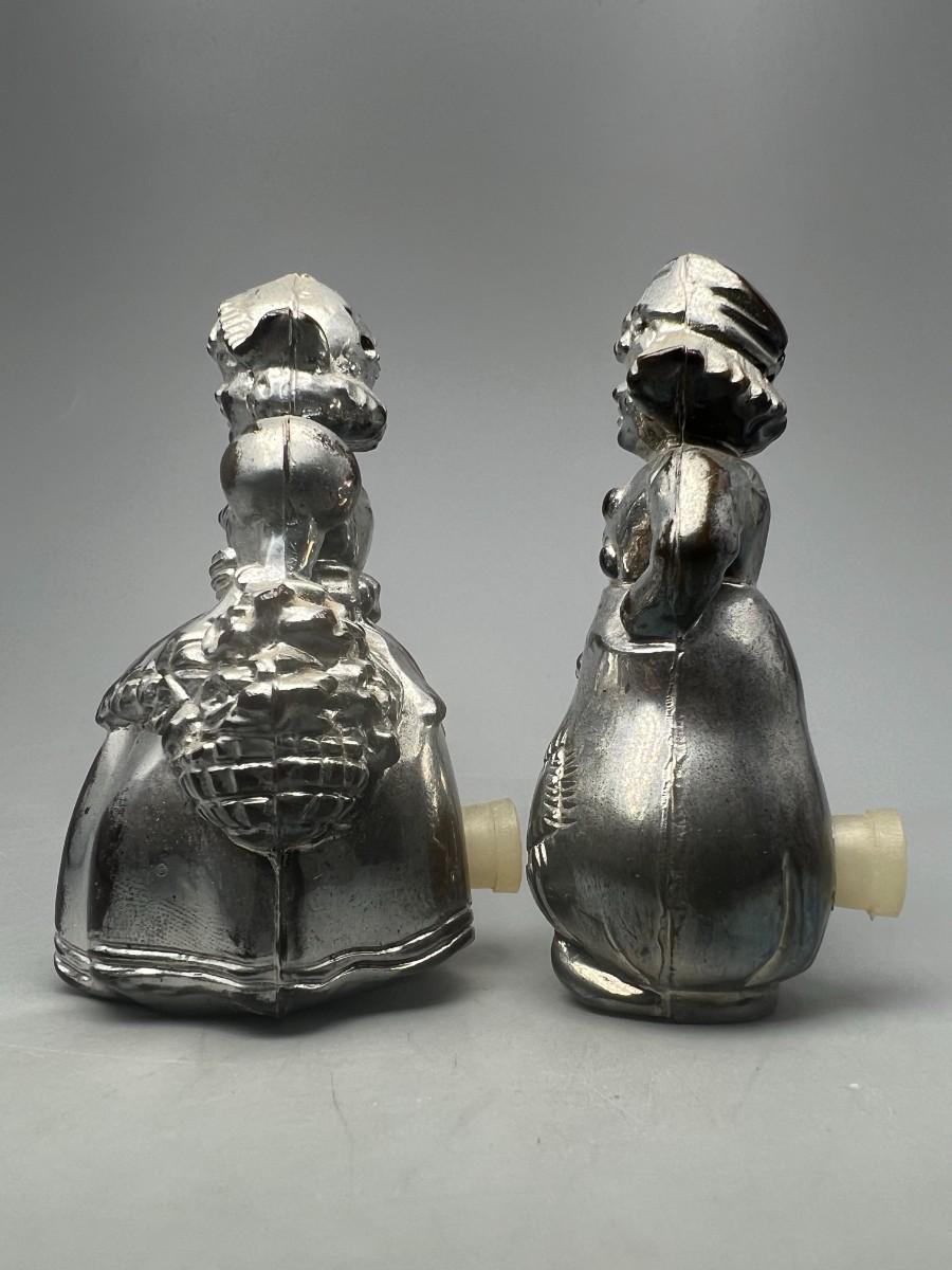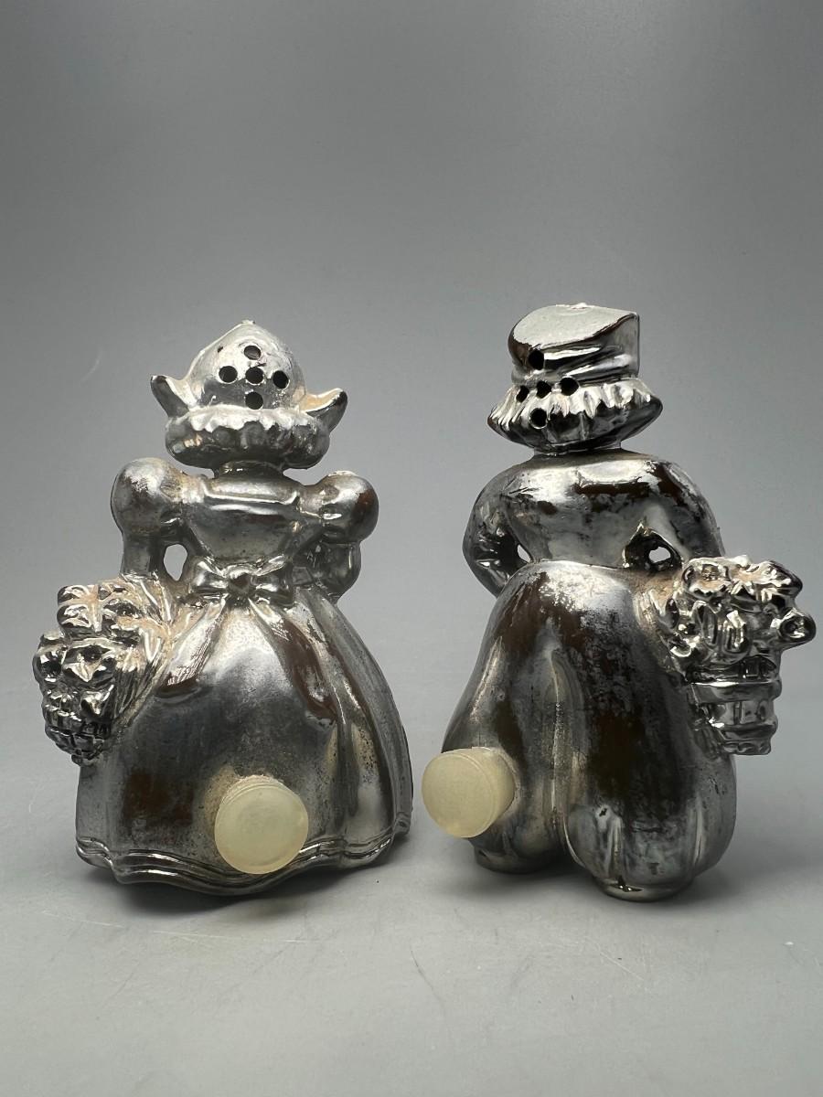 Vintage Mid Century Silver Colored Plastic Dutch Couple Salt & Pepper Shakers