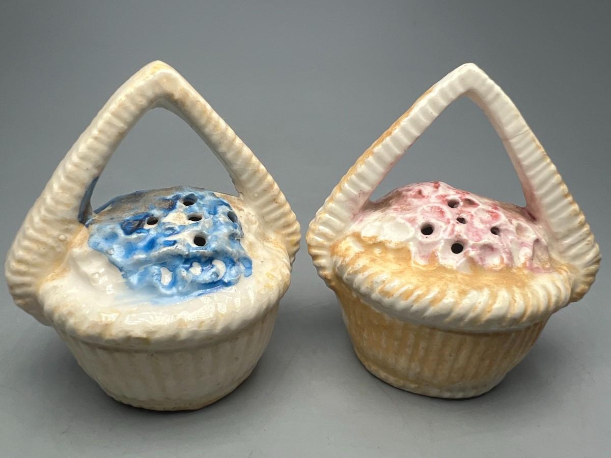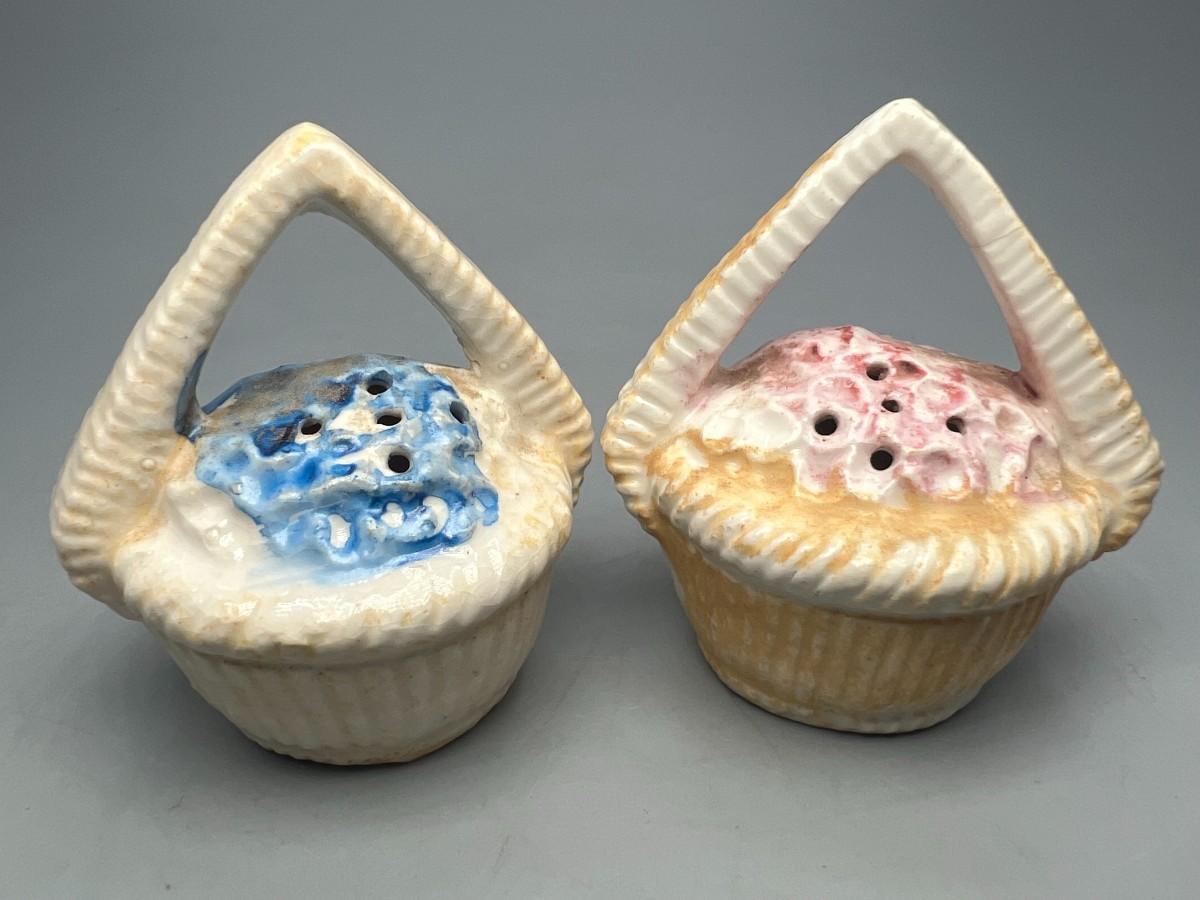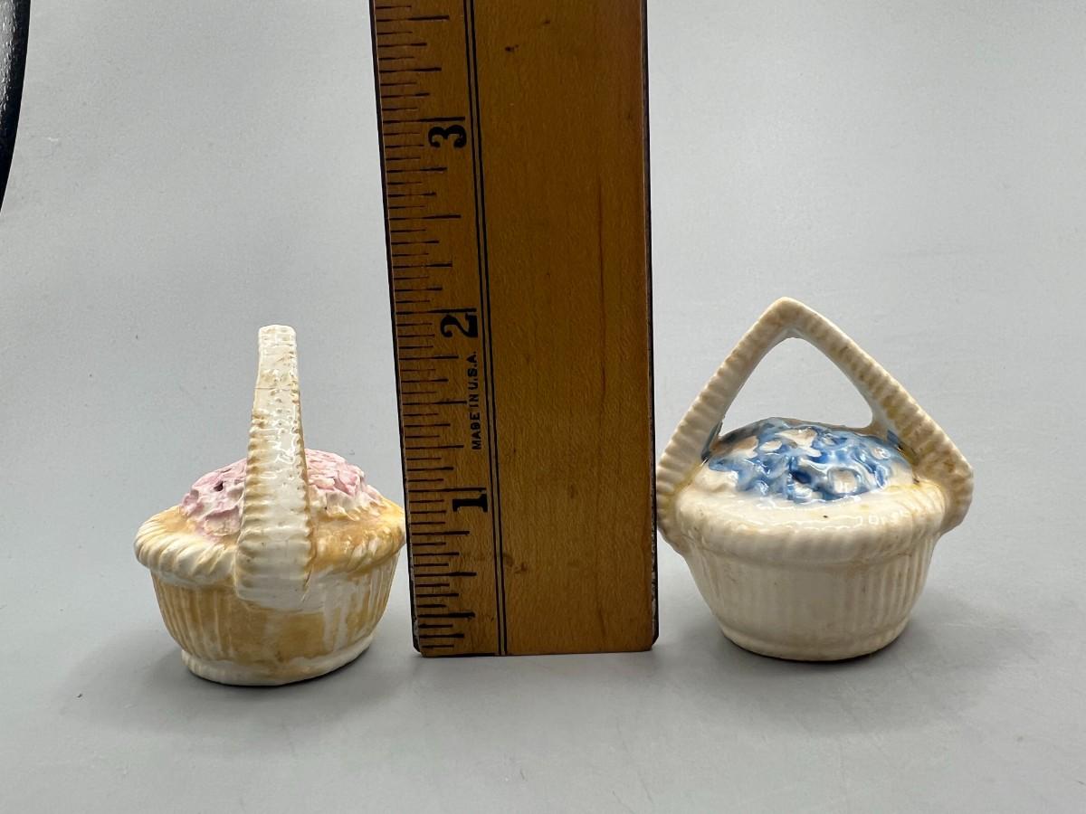 Vintage Salt & Pepper Japanese Baskets of Blue Pink Flower Roses