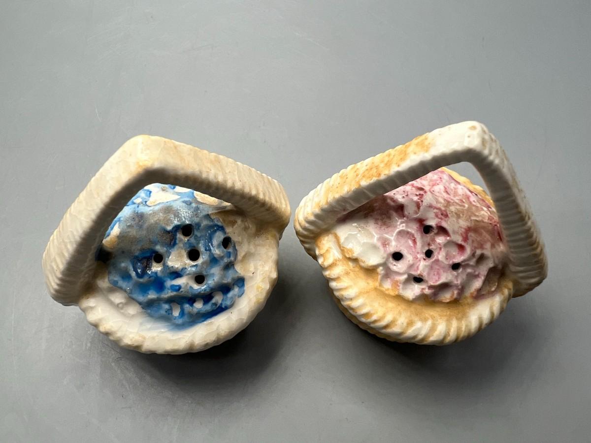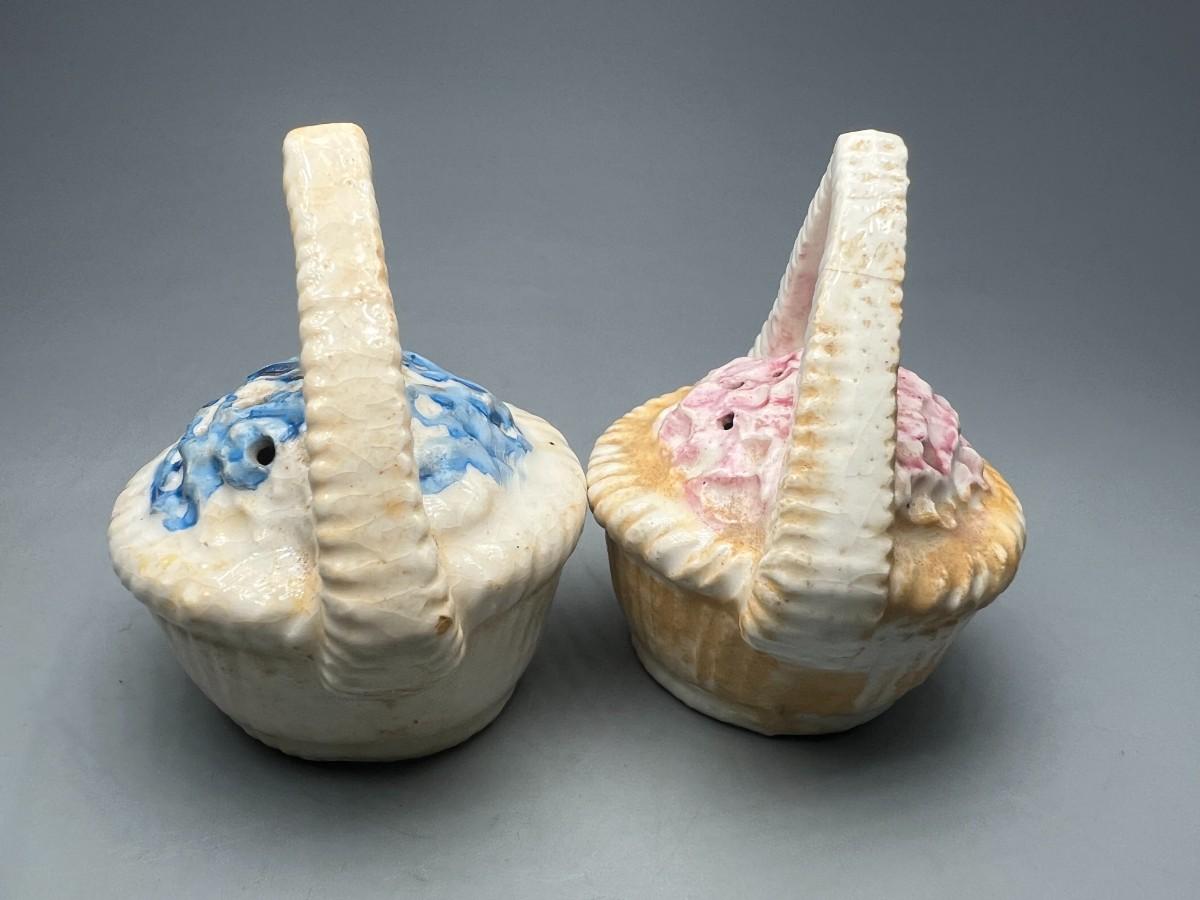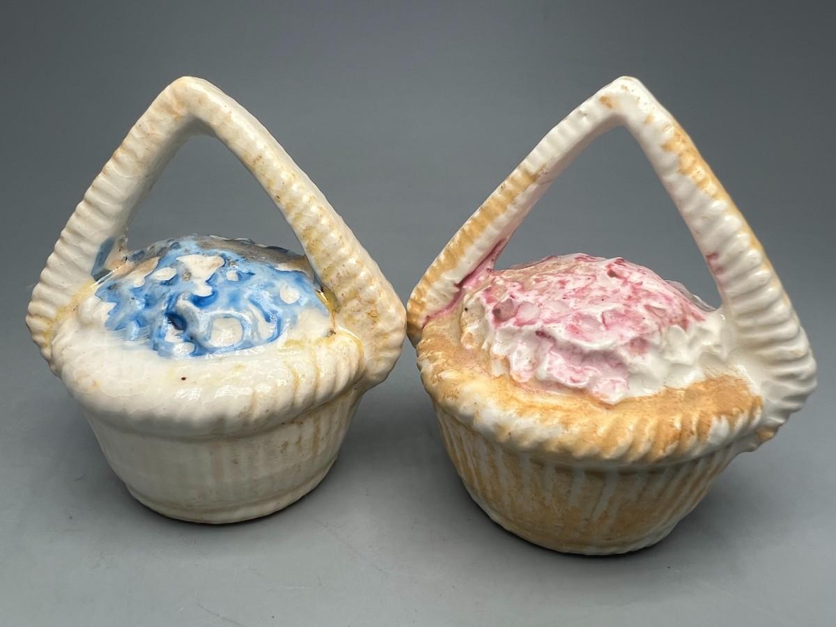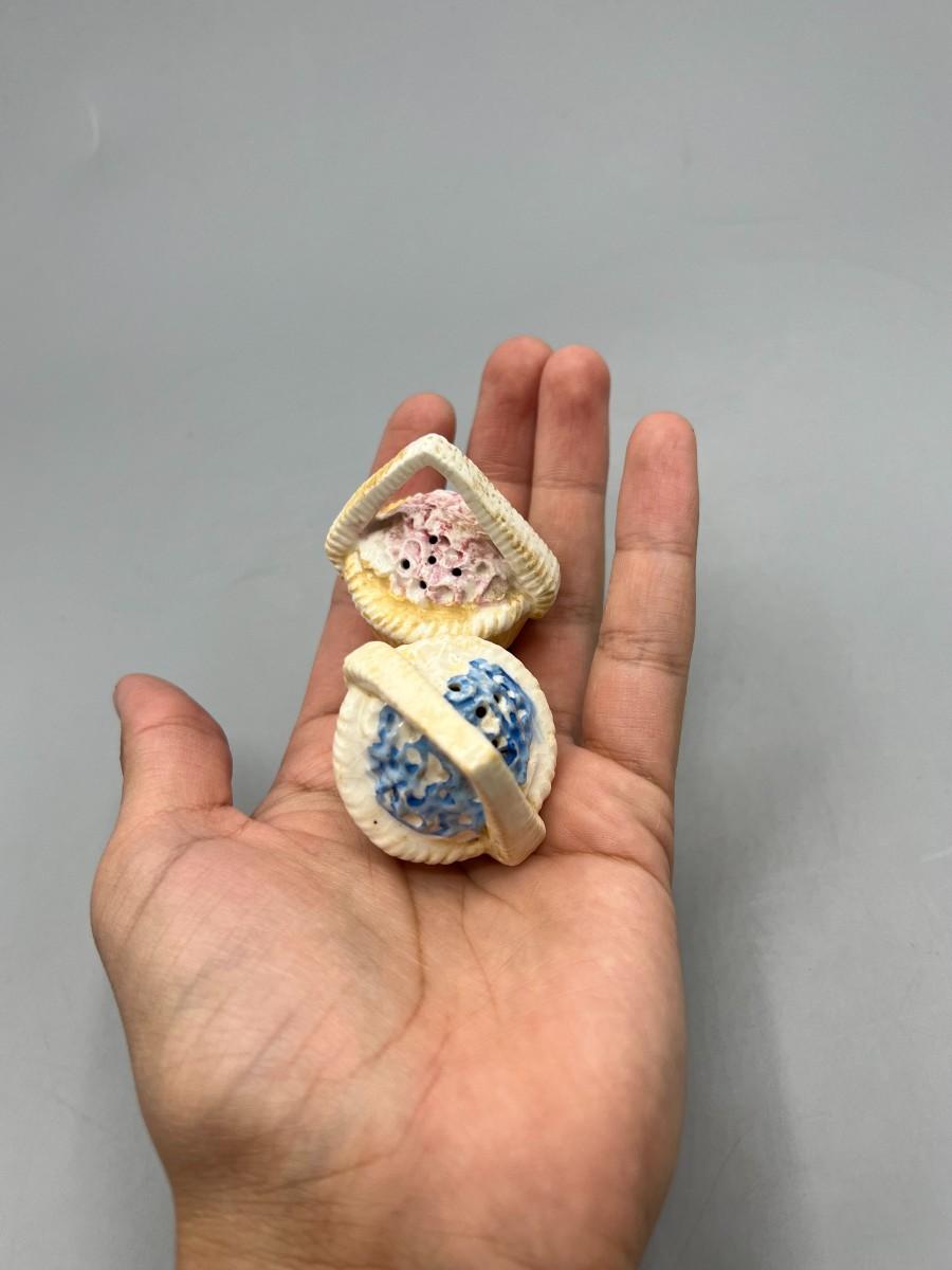 Vintage Salt & Pepper Japanese Baskets of Blue Pink Flower Roses
