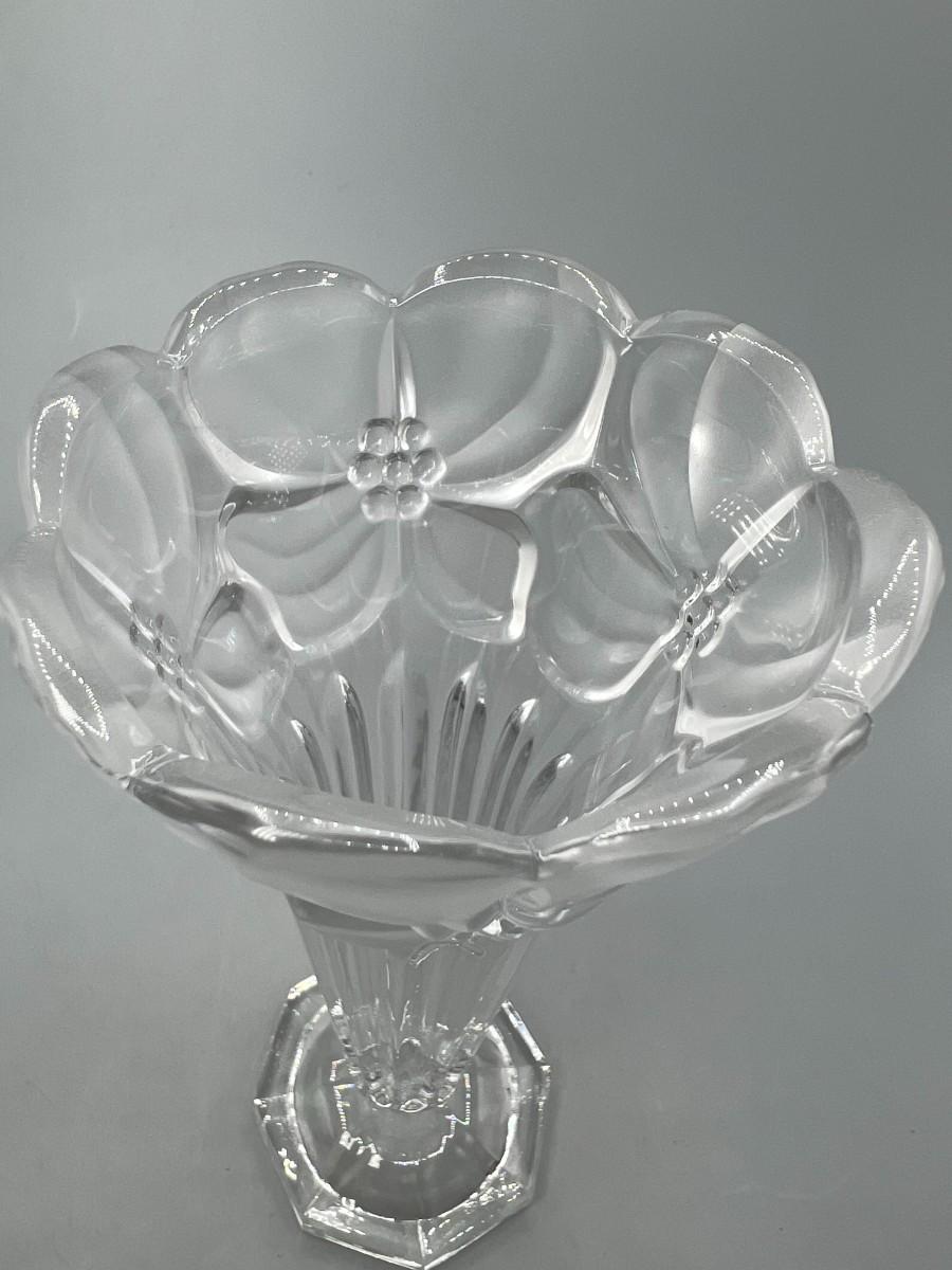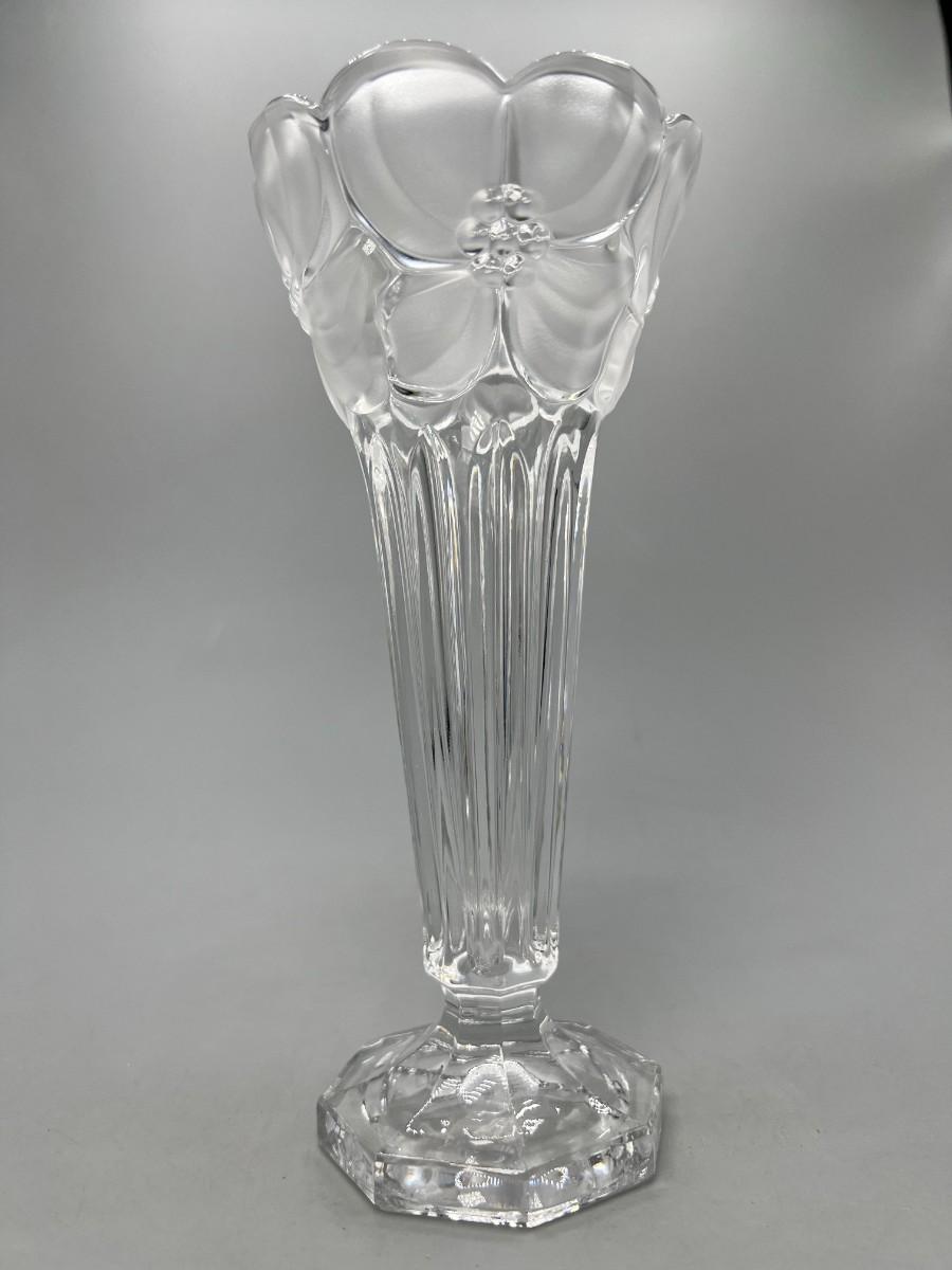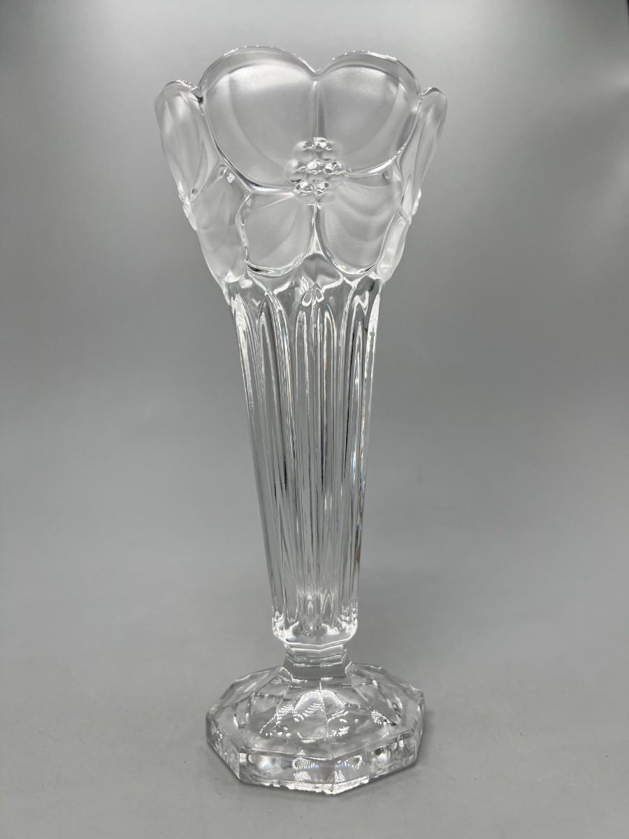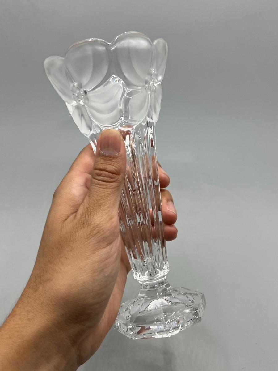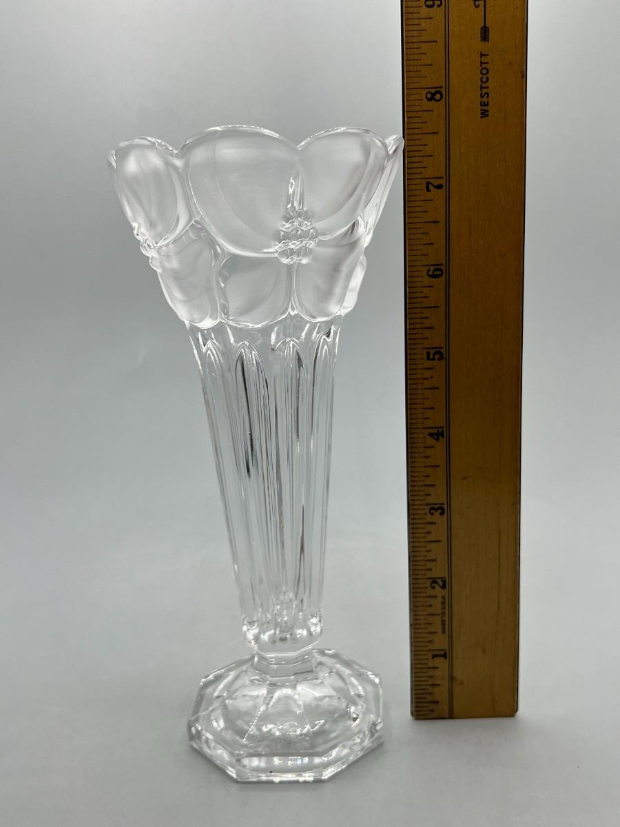 Vintage Leaded Cut Crystal 7.5" tall Bud Vase with Clear & Frosted Flowers & Pedestal