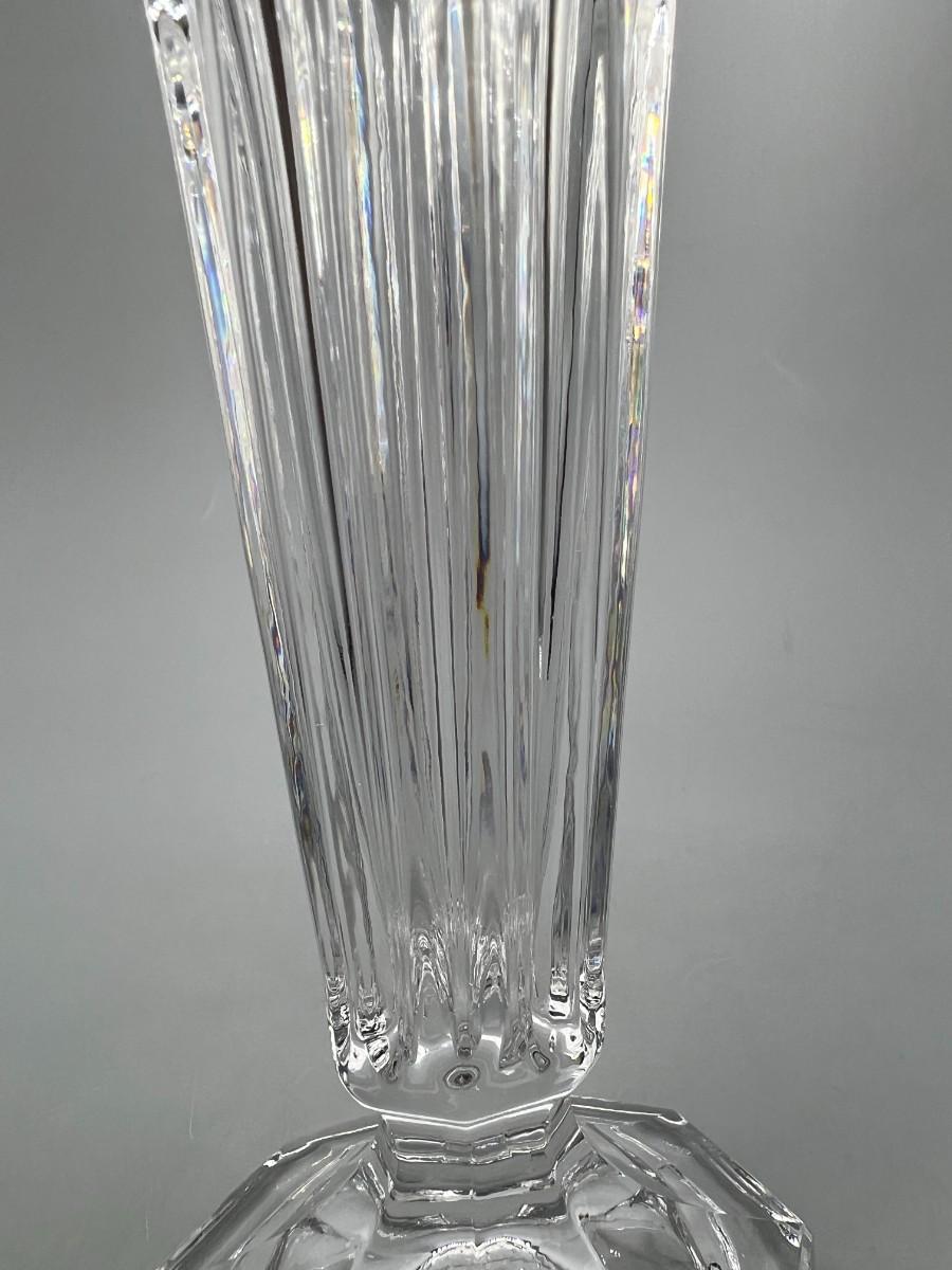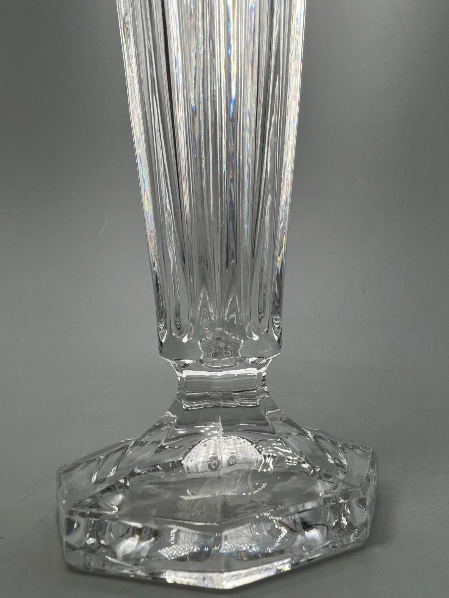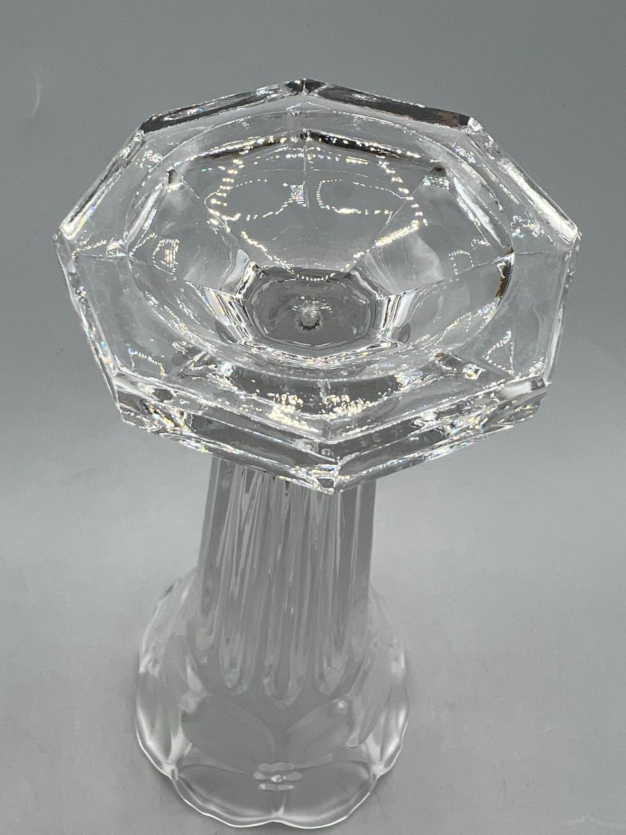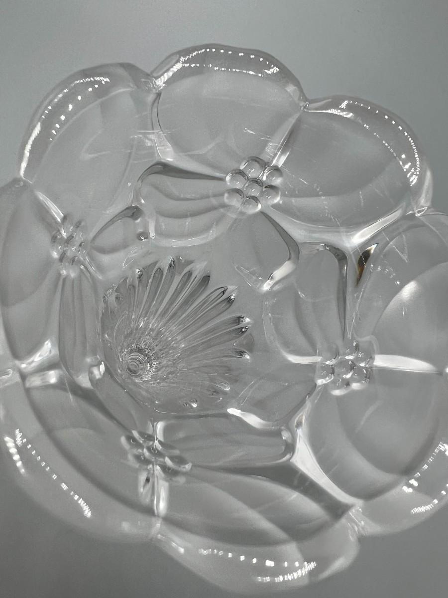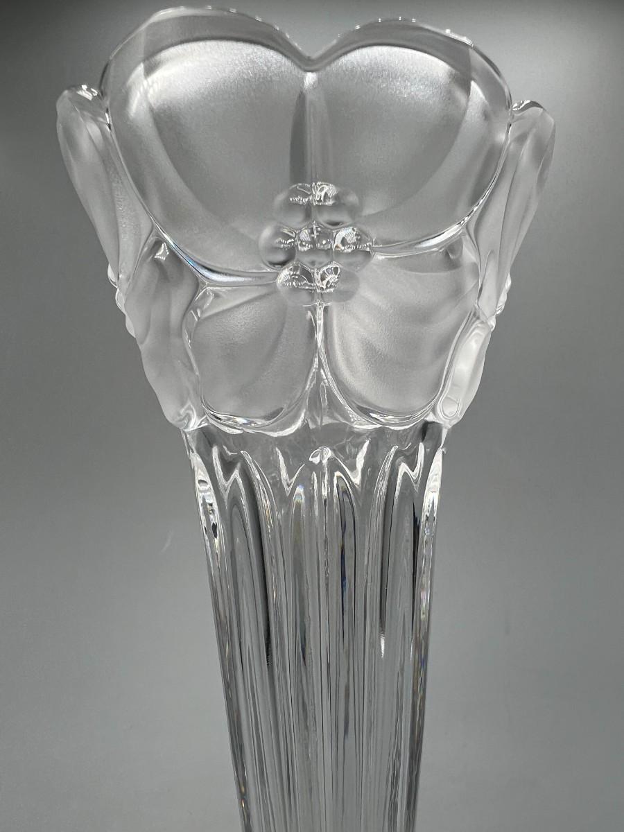 Vintage Leaded Cut Crystal 7.5" tall Bud Vase with Clear & Frosted Flowers & Pedestal