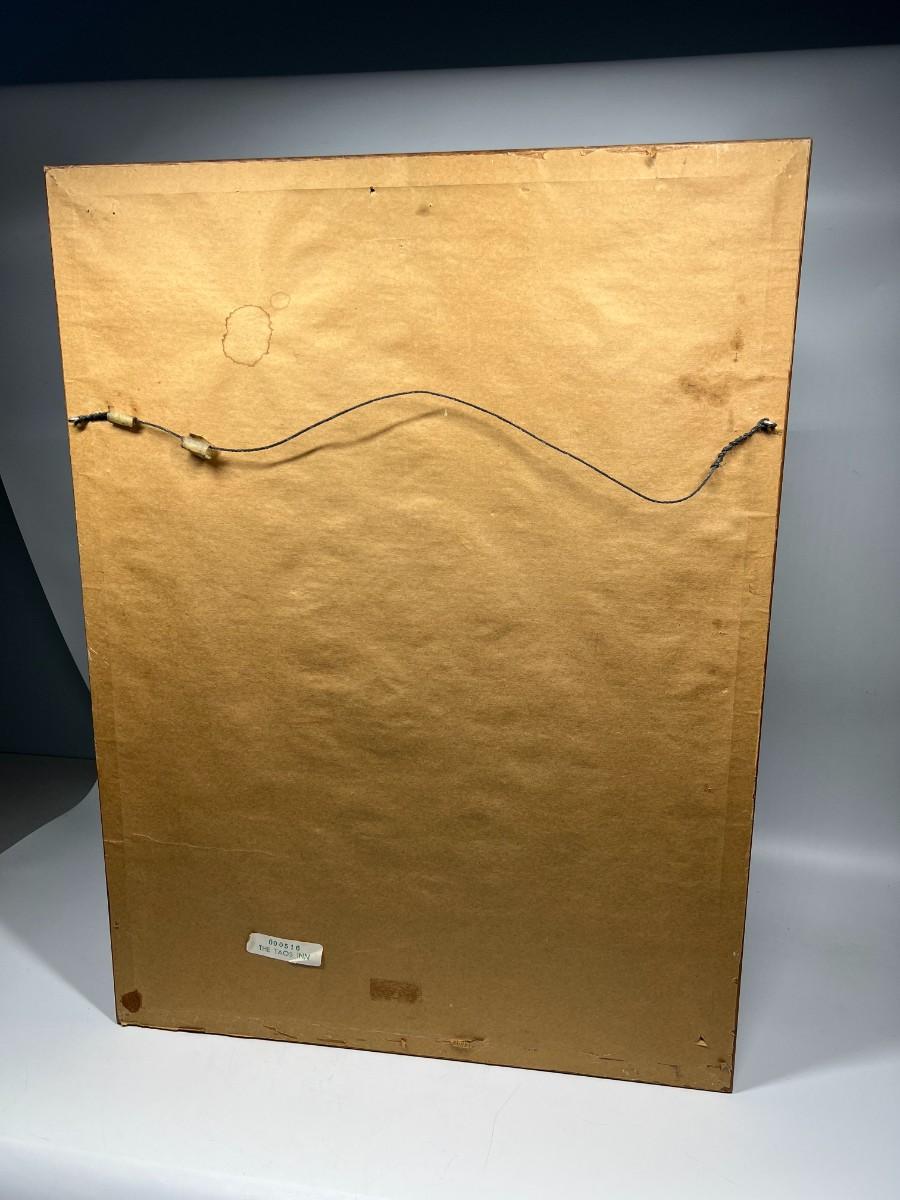 There is no damage to the frame or the print and is in good condition. Check pictures for details and sizing.