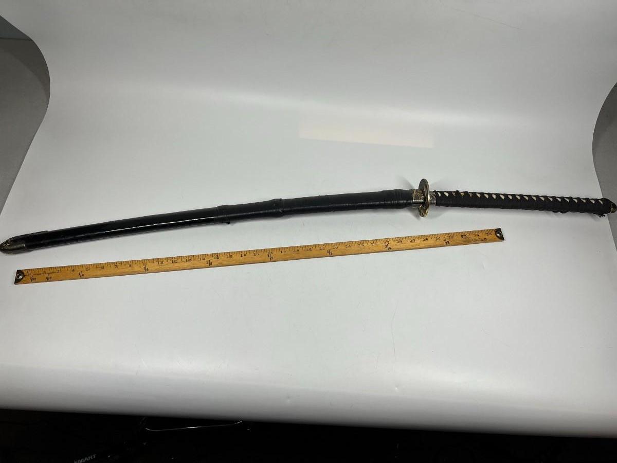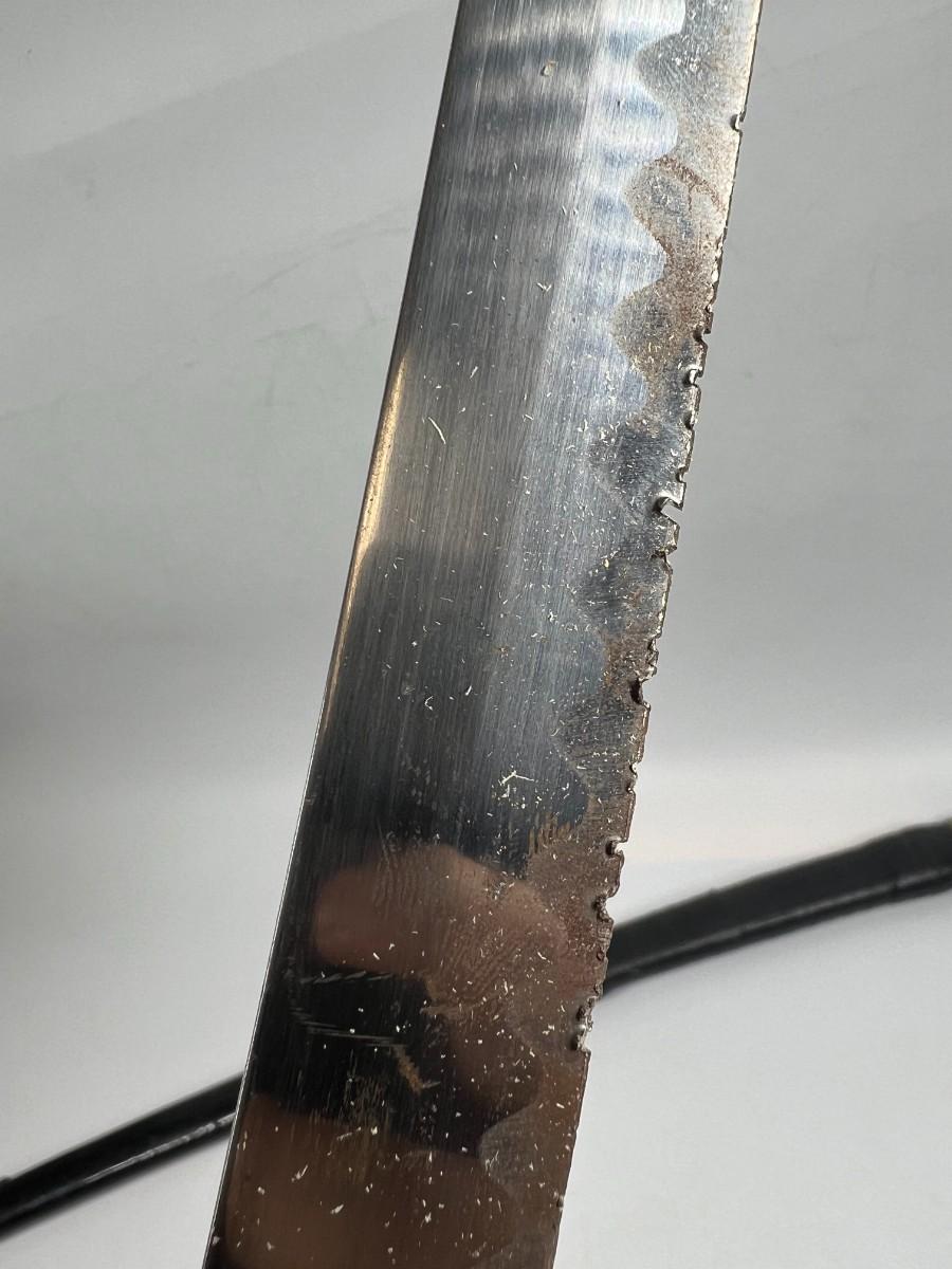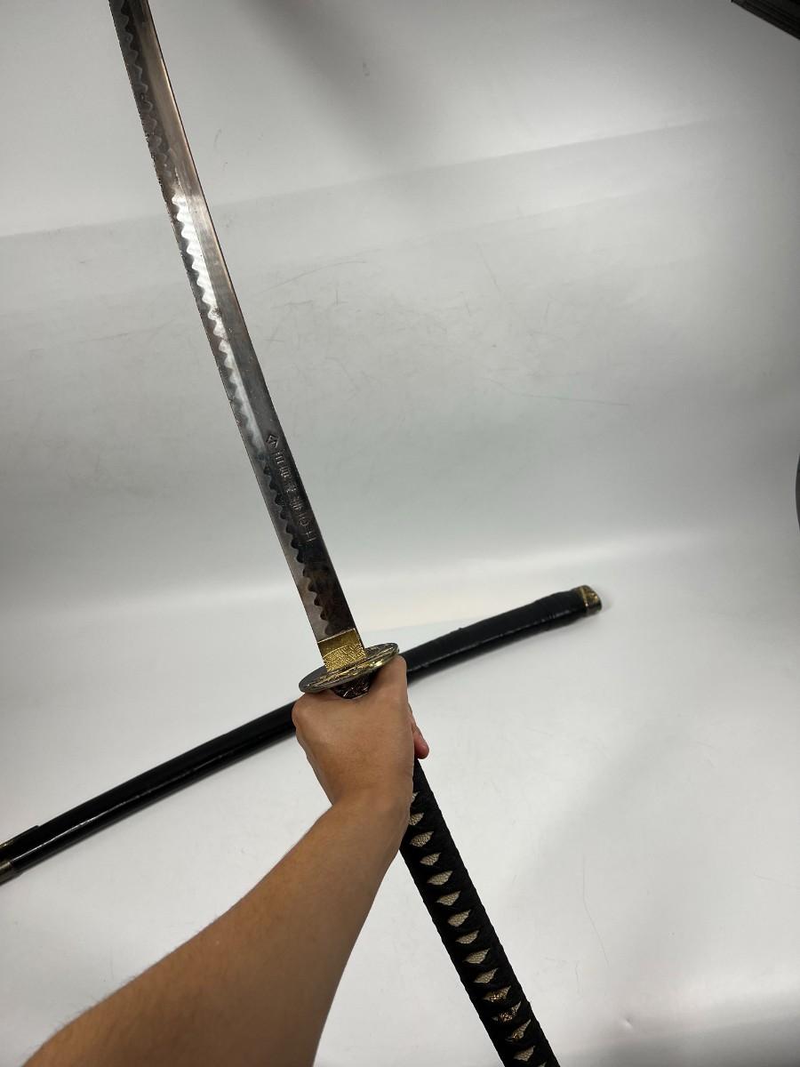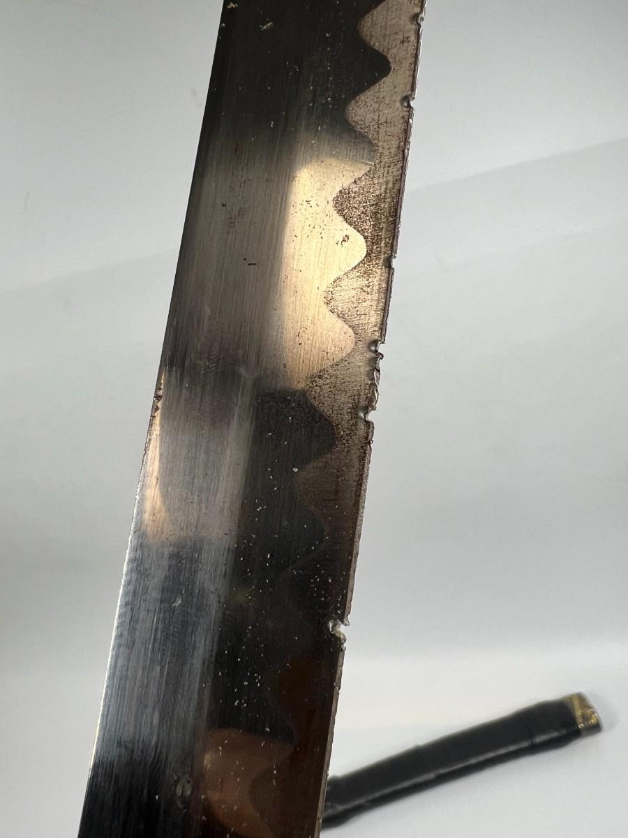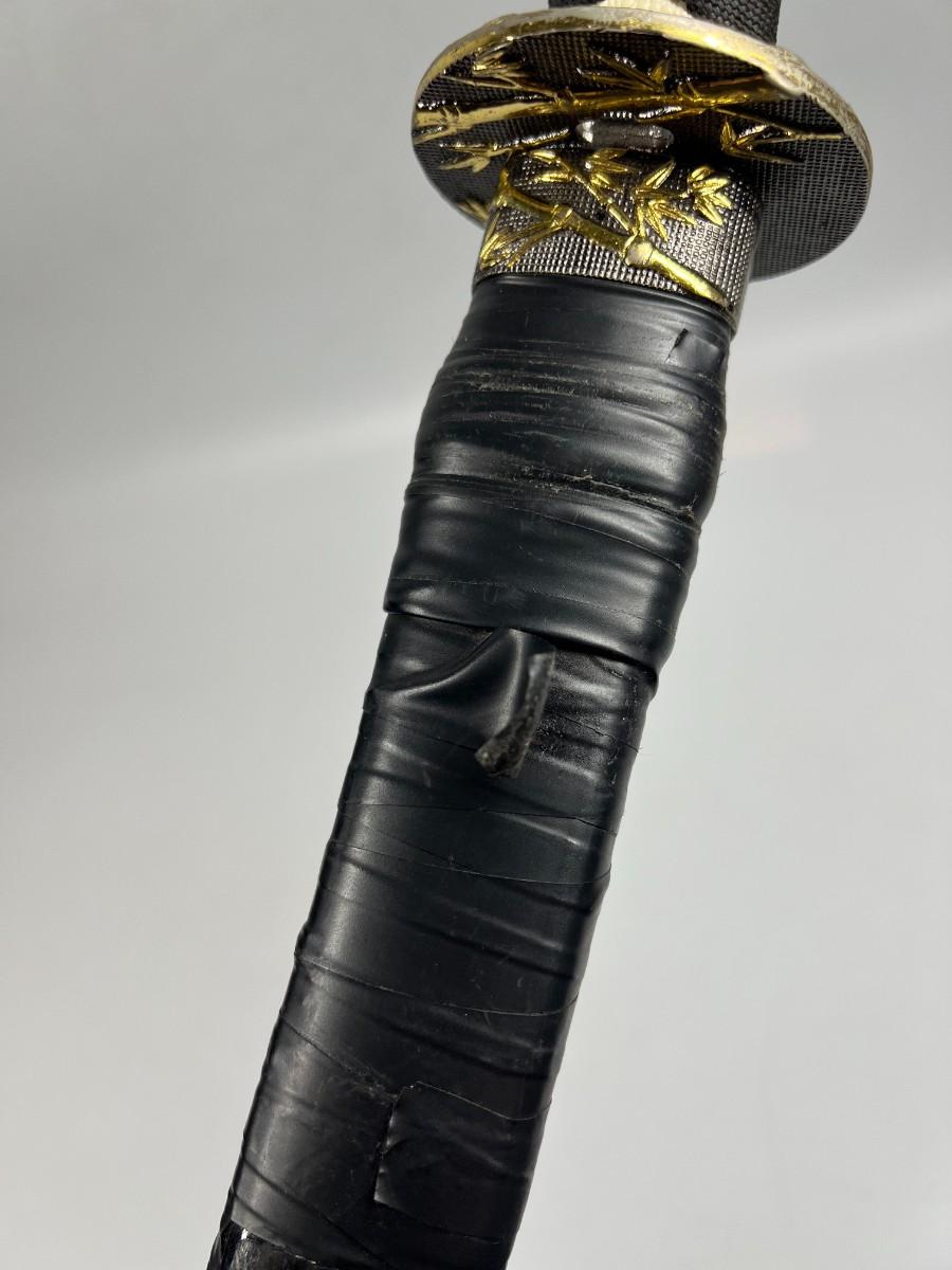 You can see that someone used the sword on a hard surface, there are dents in the blade. There is also duct tape on the sheath of the sword.