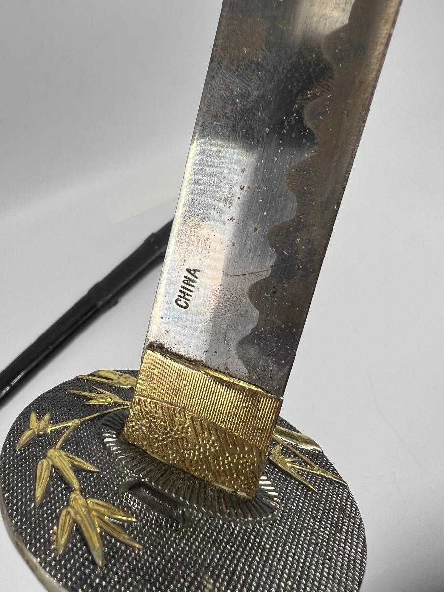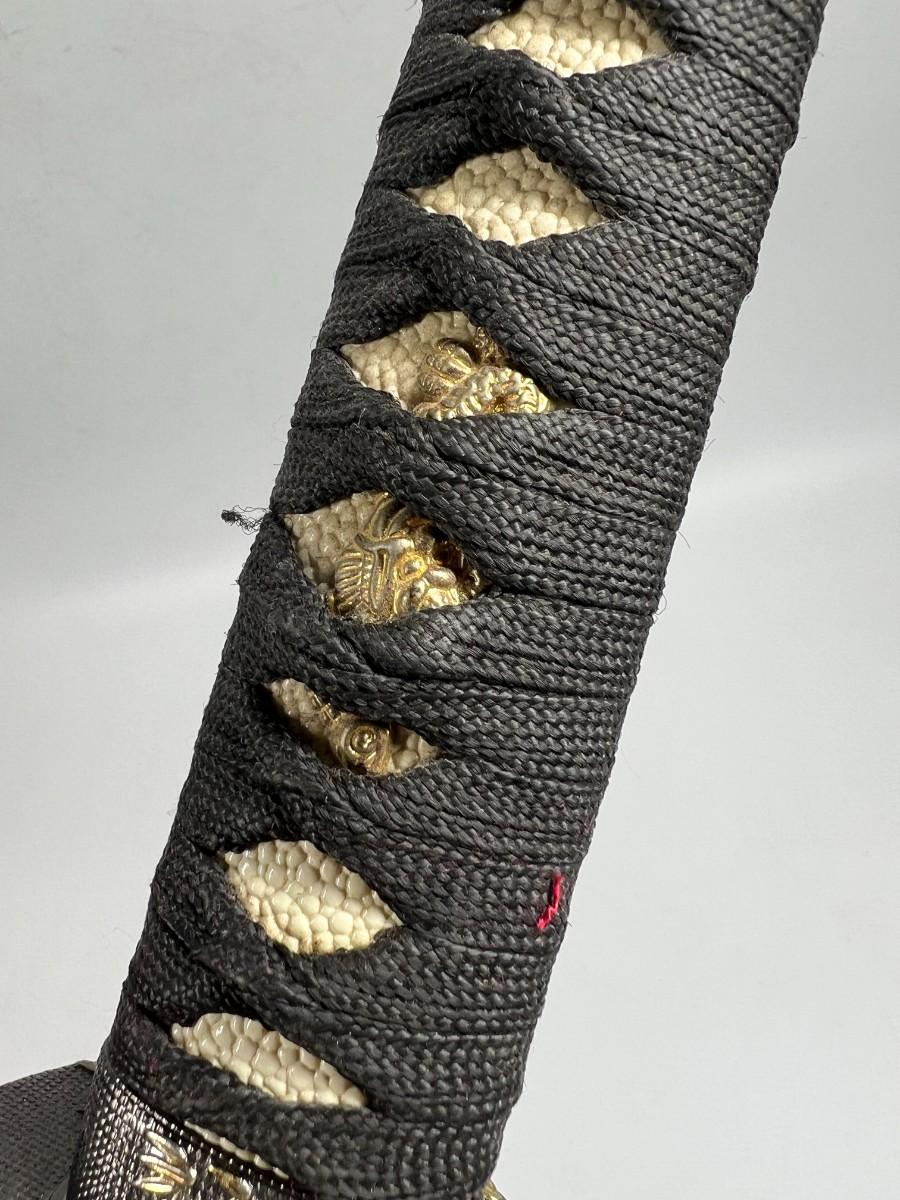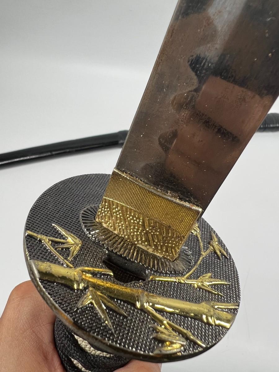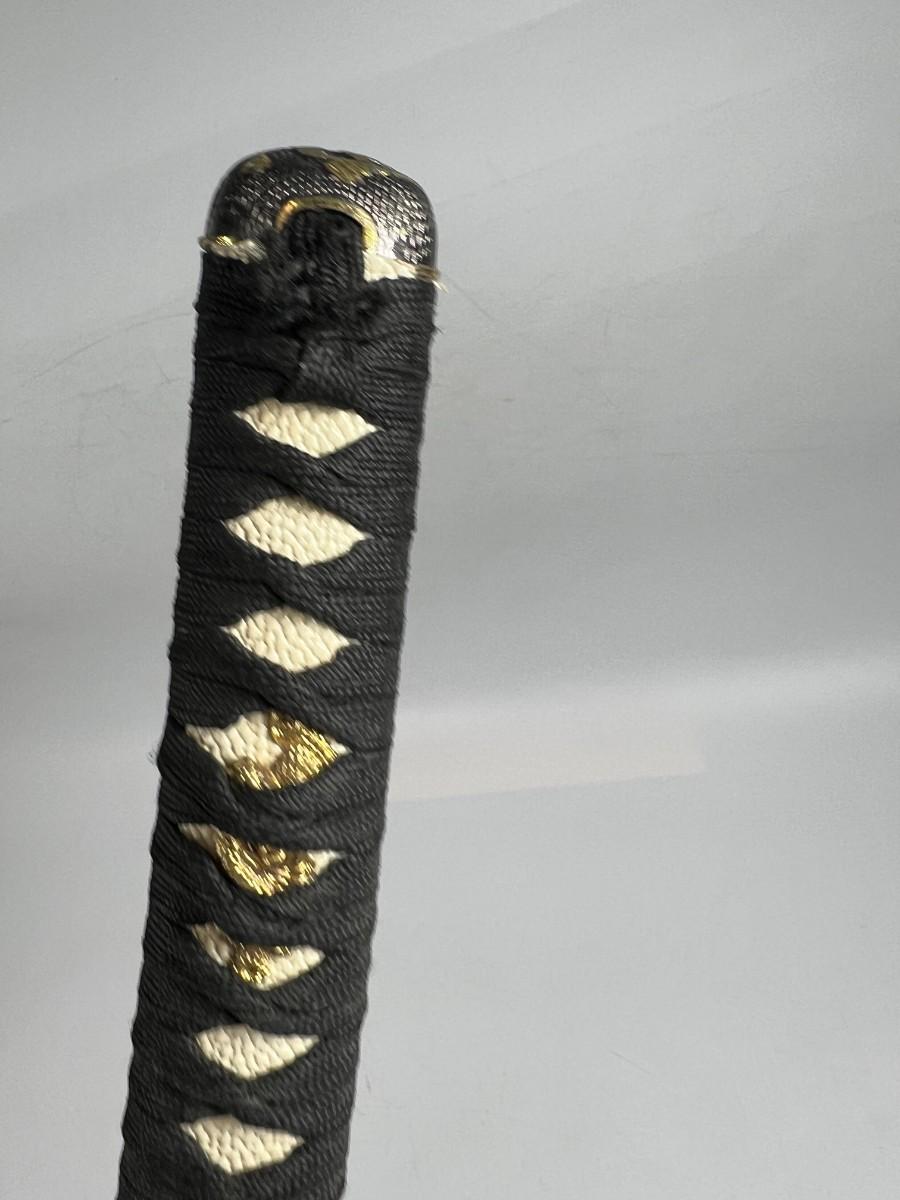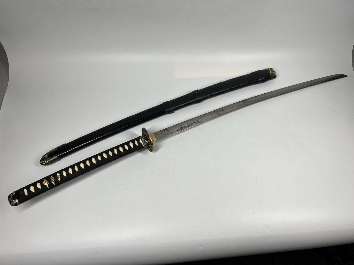 You can see that someone used the sword on a hard surface, there are dents in the blade. There is also duct tape on the sheath of the sword.