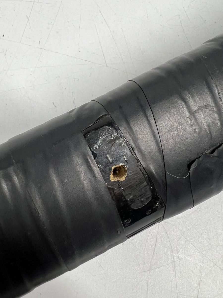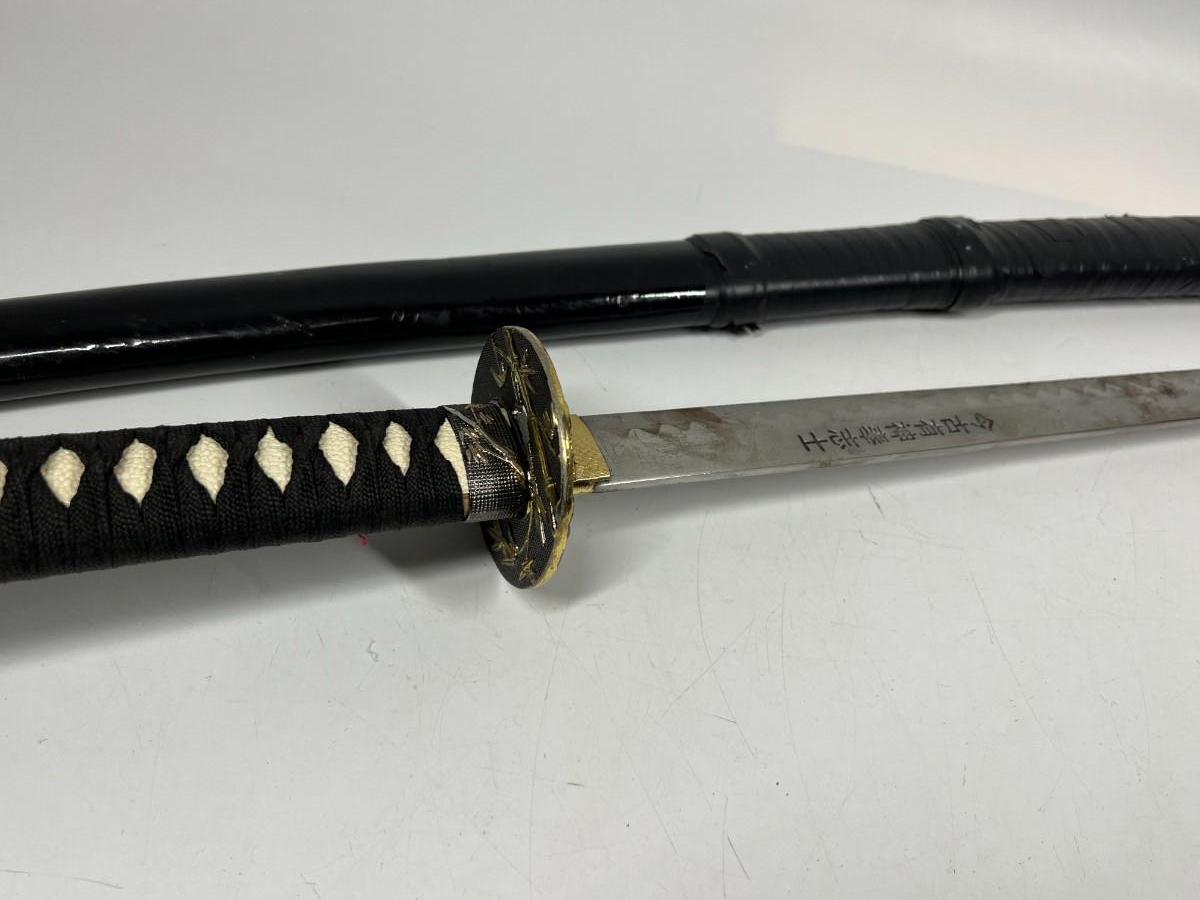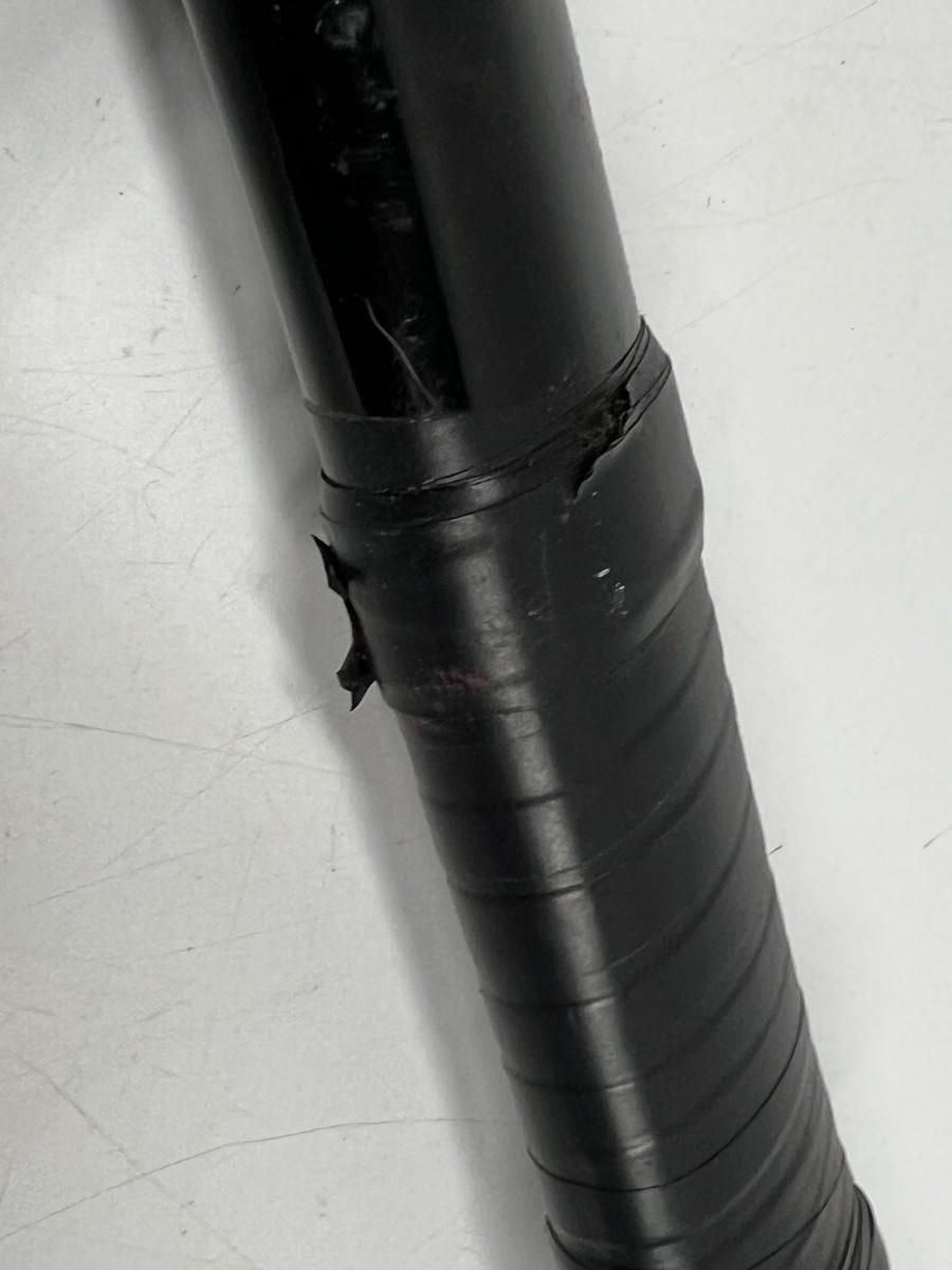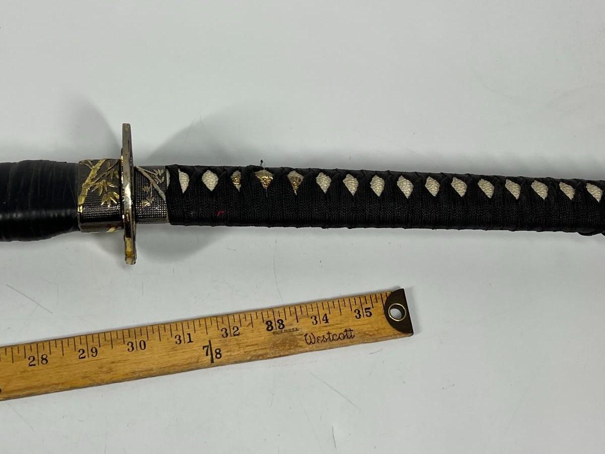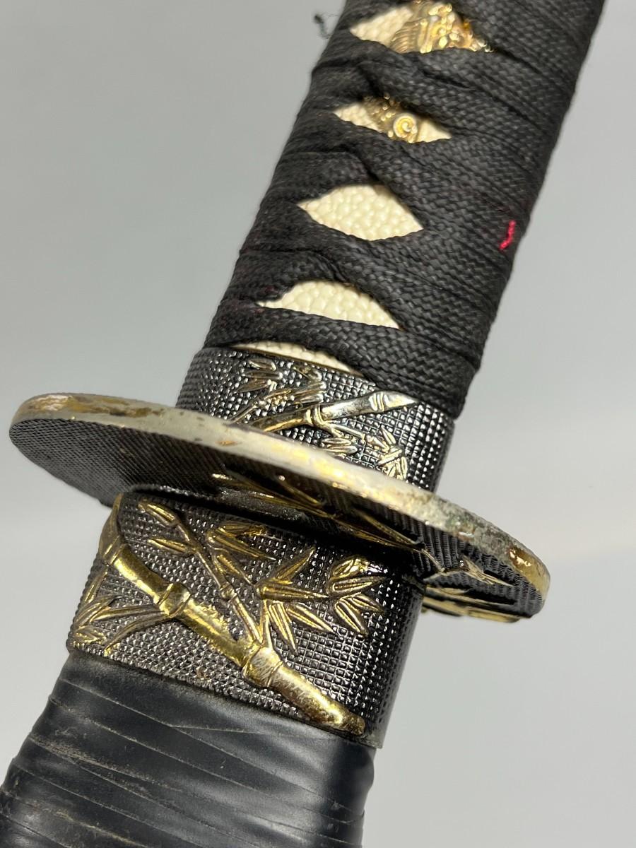 You can see that someone used the sword on a hard surface, there are dents in the blade. There is also duct tape on the sheath of the sword.