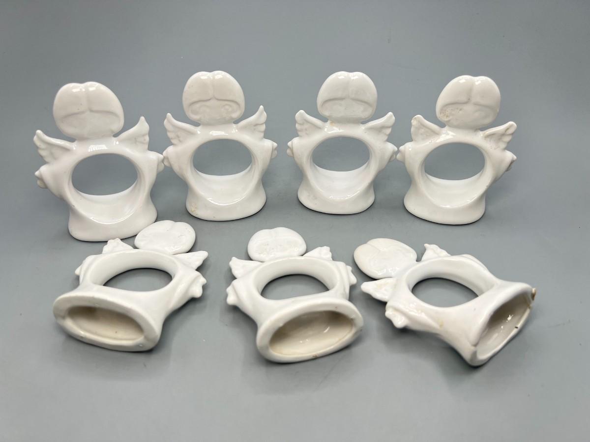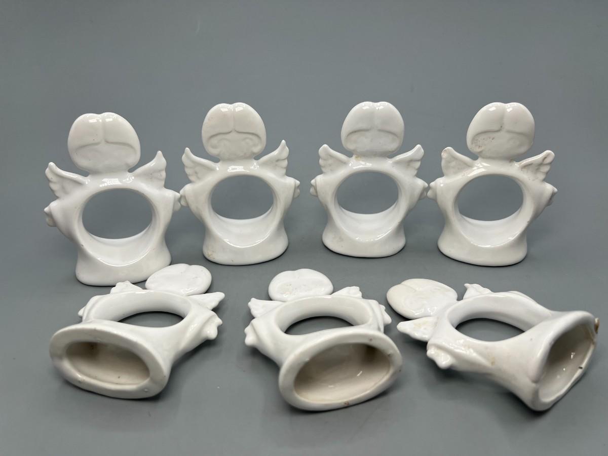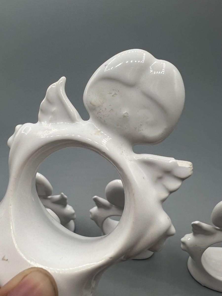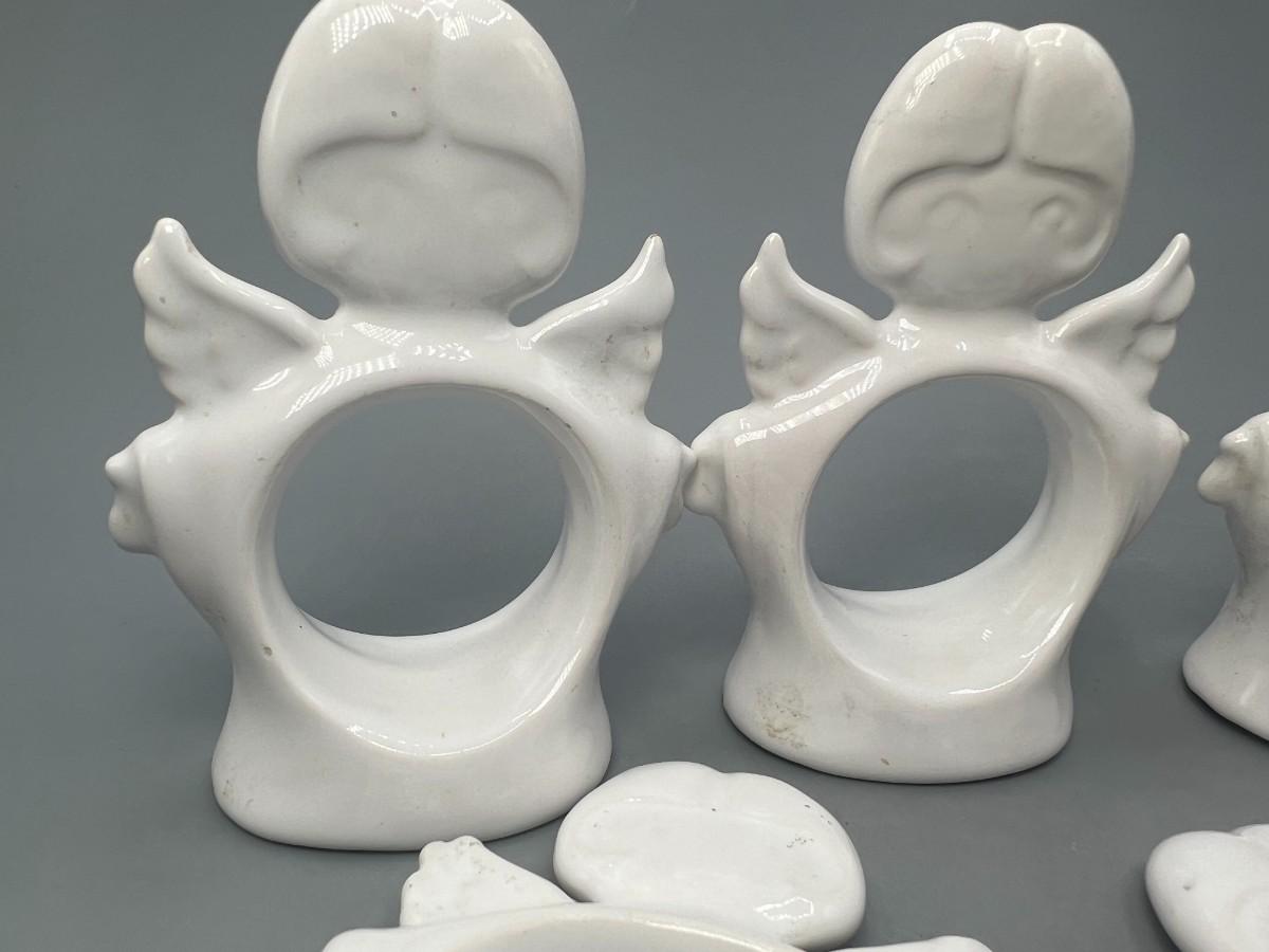 Set of White Ceramic Angel Figurines Holiday Religious Dinnerware Decor