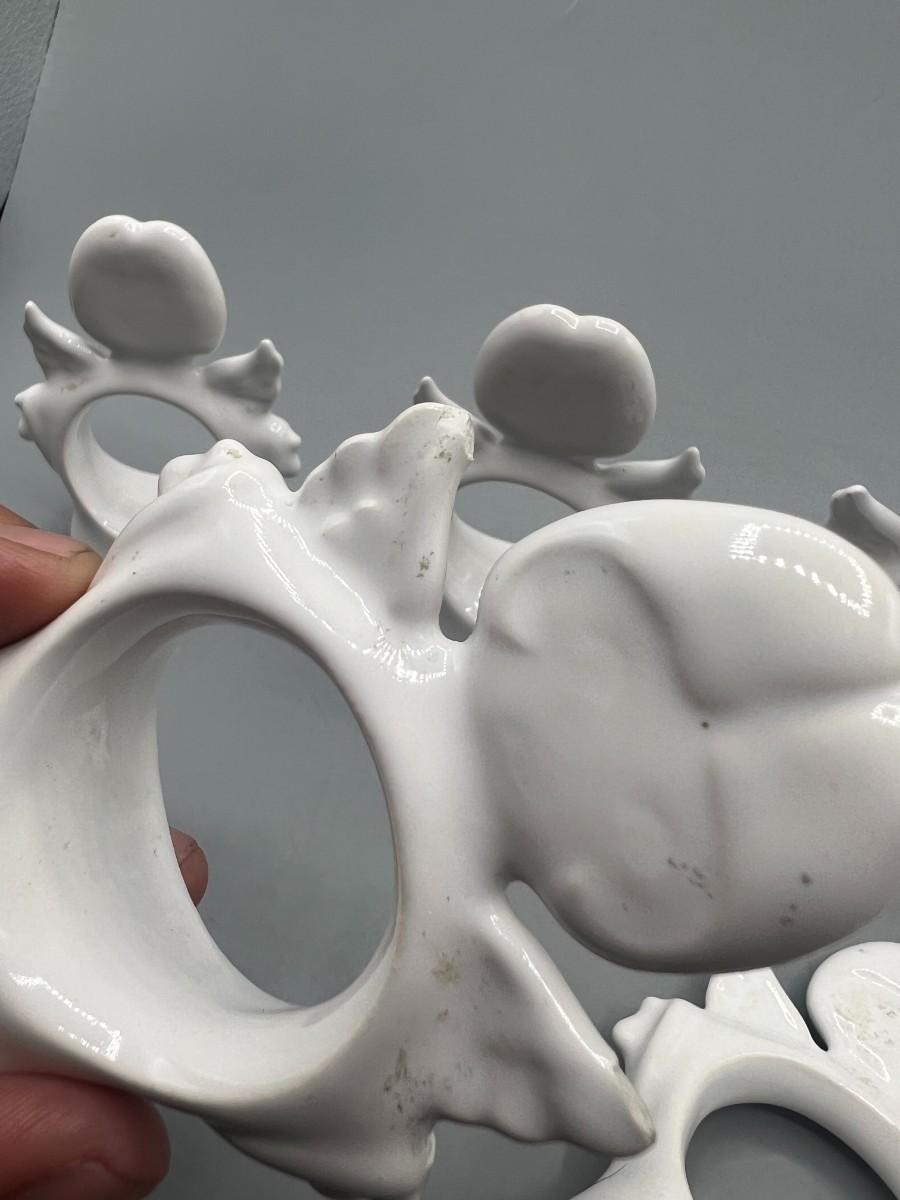 There is chipping to some of the wings on the angels, but there is no significant damage and in good condition.