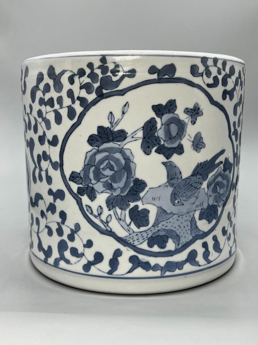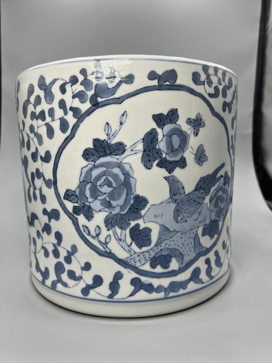 Vintage Asian Oriental Style Floral Ceramic Chinoiserie Indoor Flower Planter