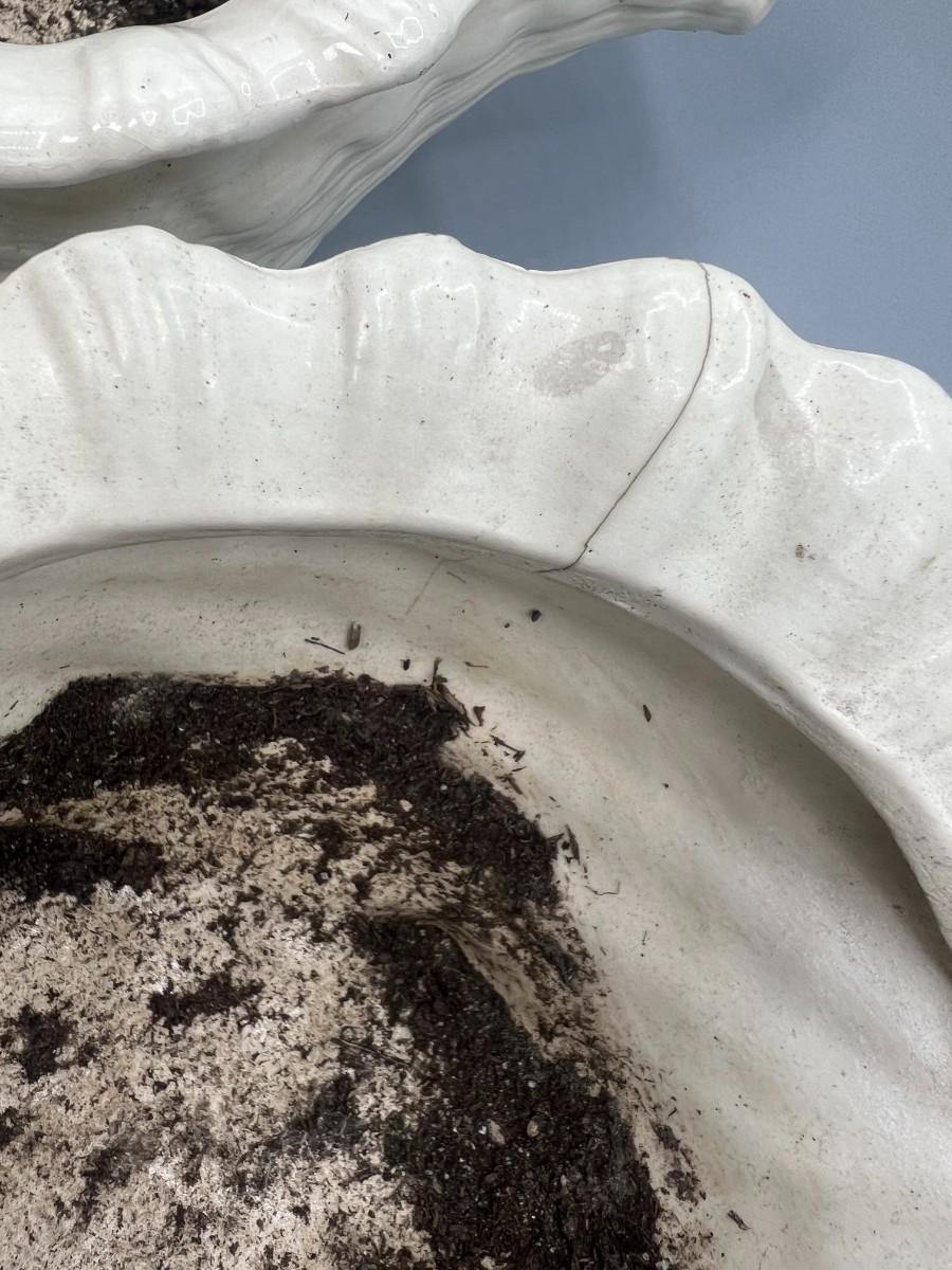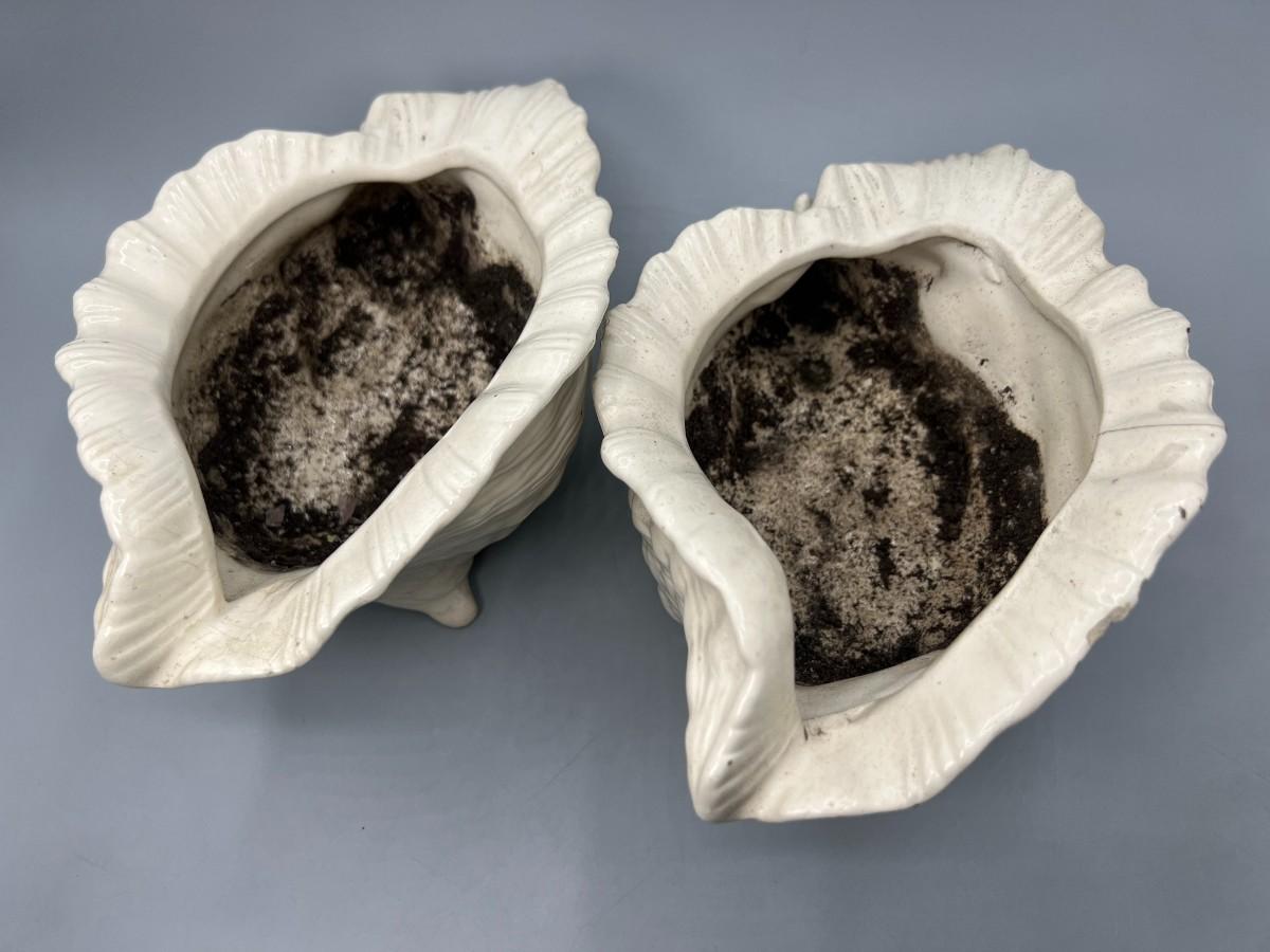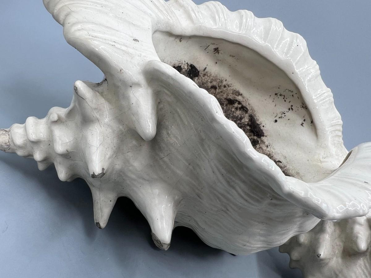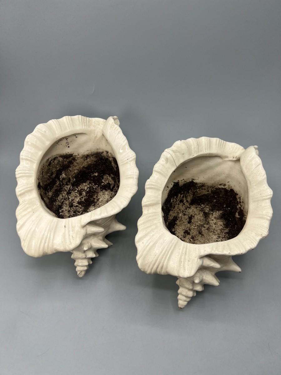Pair of Ceramic MCM Conch Shell Beach Nautical Flower Pot Planters