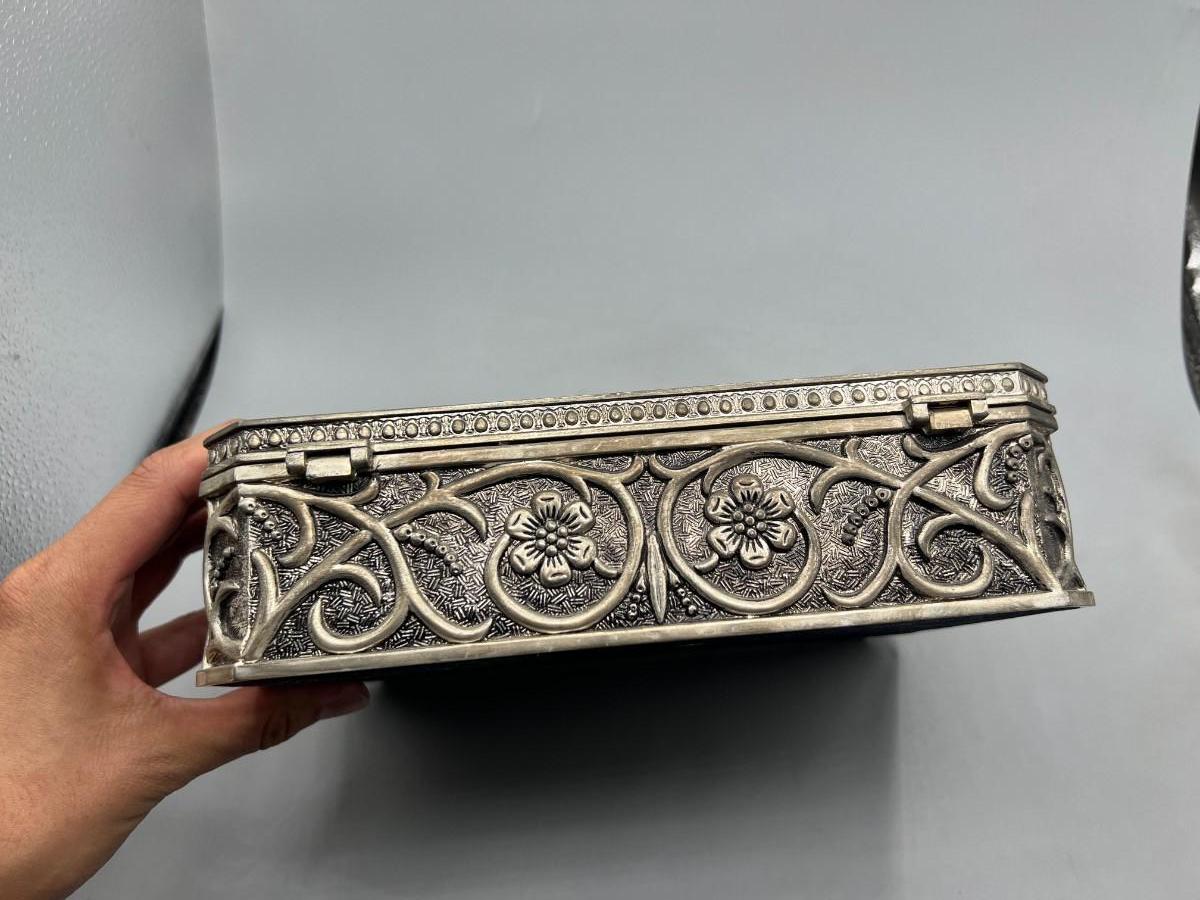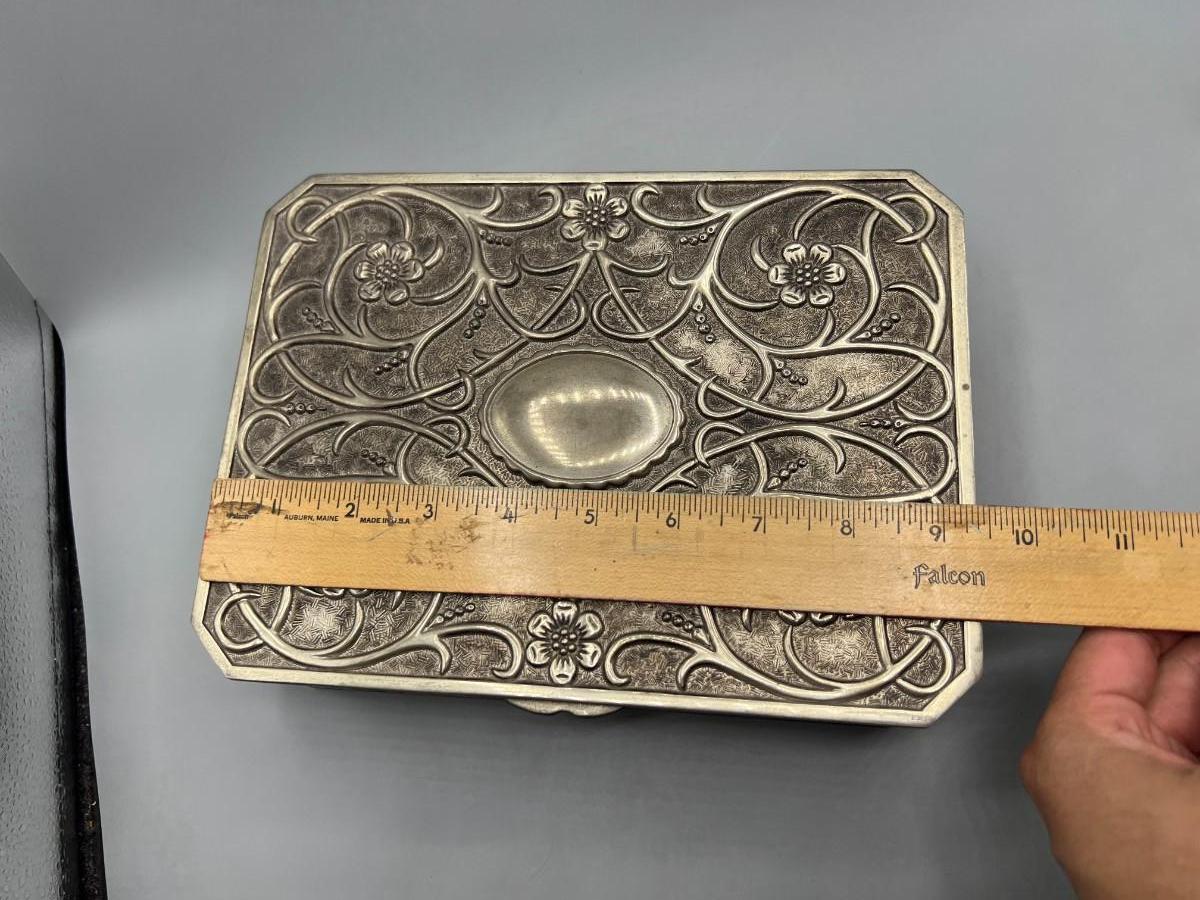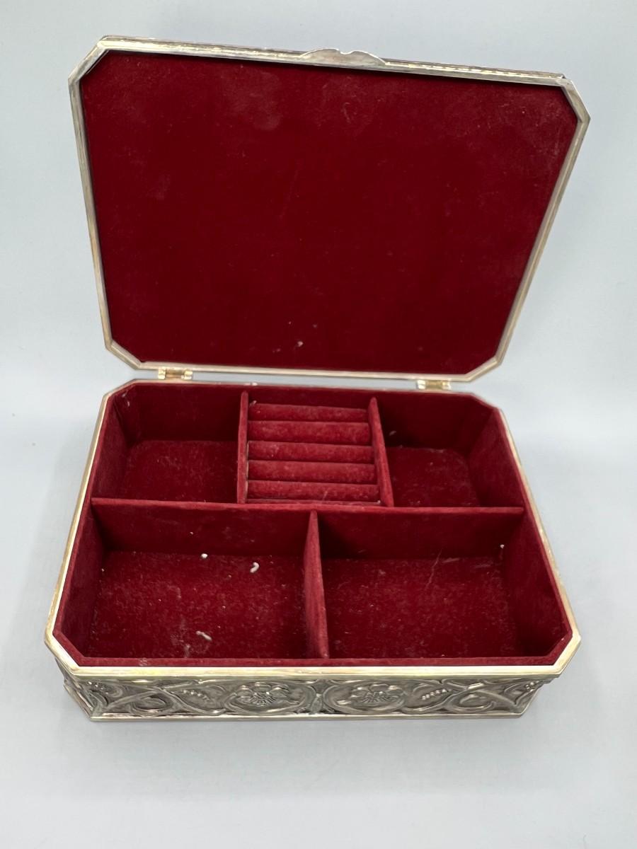 Vintage Godinger Silver Plated Floral Embossed Red Velvet Jewelry Box