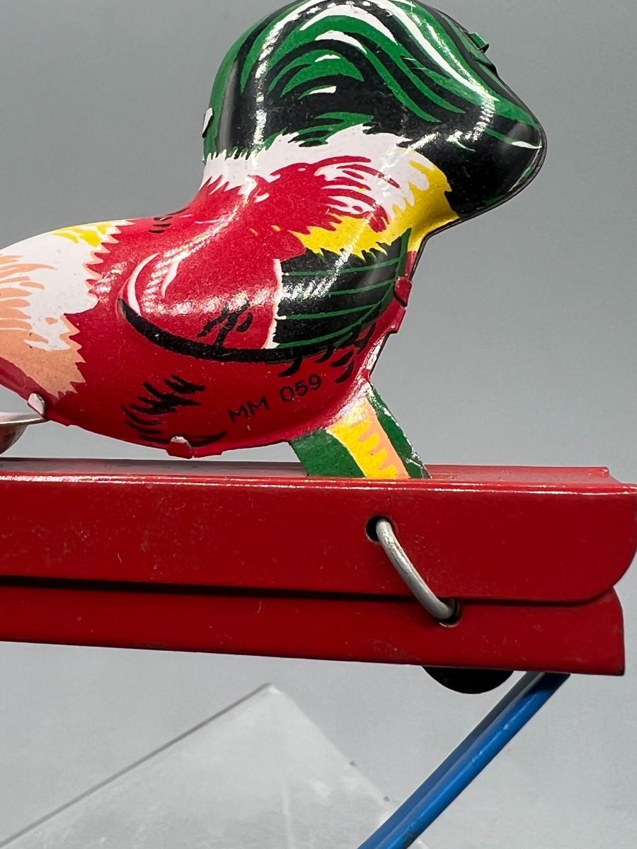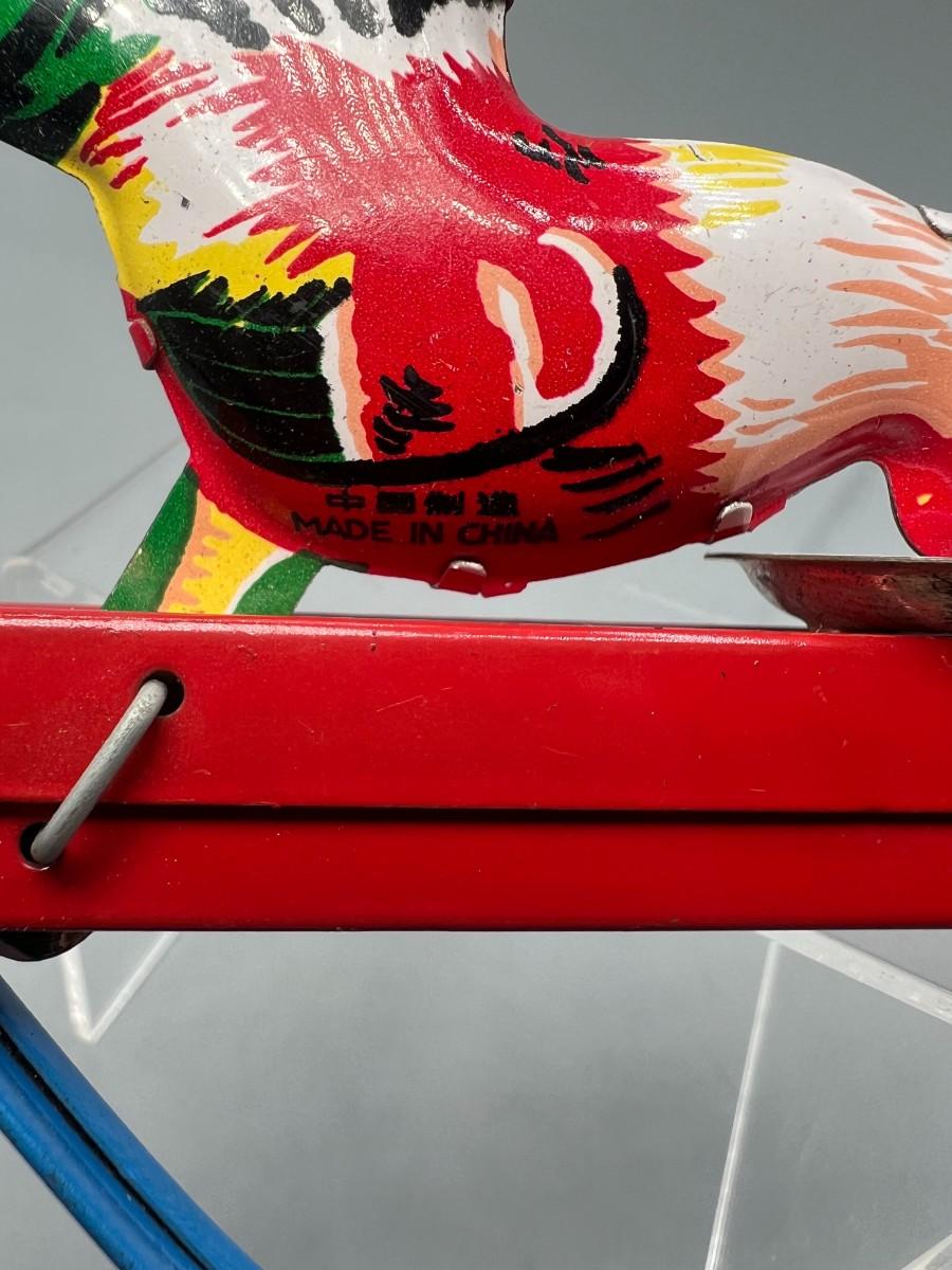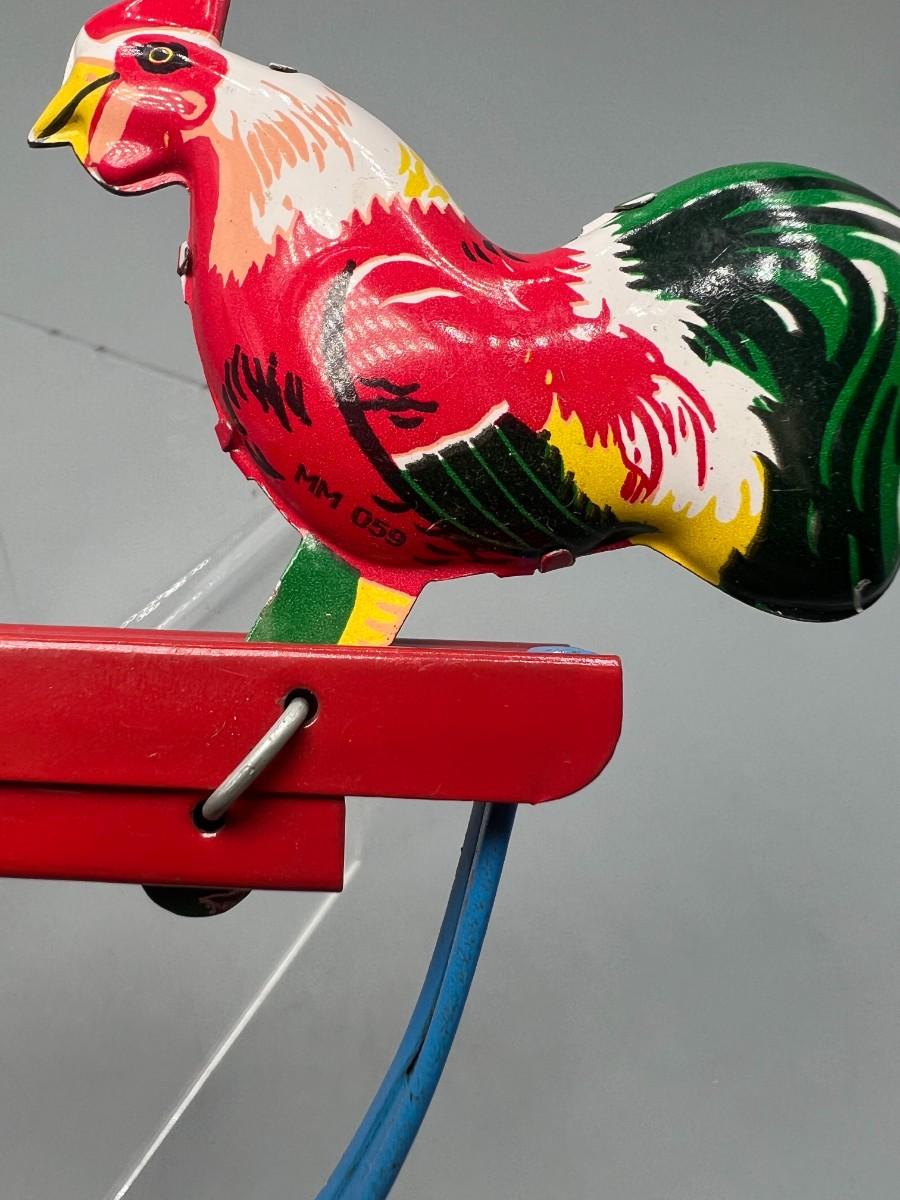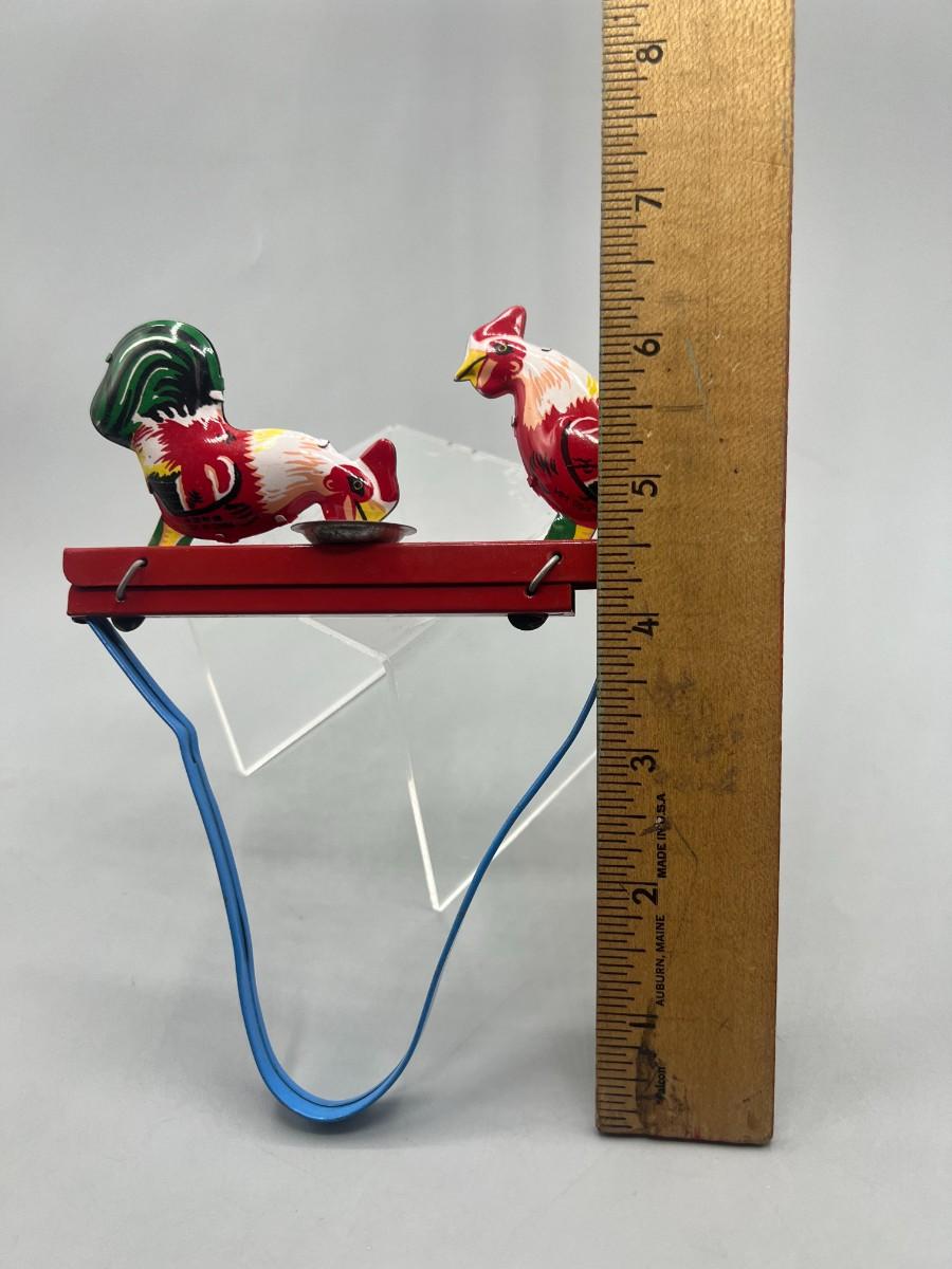 Pecking Roosters Collectible Litho Tin Toys Squeezing Action Toy