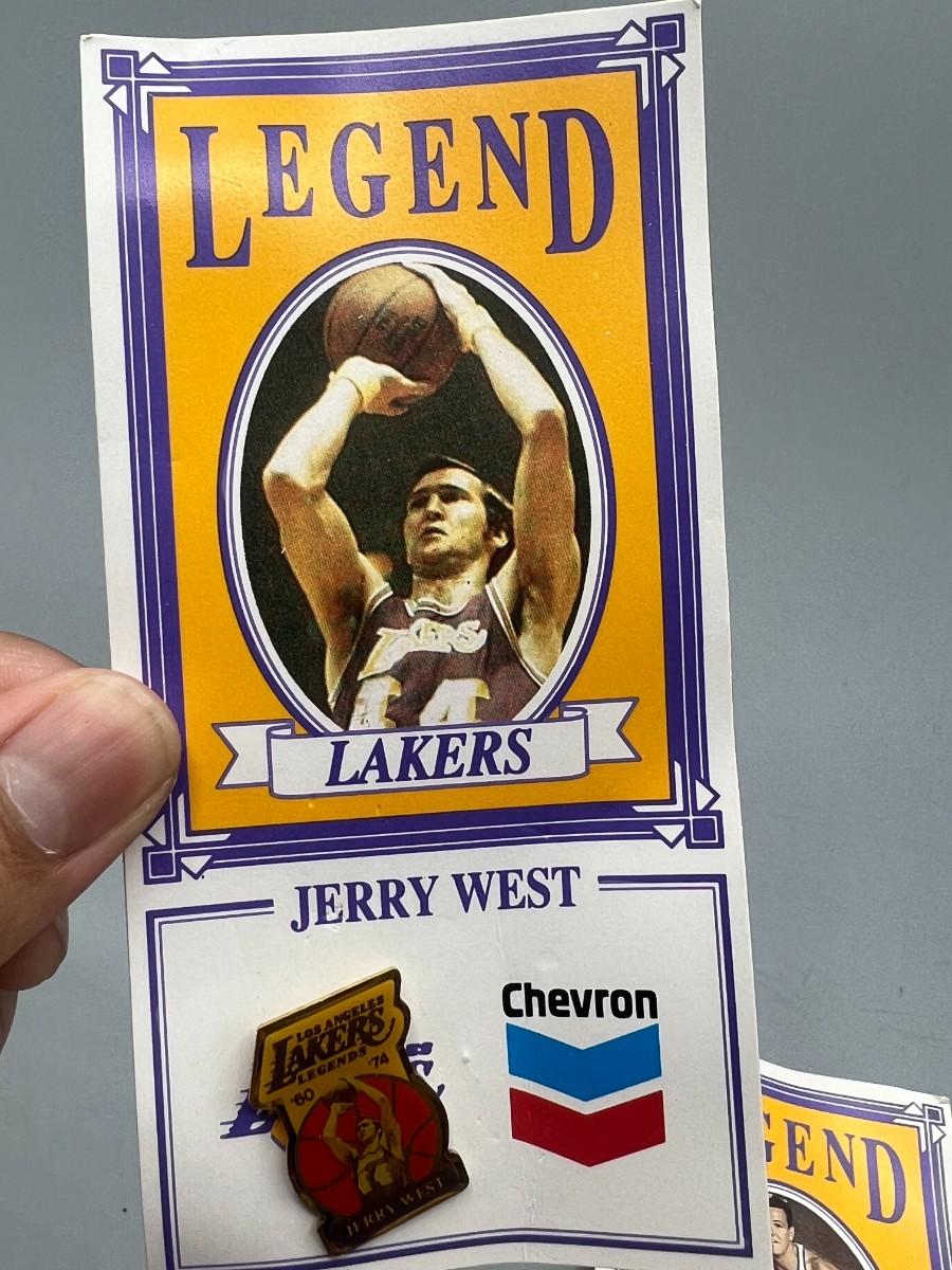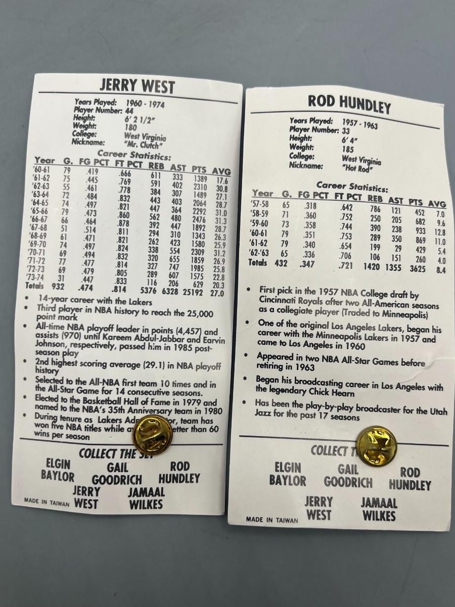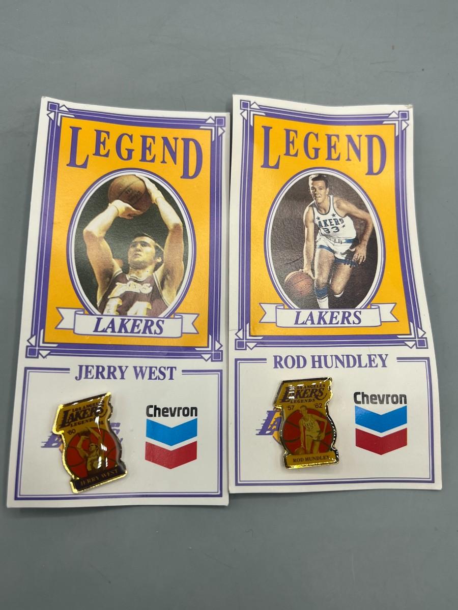 Vintage Jerry West & Rod Hundley NBA Lakers Chevron Collector Pins