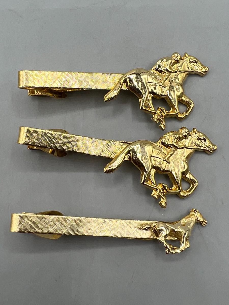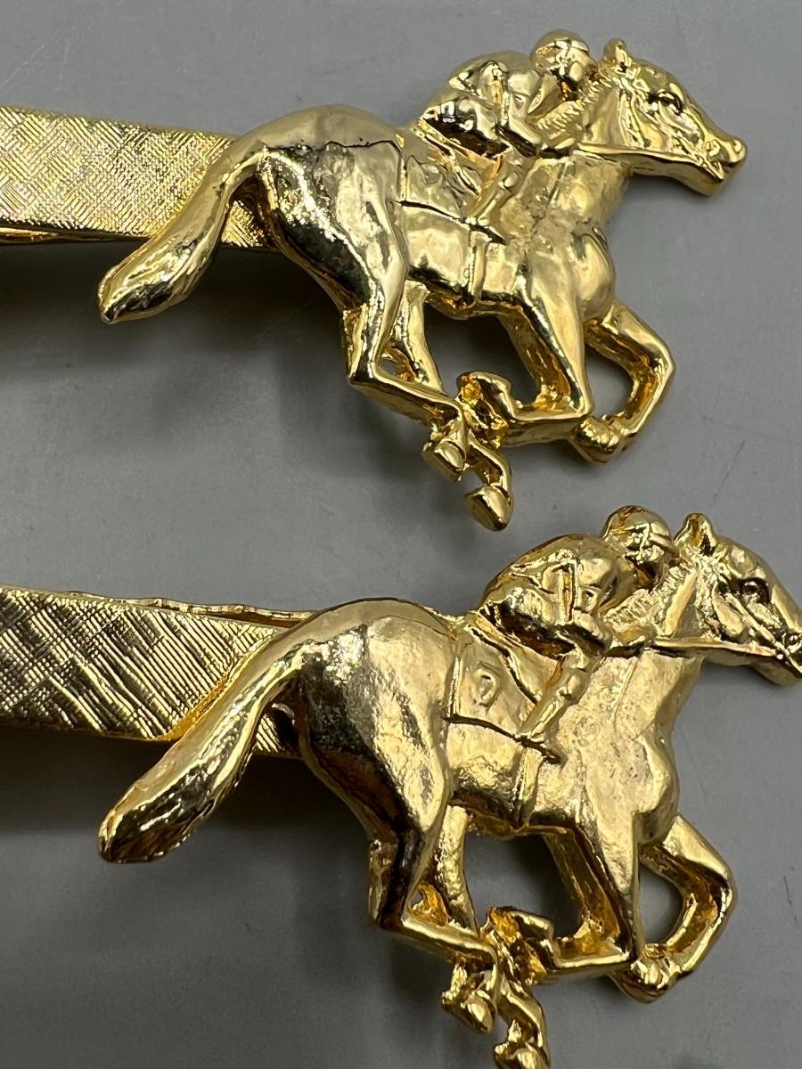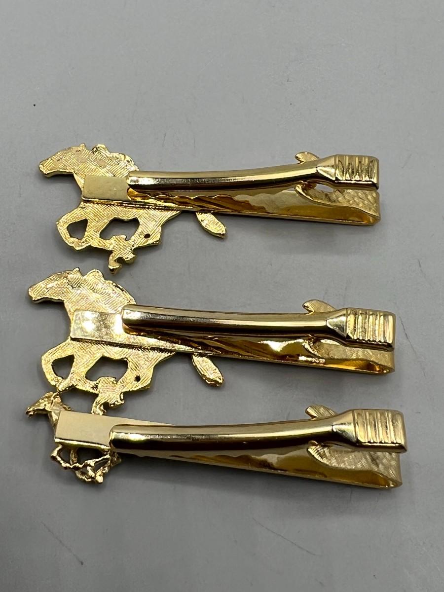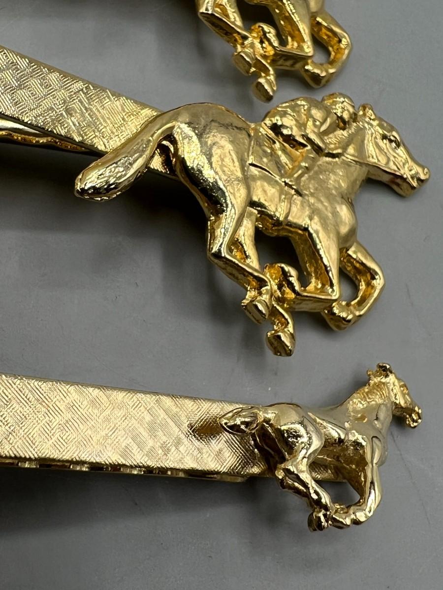 Vintage Gold Tone Metal Racing Horse & Wild Pony Fashion Tie Clips Race Track collectible