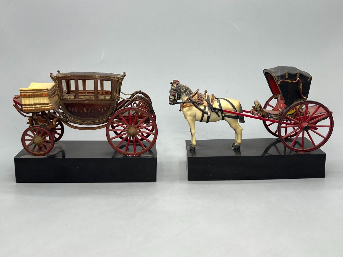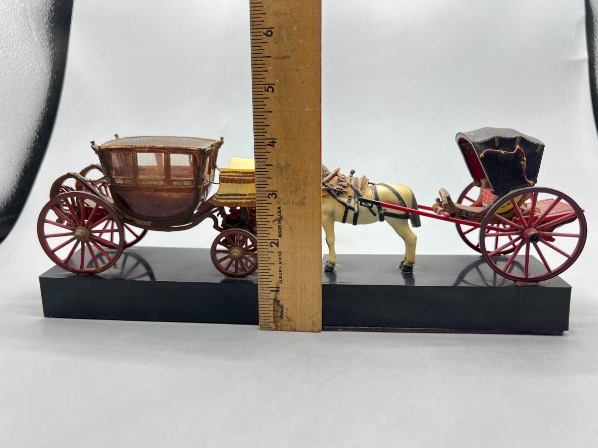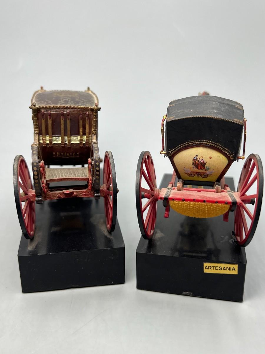 Vintage Pair of Horse Carriage Figurine Vacation Souvenirs Madrid Spain. In vintage condition. Some small spots of damage but display well. One is dated 1967 on the bottom.
