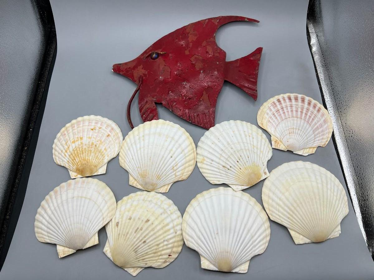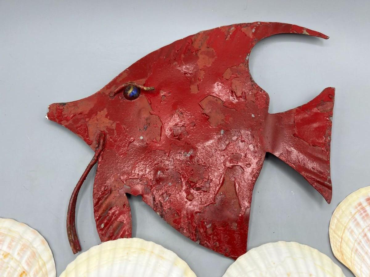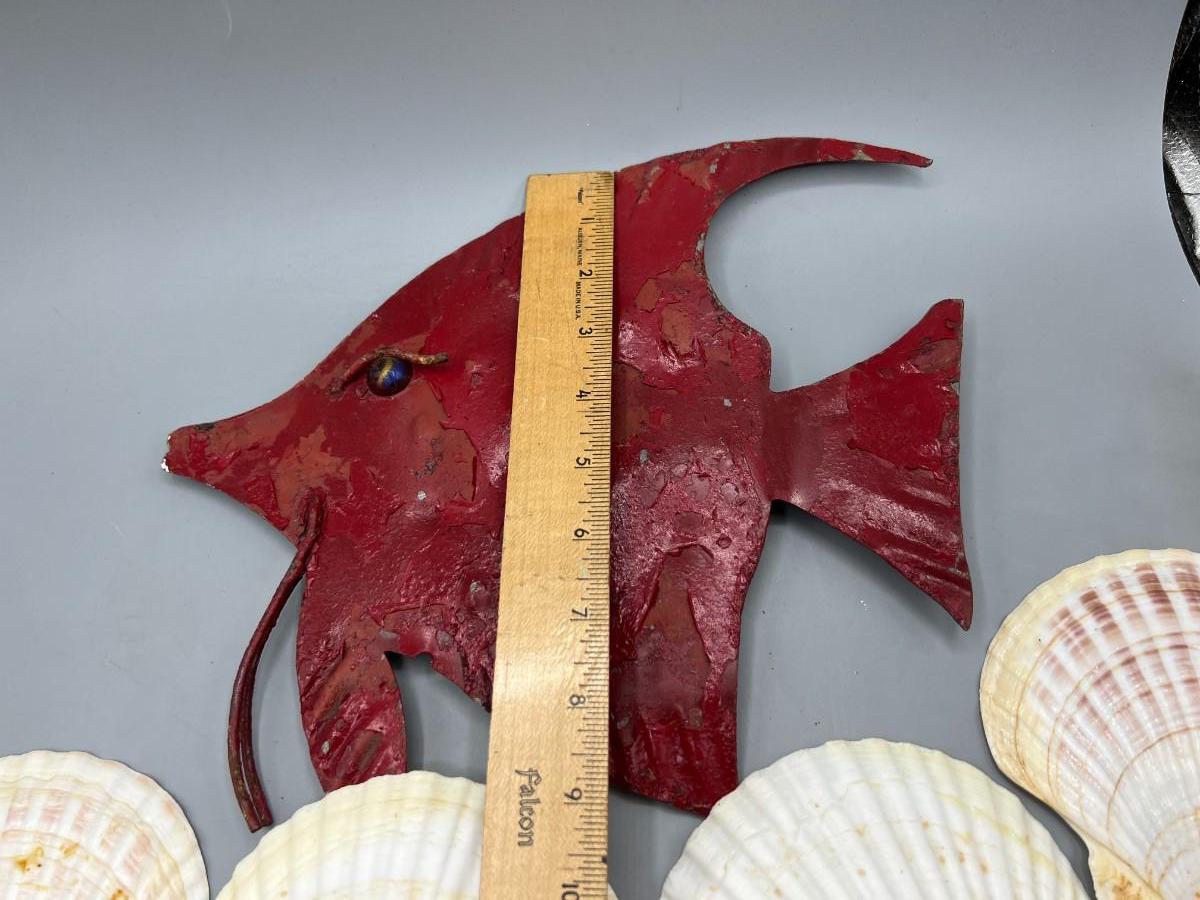 Tropical Beachy Coastal Decor Metal Fish and Scallop Shells. Great for indoor and outdoor display, or crafting.
