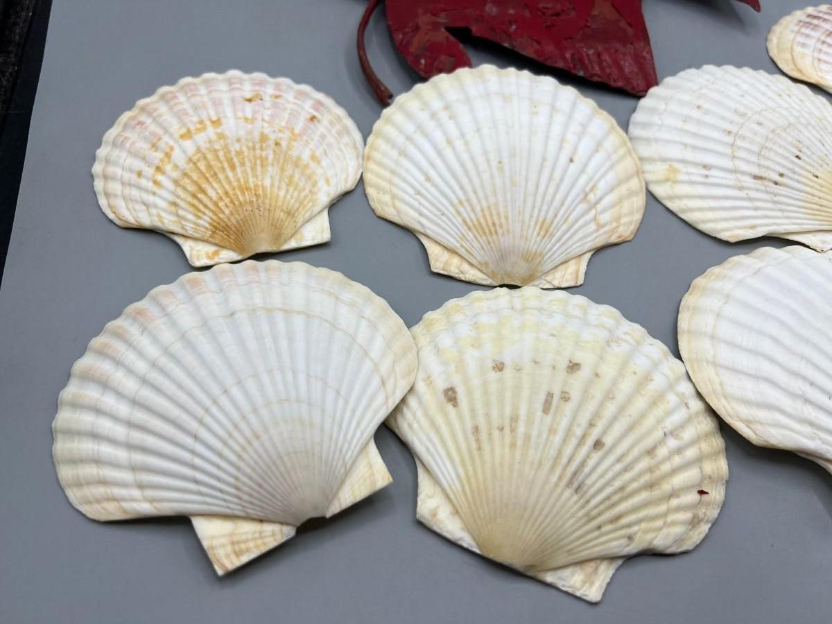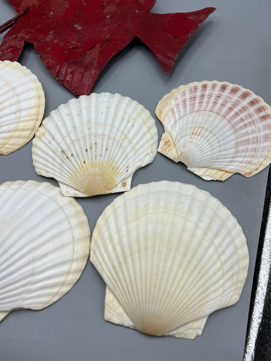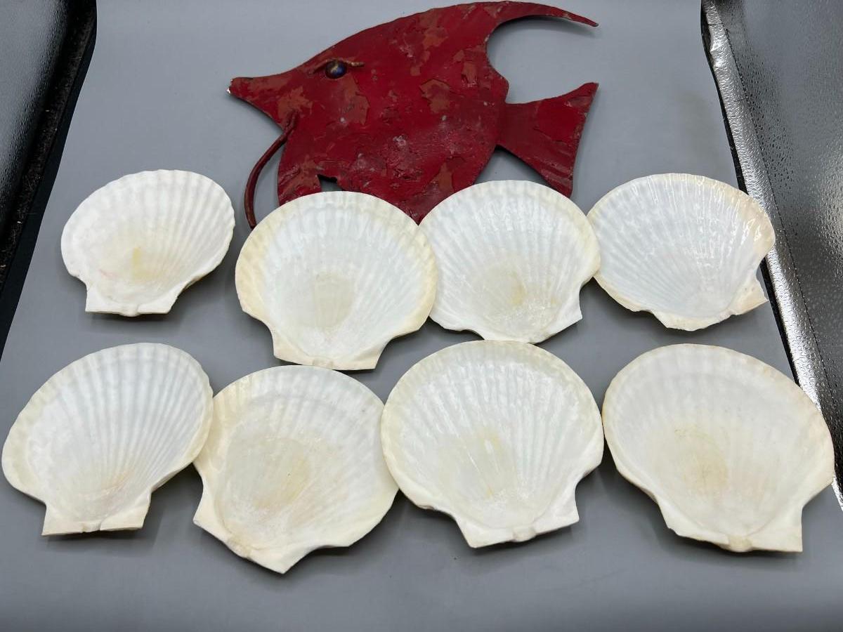 Tropical Beachy Coastal Decor Metal Fish and Scallop Shells. Great for indoor and outdoor display, or crafting.