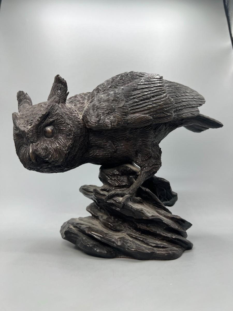 M. Tandy Artist Signed Owl Statuette Bronze Sculpture Figurine