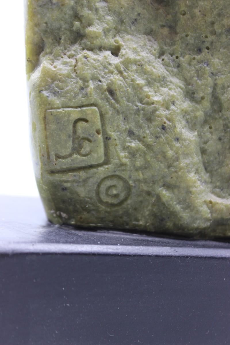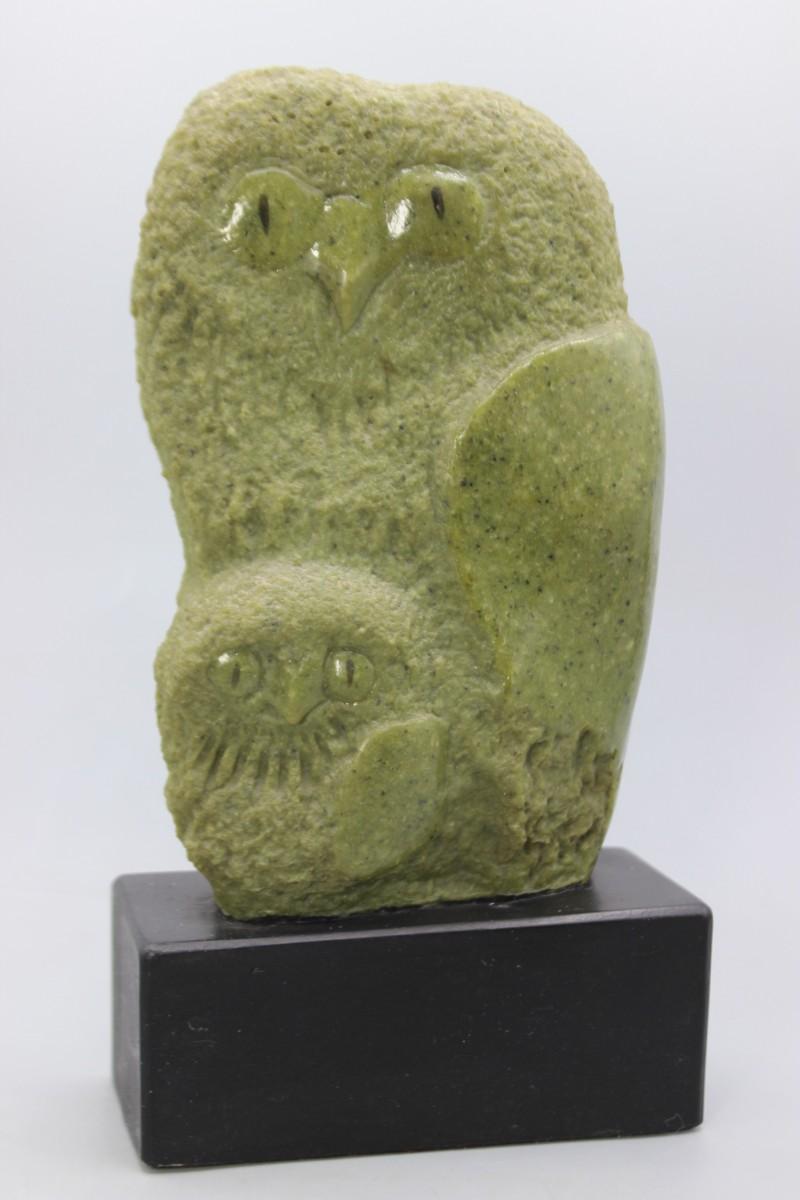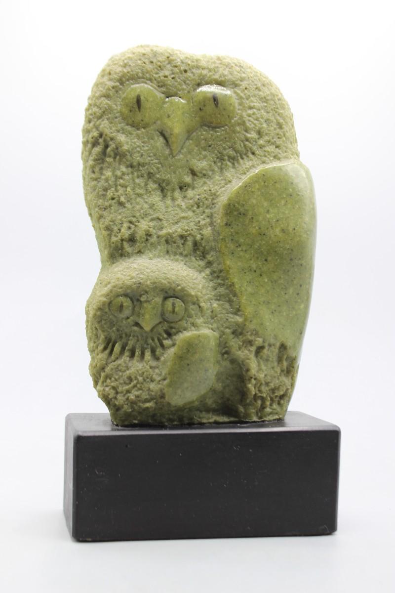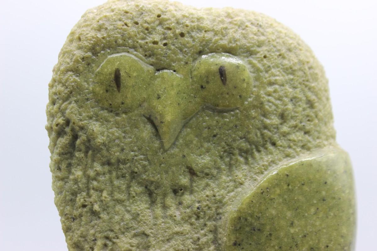 Frank Eliscu Contemporary Modern Art Deco Carved Green Stone Owl Sculpture