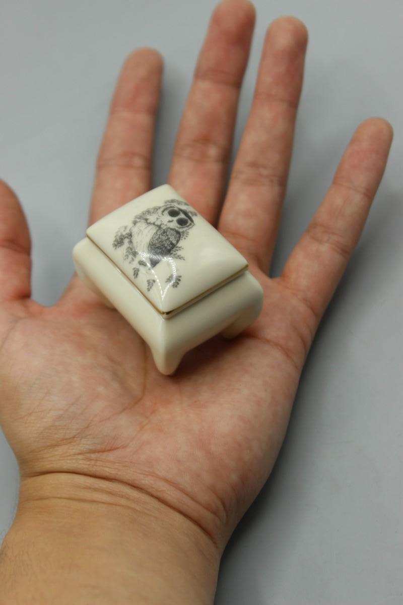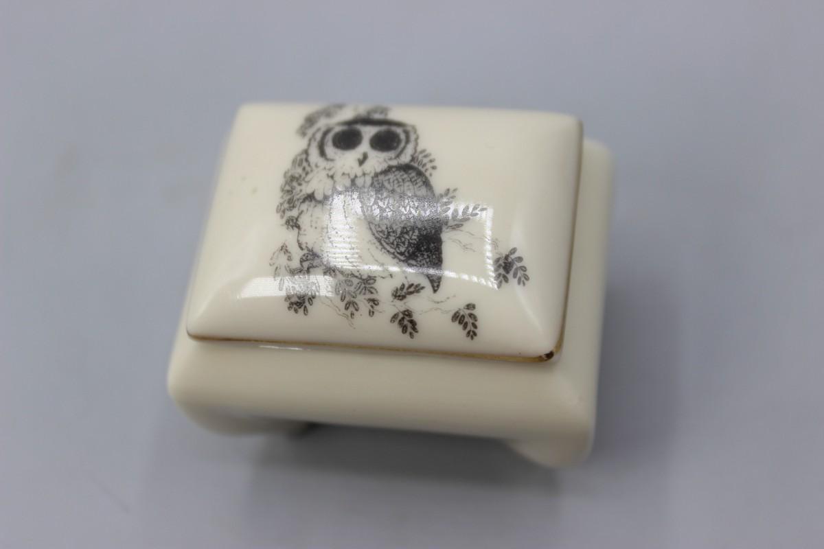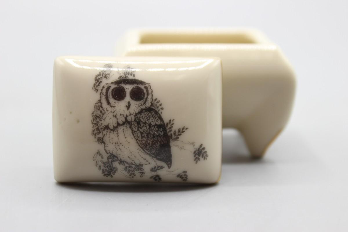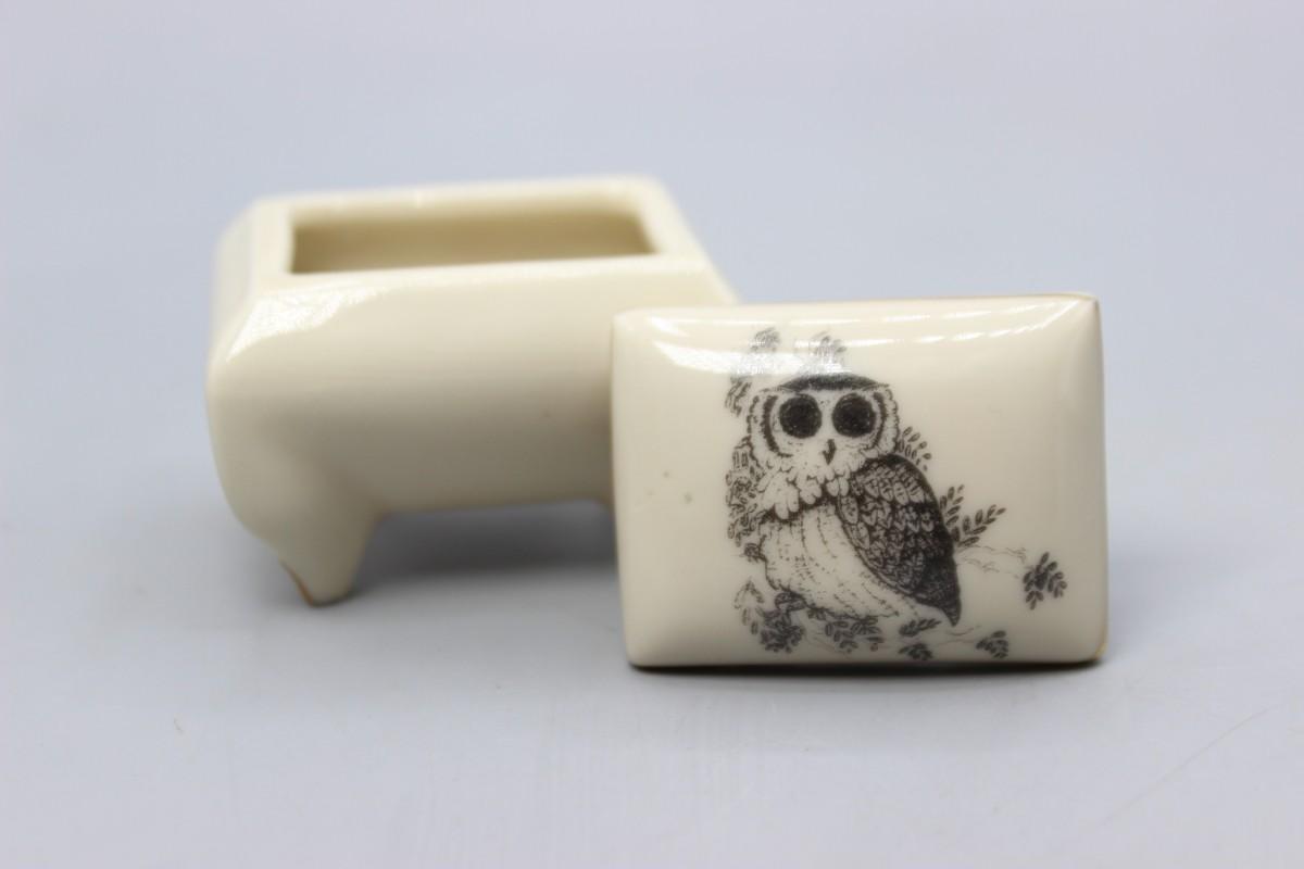 Small World Greetings Ceramic Barn Owl Trinket Snuff Box