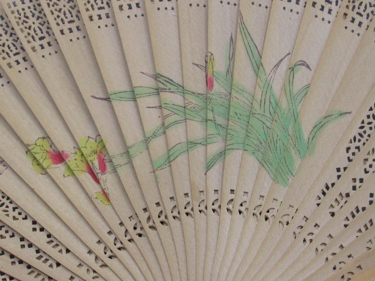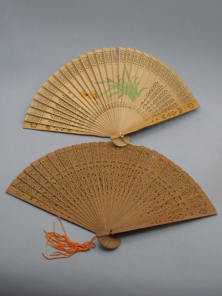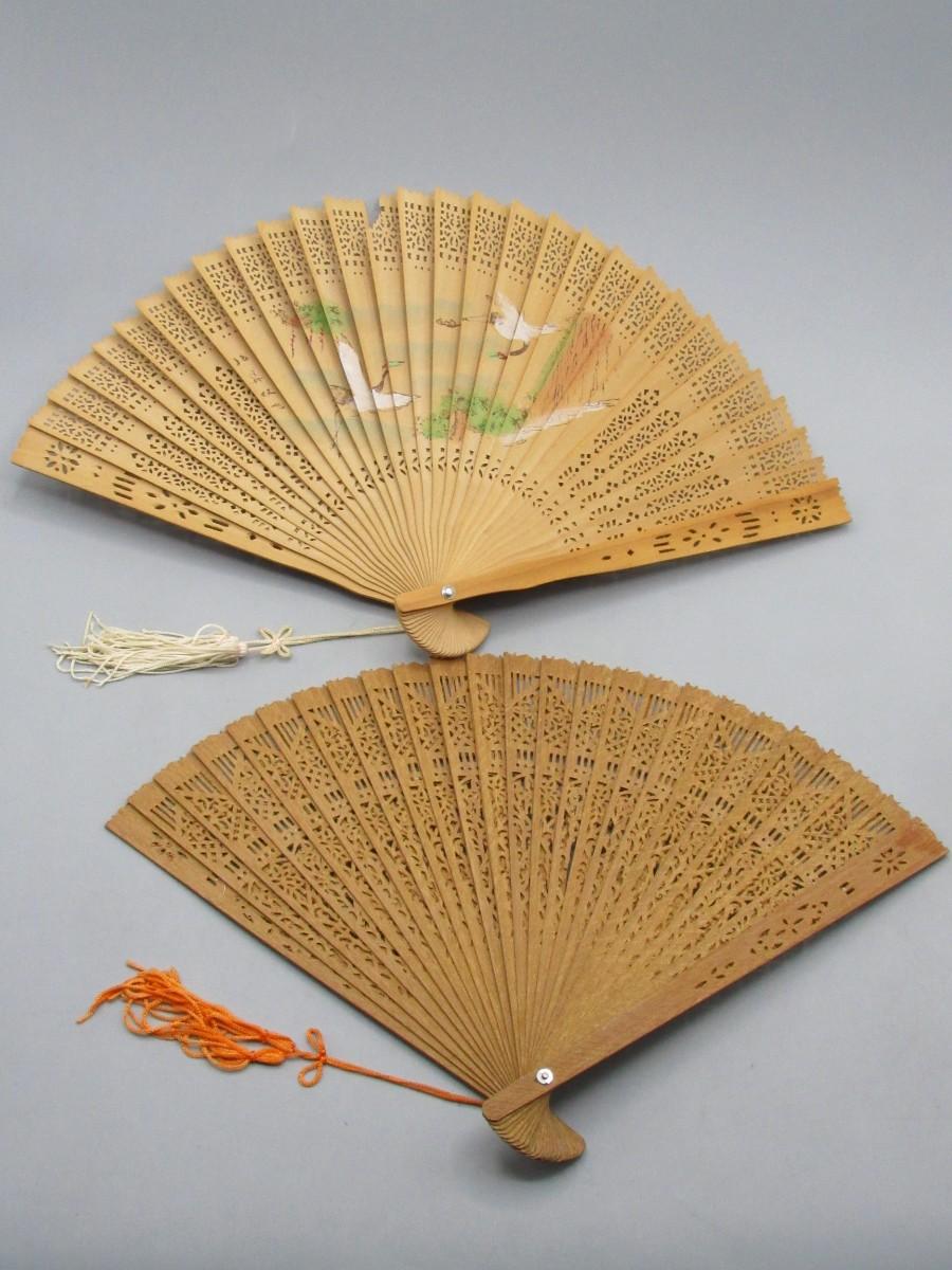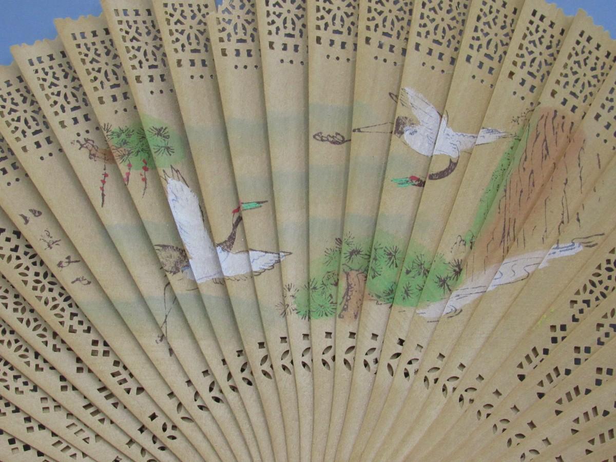 Retro Wooden Oriental Crane Flower Design Hand Fans