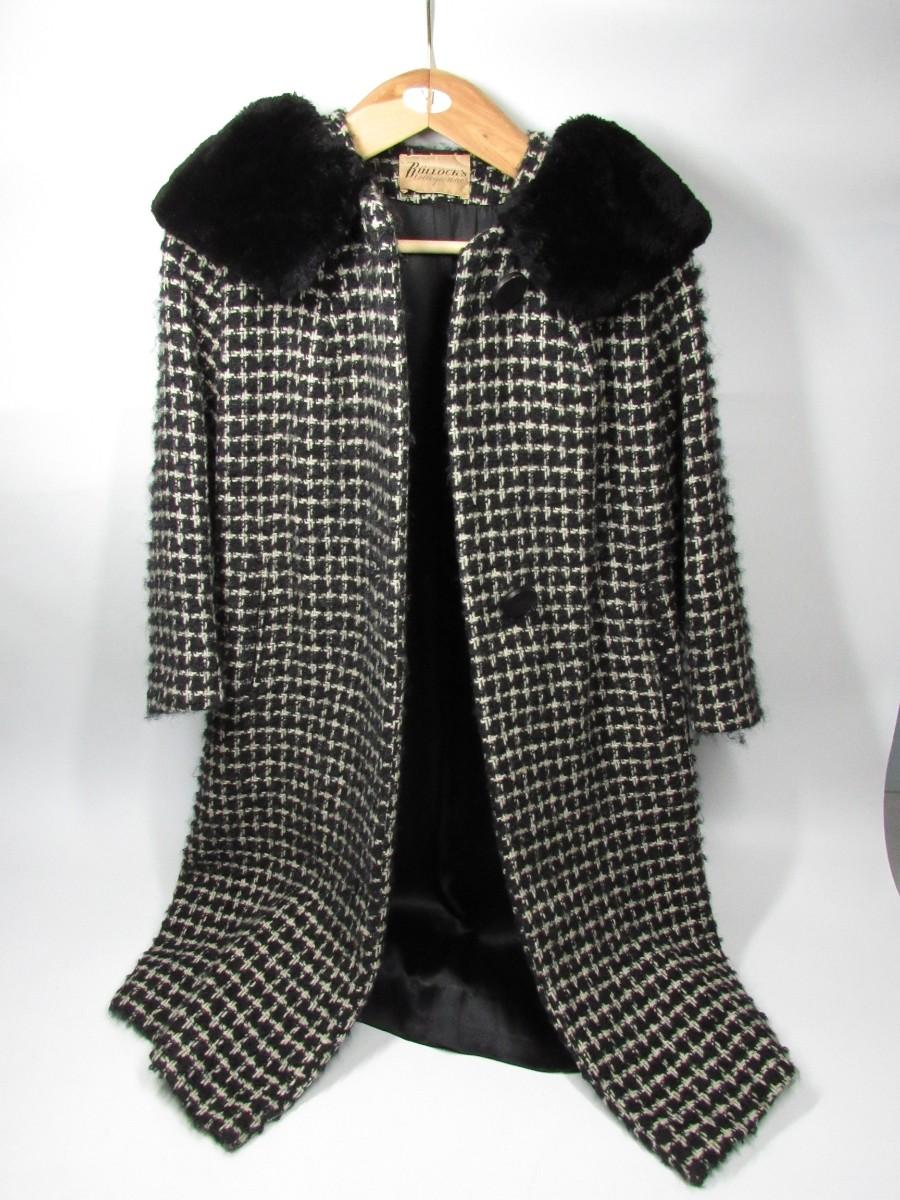 Vintage Bullock's Black & White Virgin Wool Winter Coat Suit
