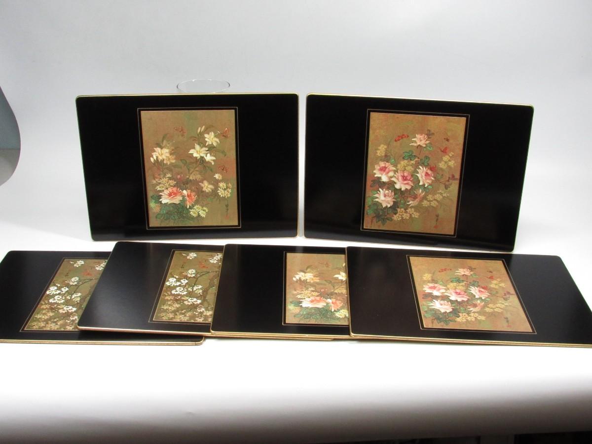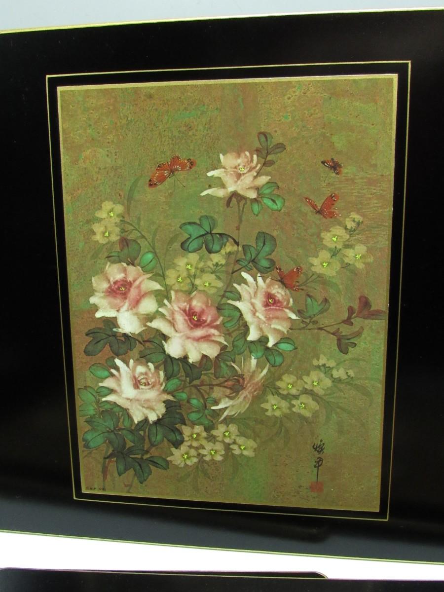 Vintage Set of Lordy Clare Made in England Cellulose Finish Oriental Flower Trays