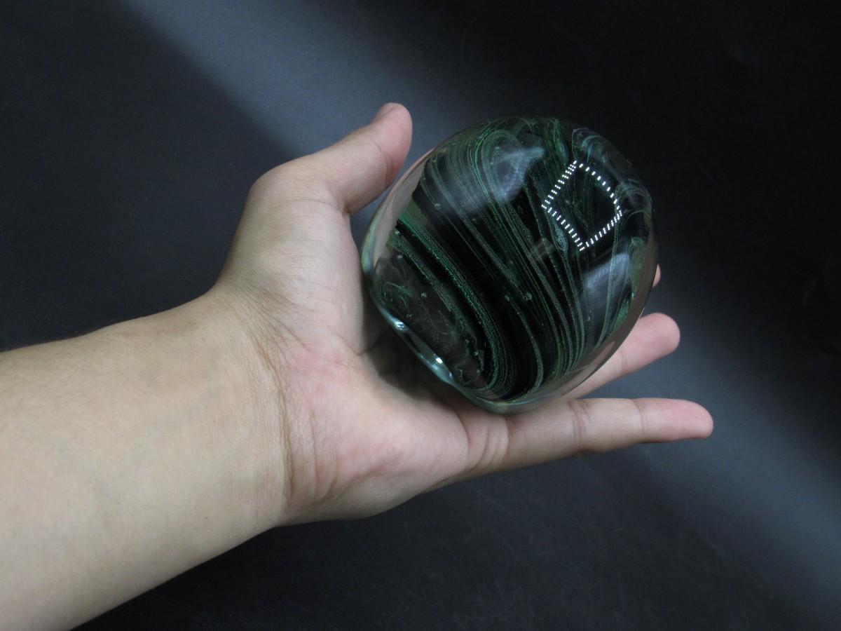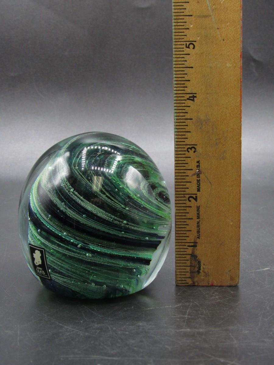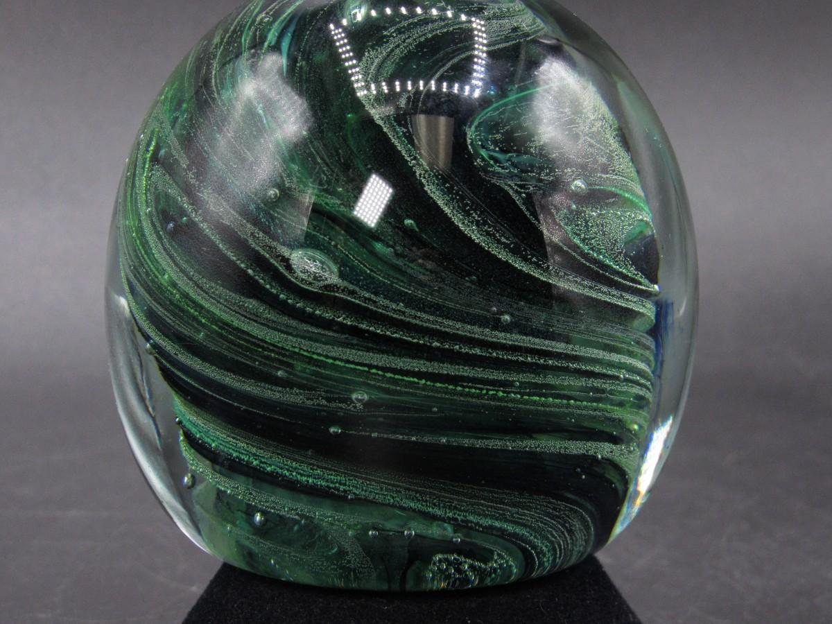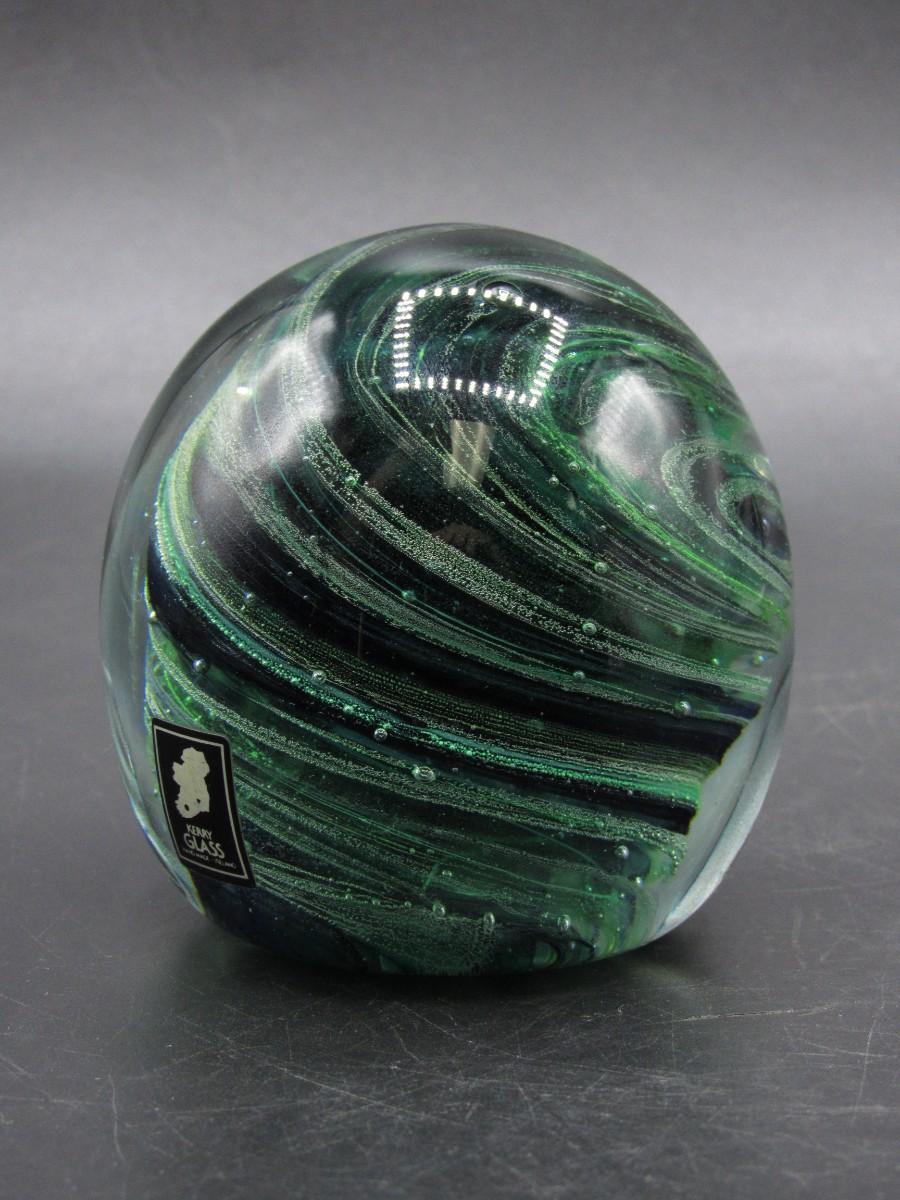 Vintage Emerald Green Swirled Blown Art Glass Paperweight Kerry Glass Ireland