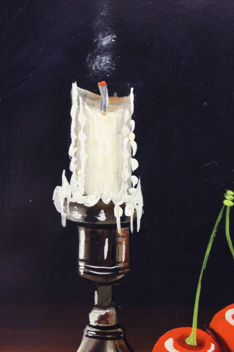 Vintage Dramatic Modern Still Life Candle with Cherries Small Framed Art by Maria M. Lak