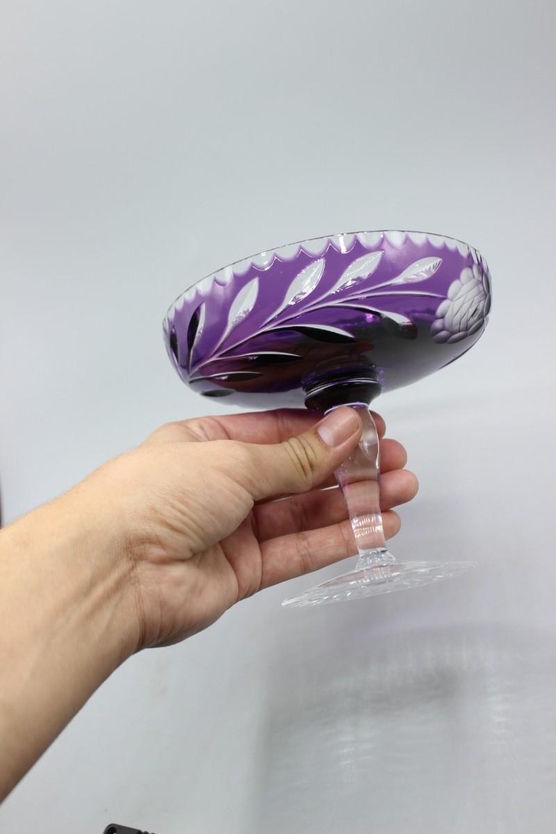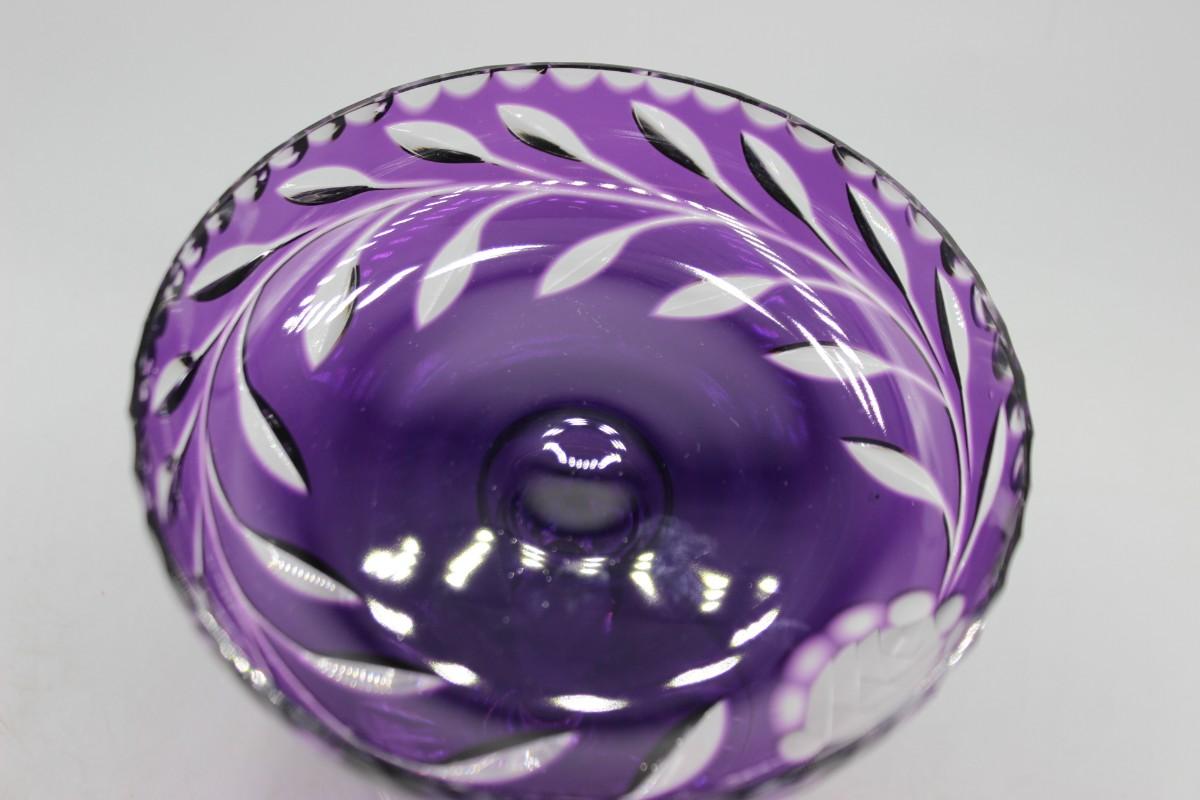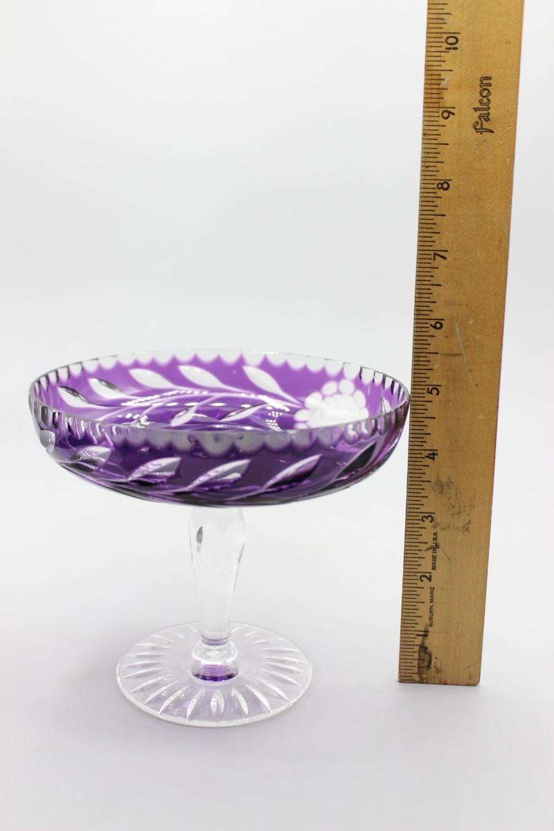 Vintage Violet Purple Cut to Clear Pedestal Footed Compote Candy Dish Champagne Glass
