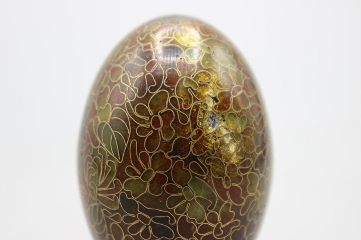 Small Cloisonne Style Decorative Egg Figurine with Stand